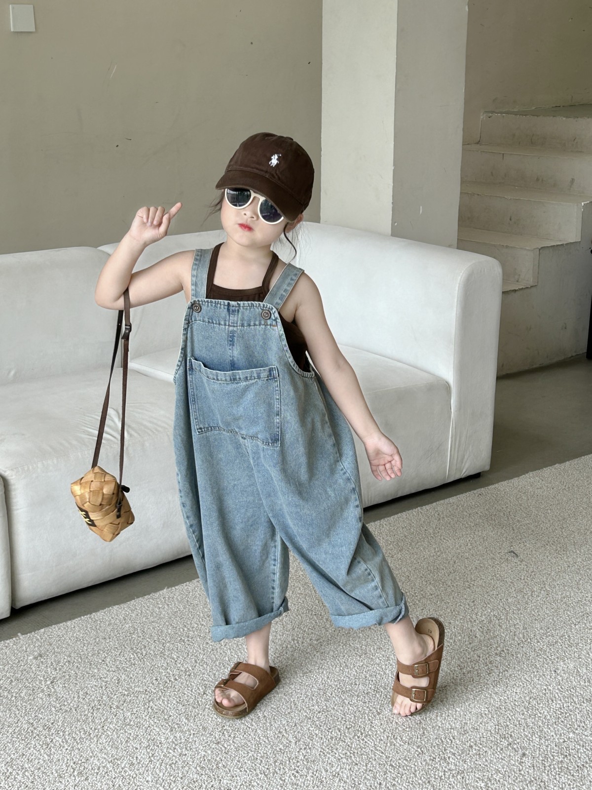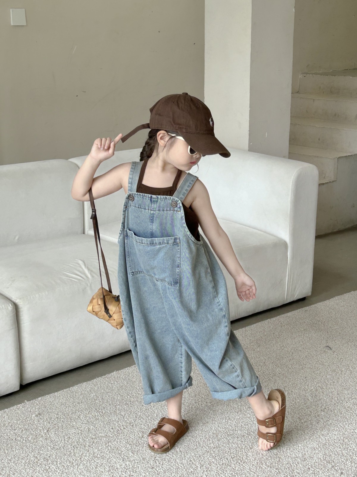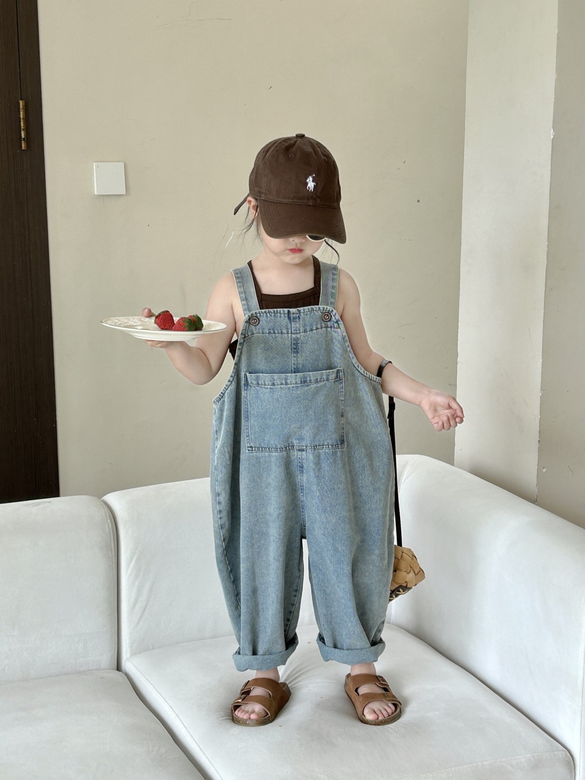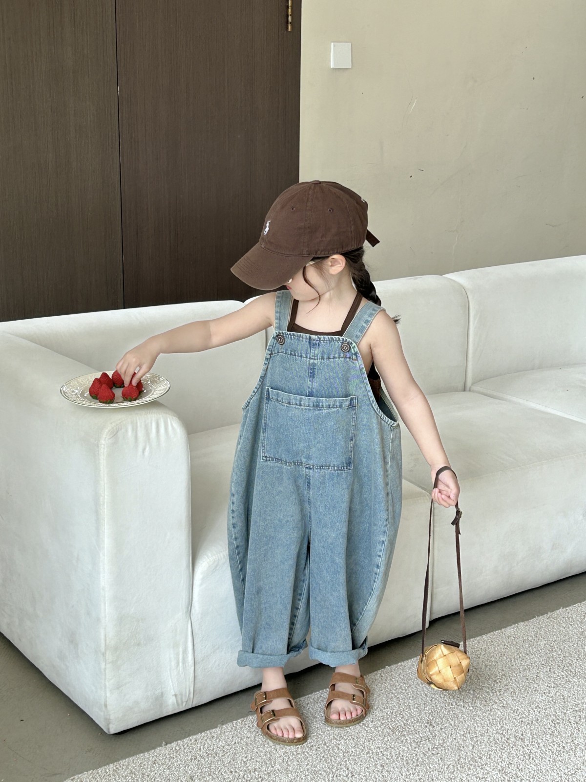 한국 스타일 2024 소년 소녀를위한 봄 느슨한 청바지 어린이 레트로 향수 세척 부드러운 데님 서양식스토어 가기