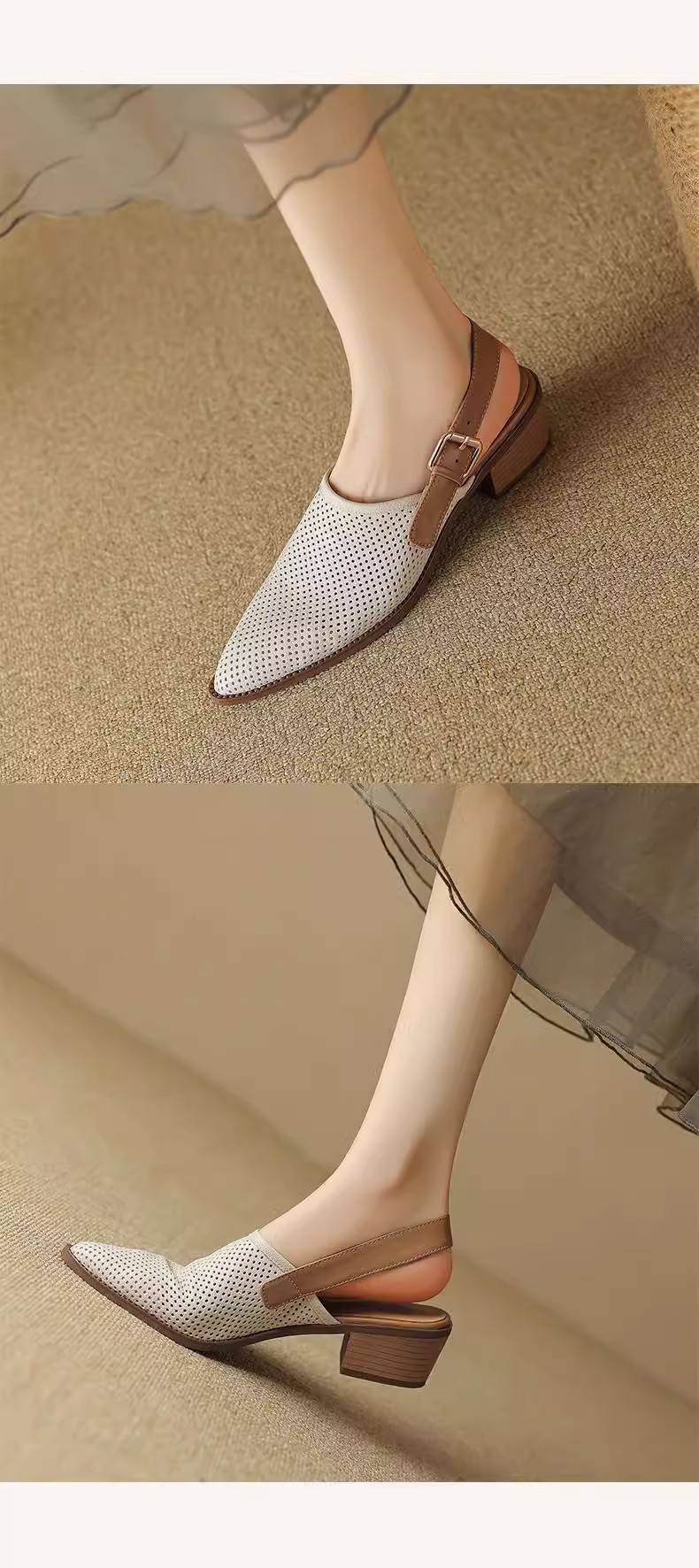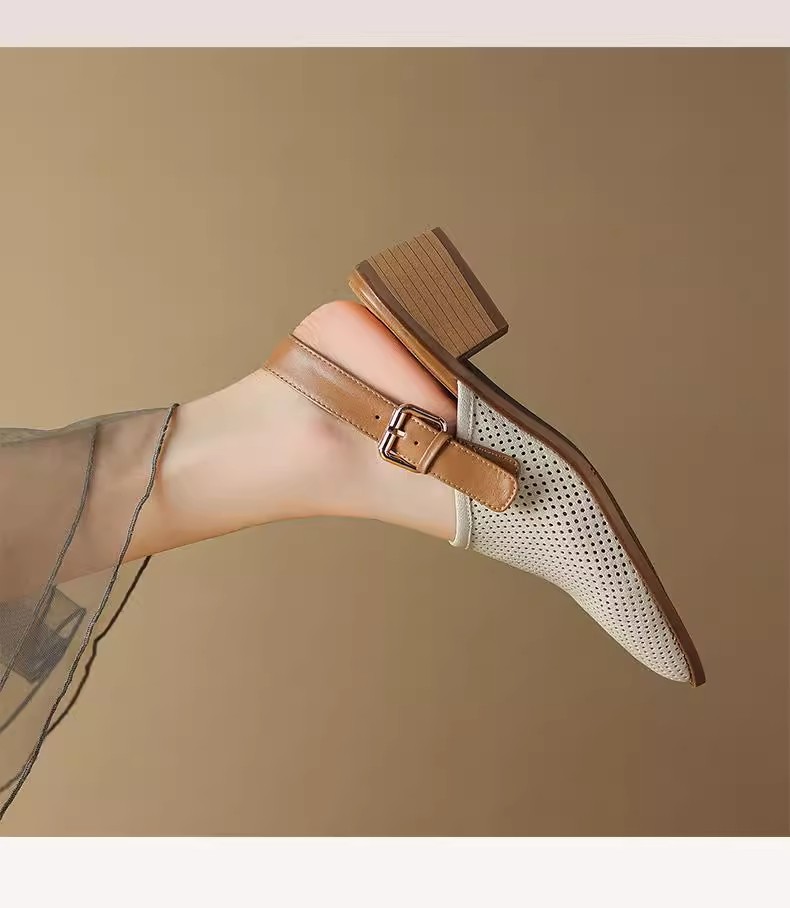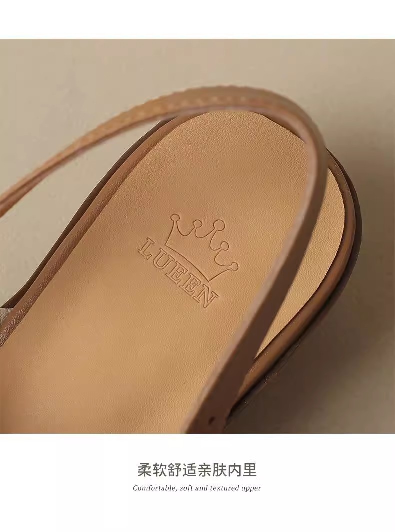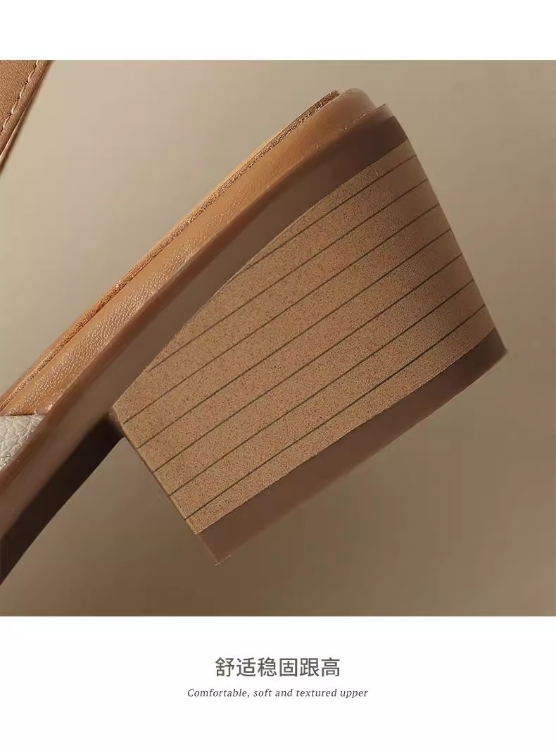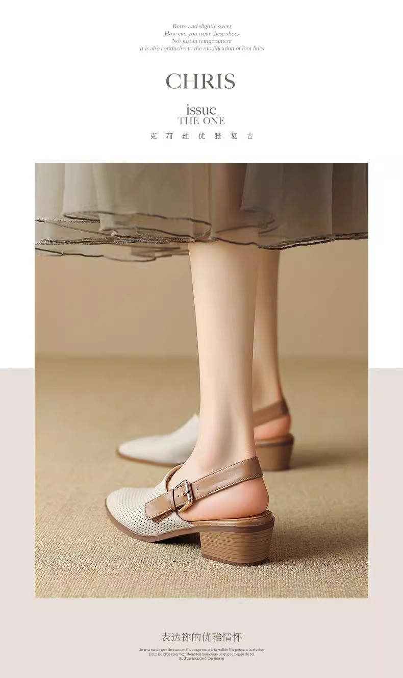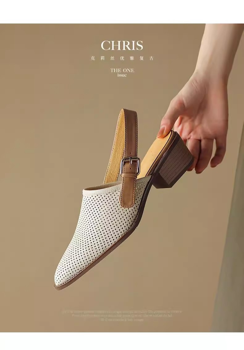 2024 여름 두꺼운 힐 샌들 여성의 통기성 플라잉 짠 바오터우 작은 샤넬 스타일 여성 신발 두꺼운 뒤꿈치 뾰족한 중간 뒤꿈치 메시스토어 가기
