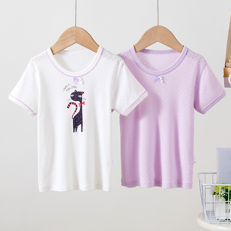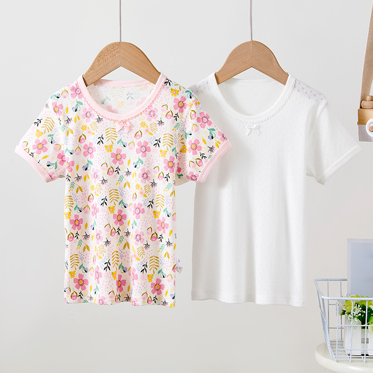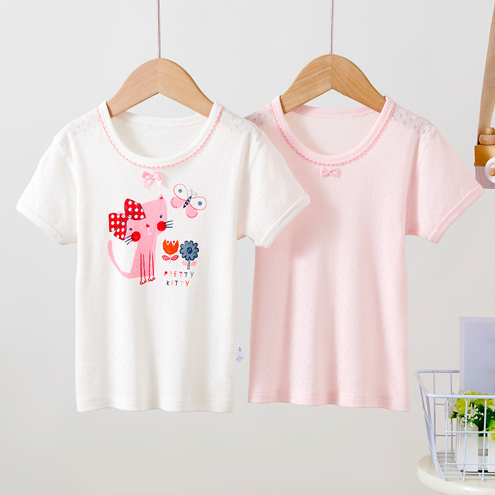 어린이 메쉬 티셔츠 100 면 남성 보물 여성 보물 홈 반 소매 얇은 짧은 소매베이스 통기성 2 팩