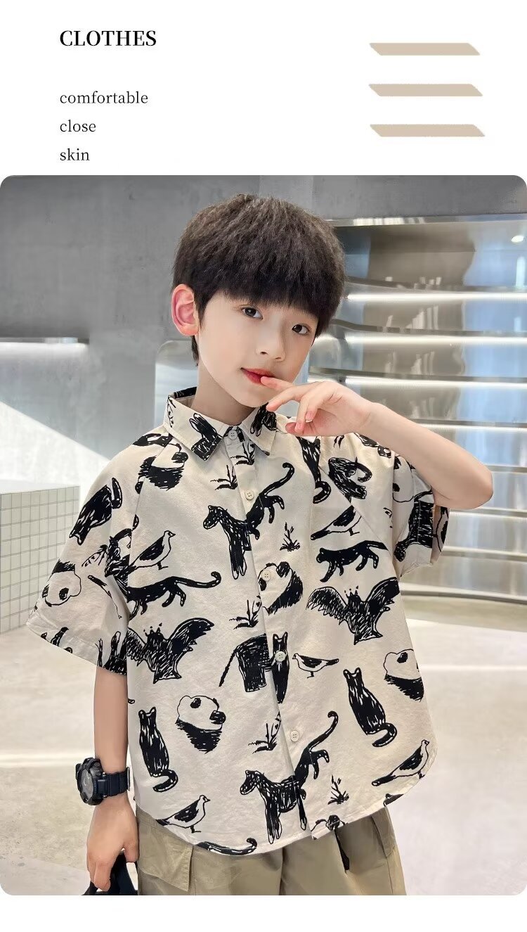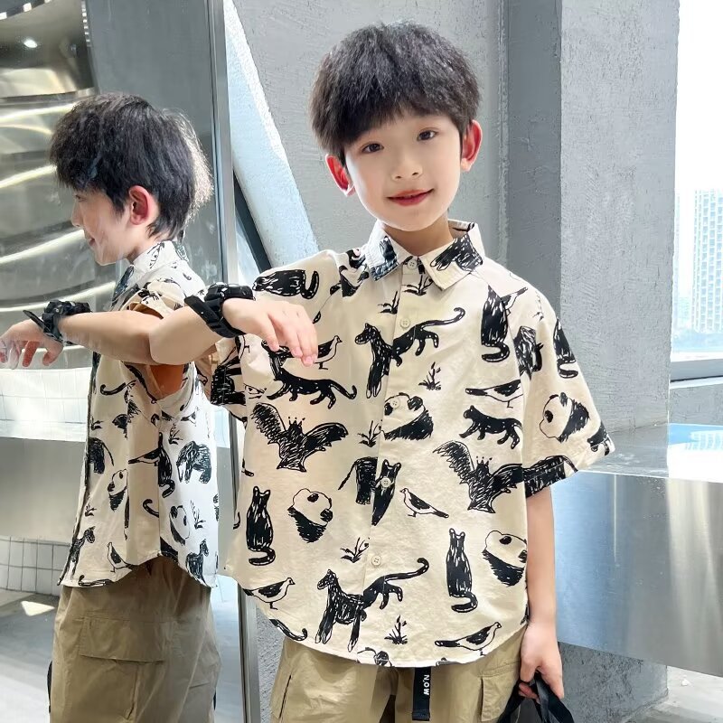 어린이 의류 소년 여름 반소매 셔츠 2024 새 티셔츠 빅 키즈 여름 소년 트렌디 쿨 셔츠 반소매스토어 가기