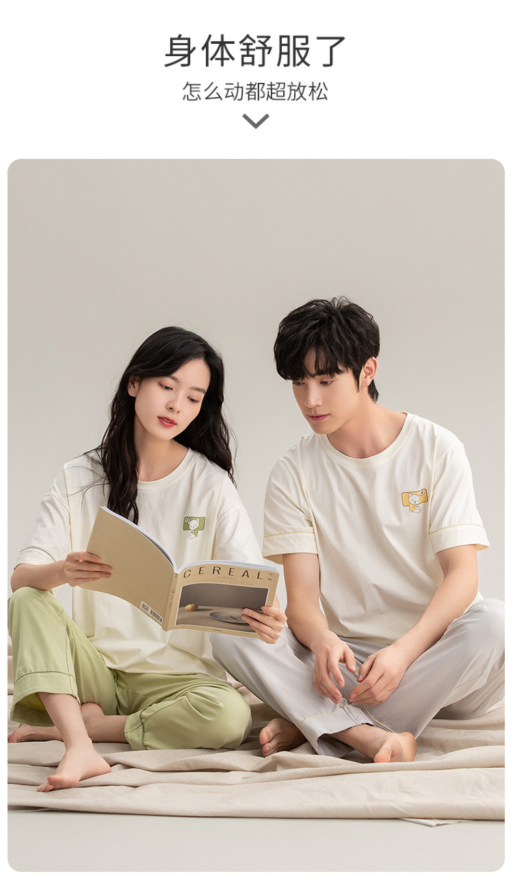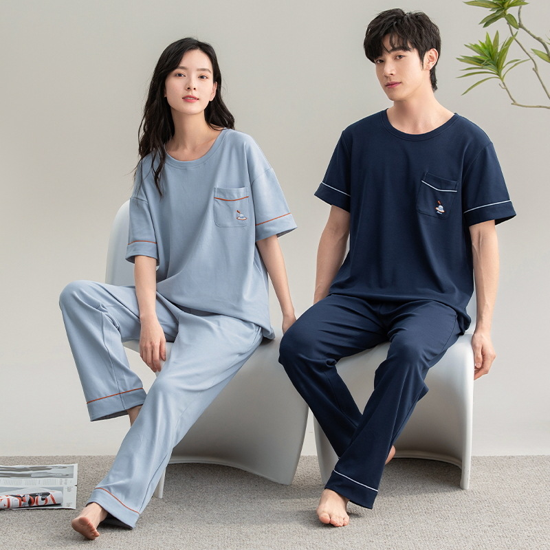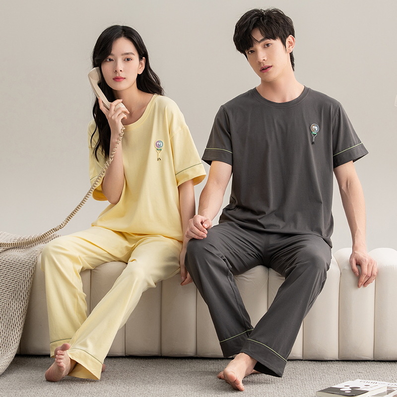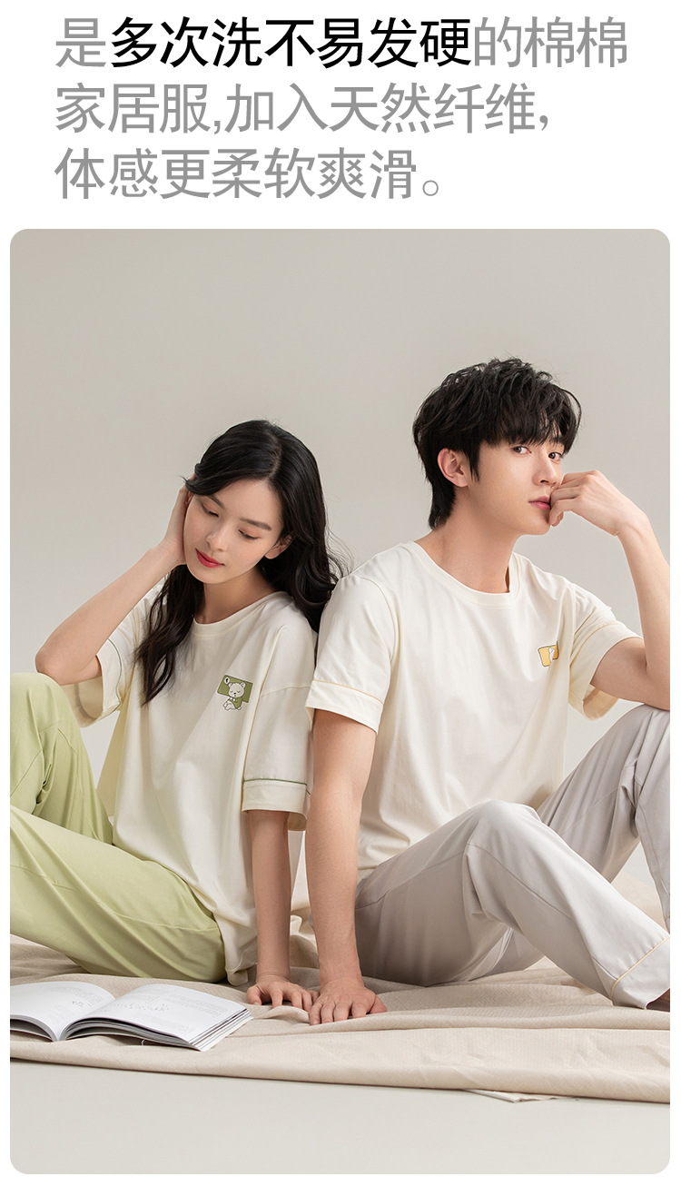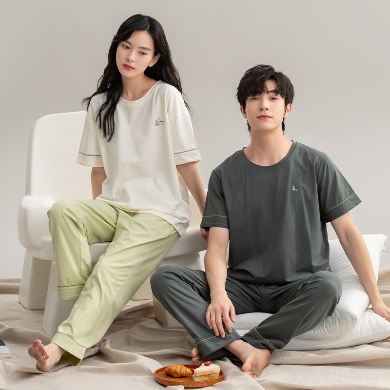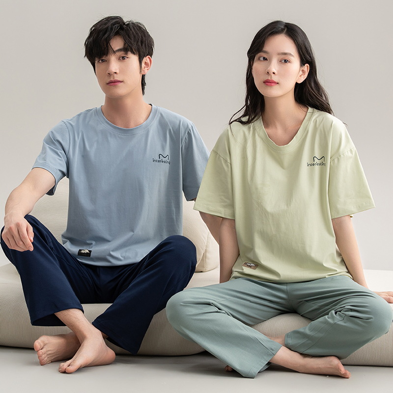 여름 폭발 커플 잠옷 면 짧은 소매 바지 한국 라운드 넥 남녀 코튼 홈웨어 얇은 세트스토어 가기