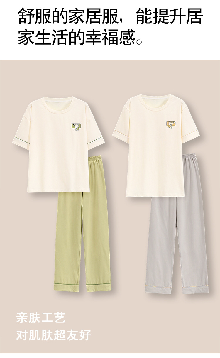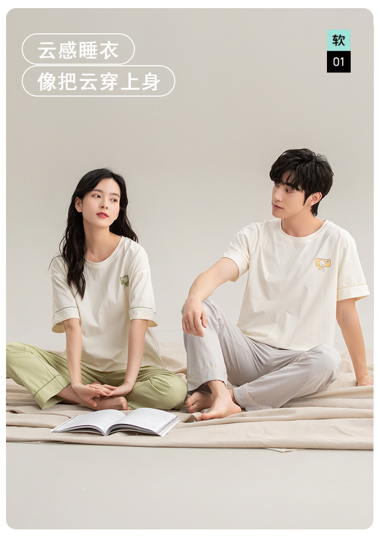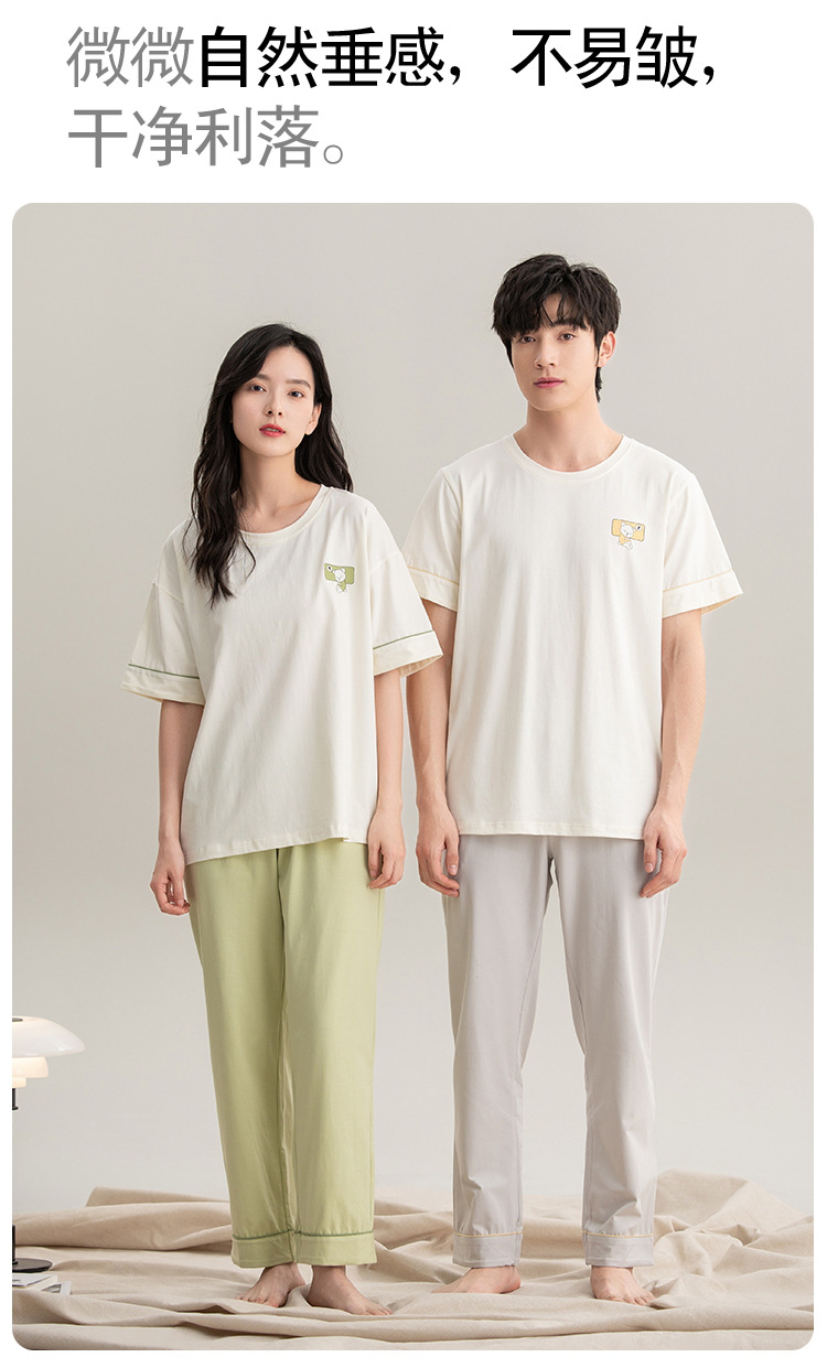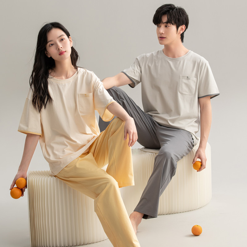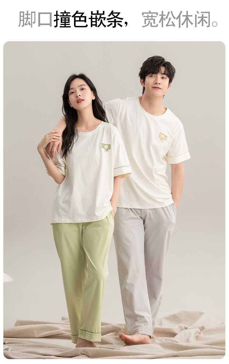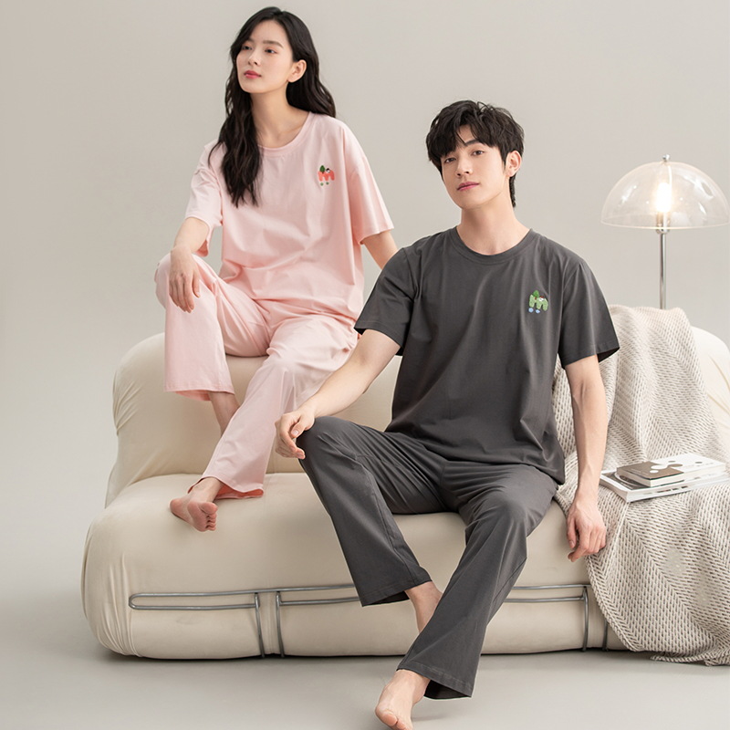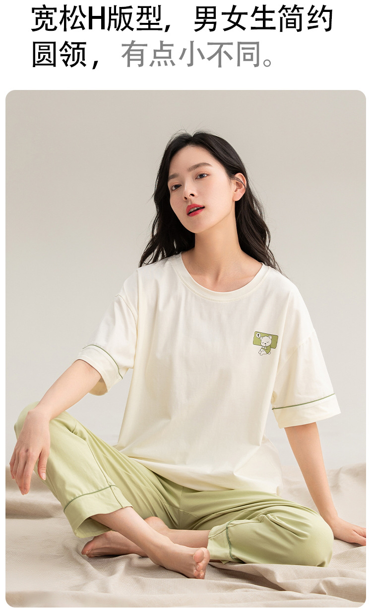 여름 폭발 커플 잠옷 면 짧은 소매 바지 한국 라운드 넥 남녀 코튼 홈웨어 얇은 세트