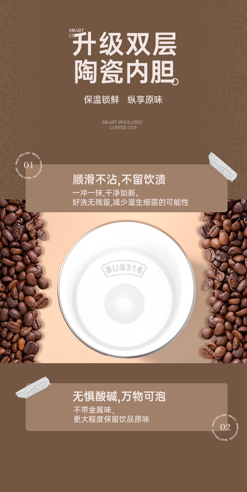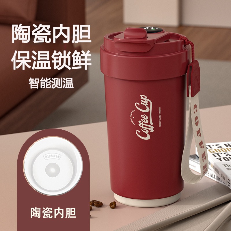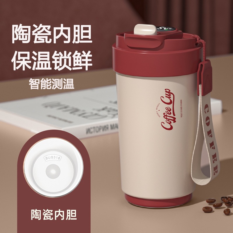 도매 선물 컵 316 스테인레스 스틸 보온병 컵 세라믹 라이너 커피 컵 레터링 로고 휴대용 동반 물 컵