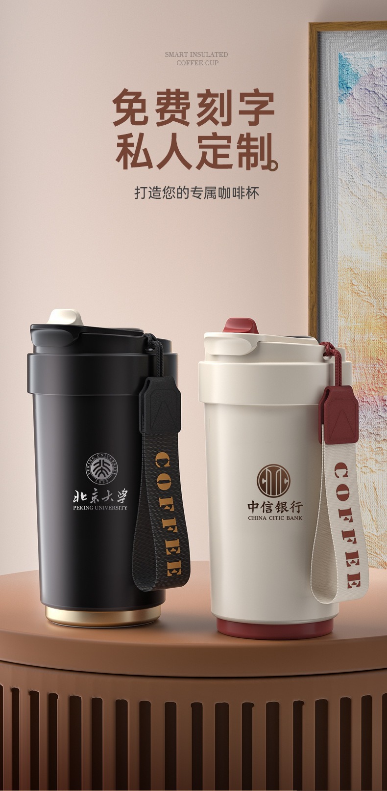 도매 선물 컵 316 스테인레스 스틸 보온병 컵 세라믹 라이너 커피 컵 레터링 로고 휴대용 동반 물 컵스토어 가기