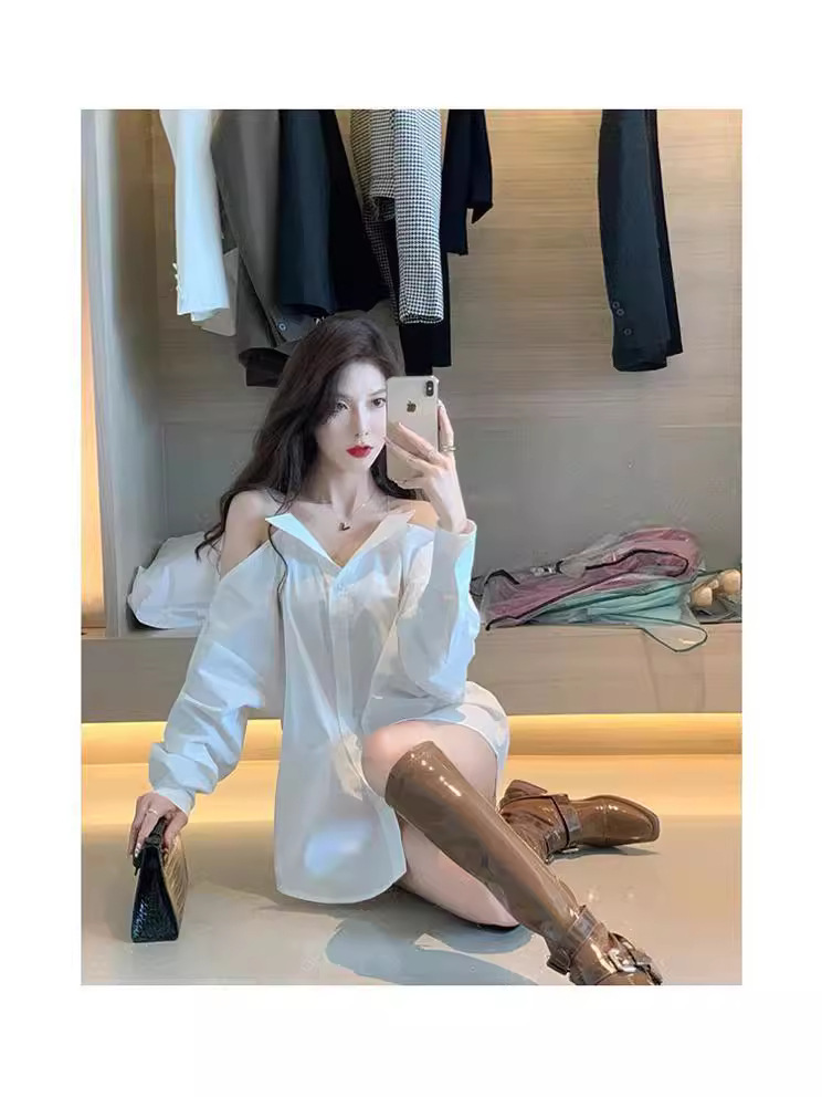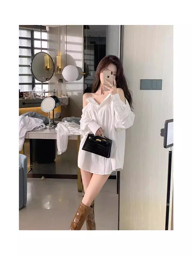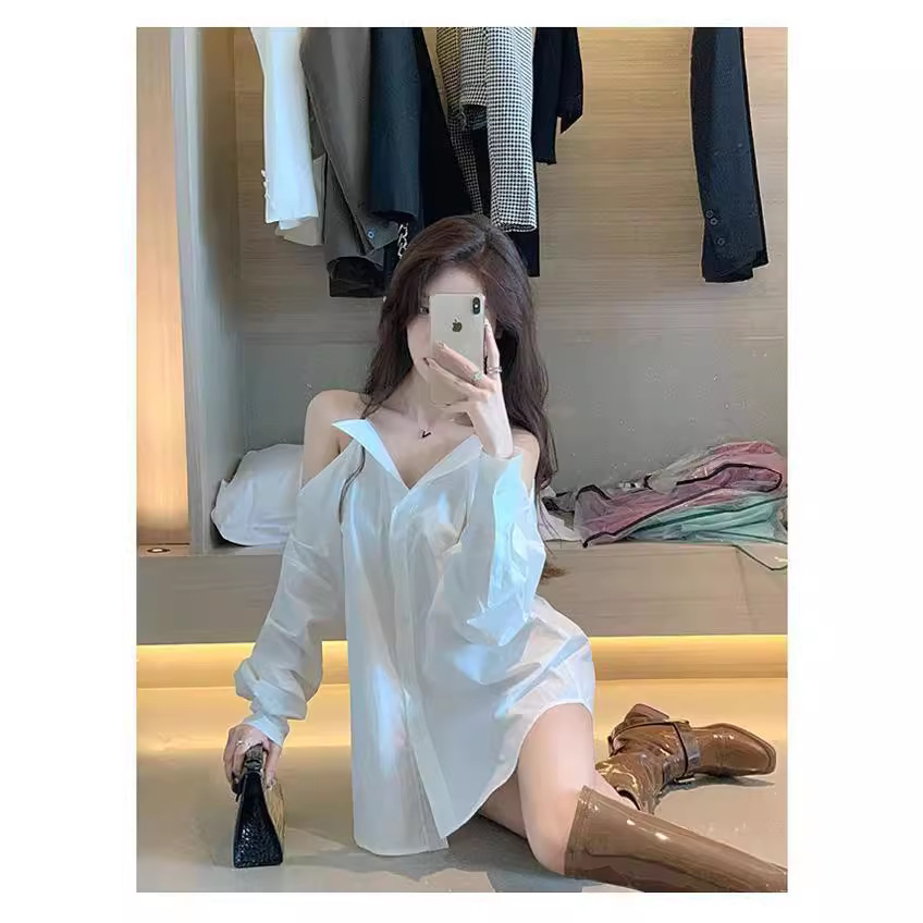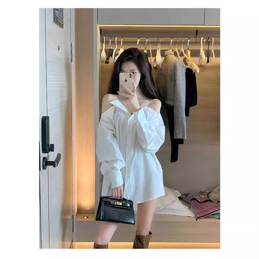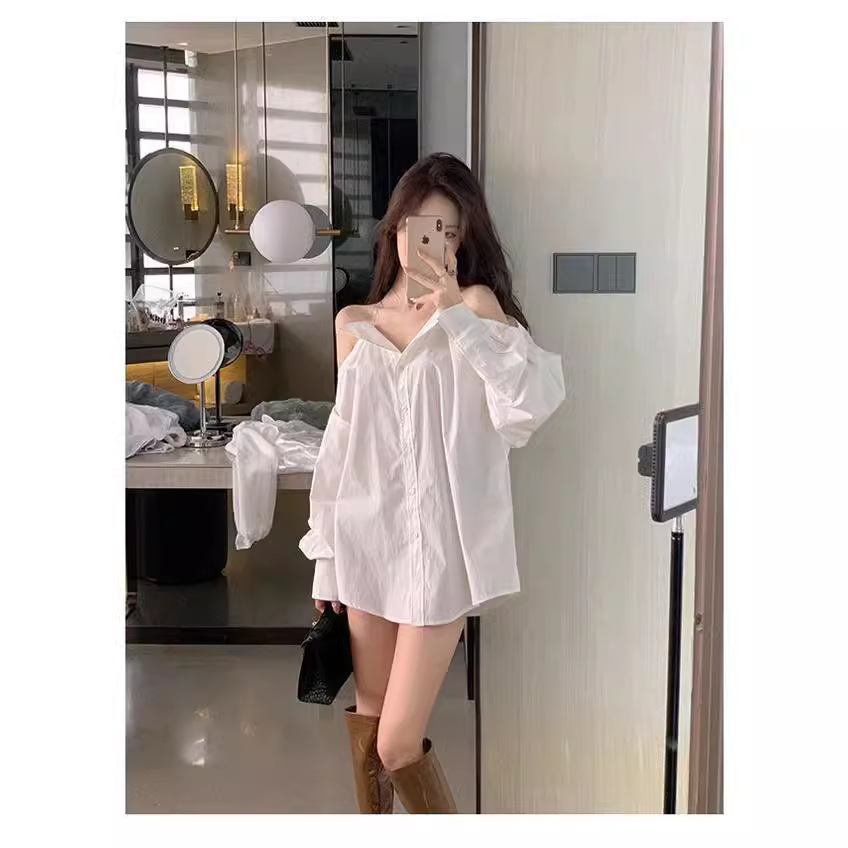 오프 숄더 셔츠 톱 여자 2024 새로운 올 매치 달콤한 우아한 나이 감소 달콤한 섹시한 긴팔 웨스턴 스타일스토어 가기