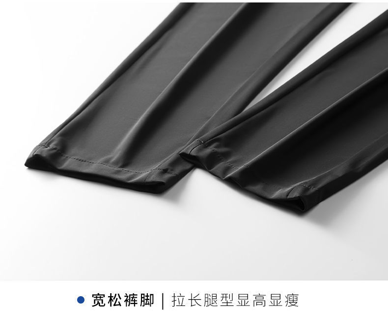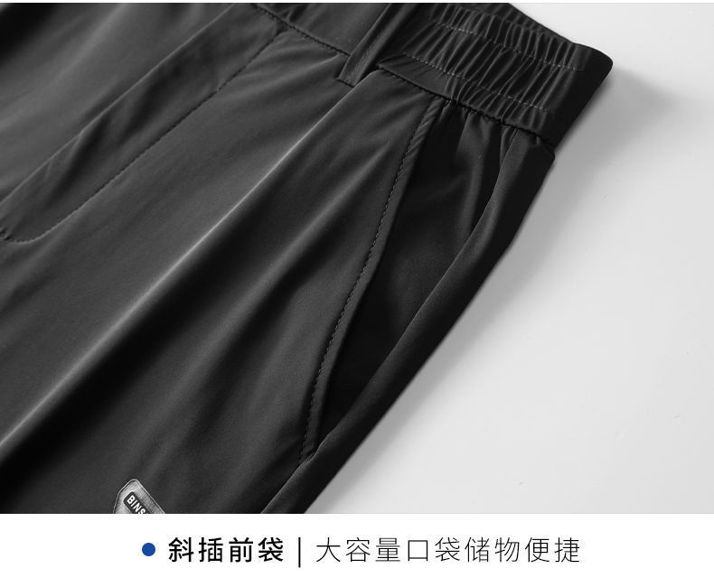 2023 여름 얇은 남자 캐주얼 바지 아이스 실크 탄성 허리 느슨한 스트레이트 스트레치 긴 바지 통기성 빠른 건조 바지