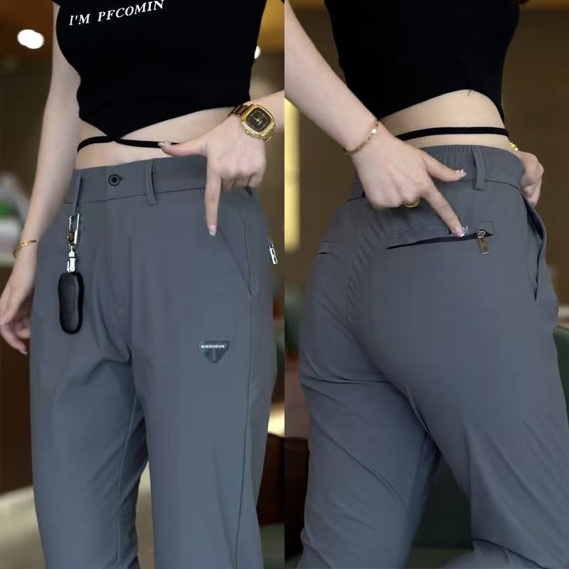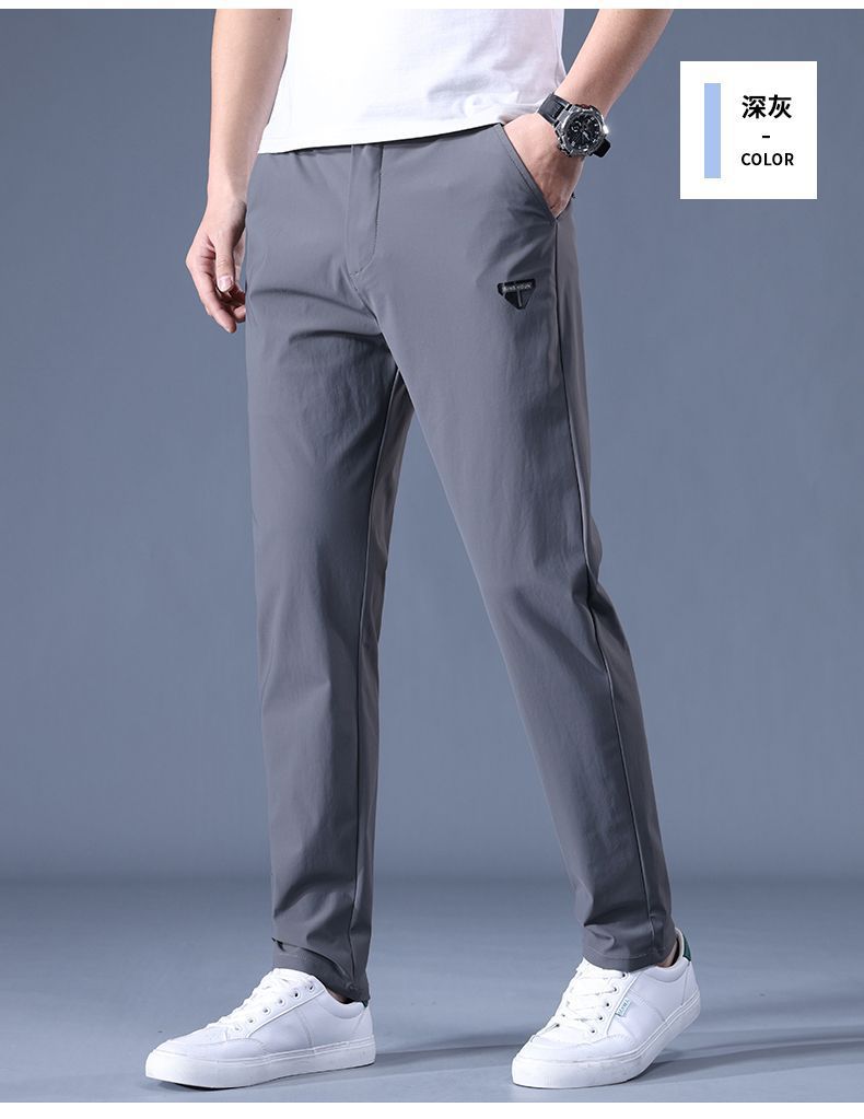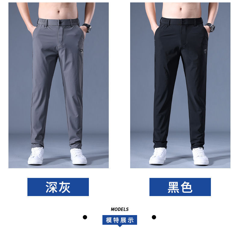 2023 여름 얇은 남자 캐주얼 바지 아이스 실크 탄성 허리 느슨한 스트레이트 스트레치 긴 바지 통기성 빠른 건조 바지스토어 가기