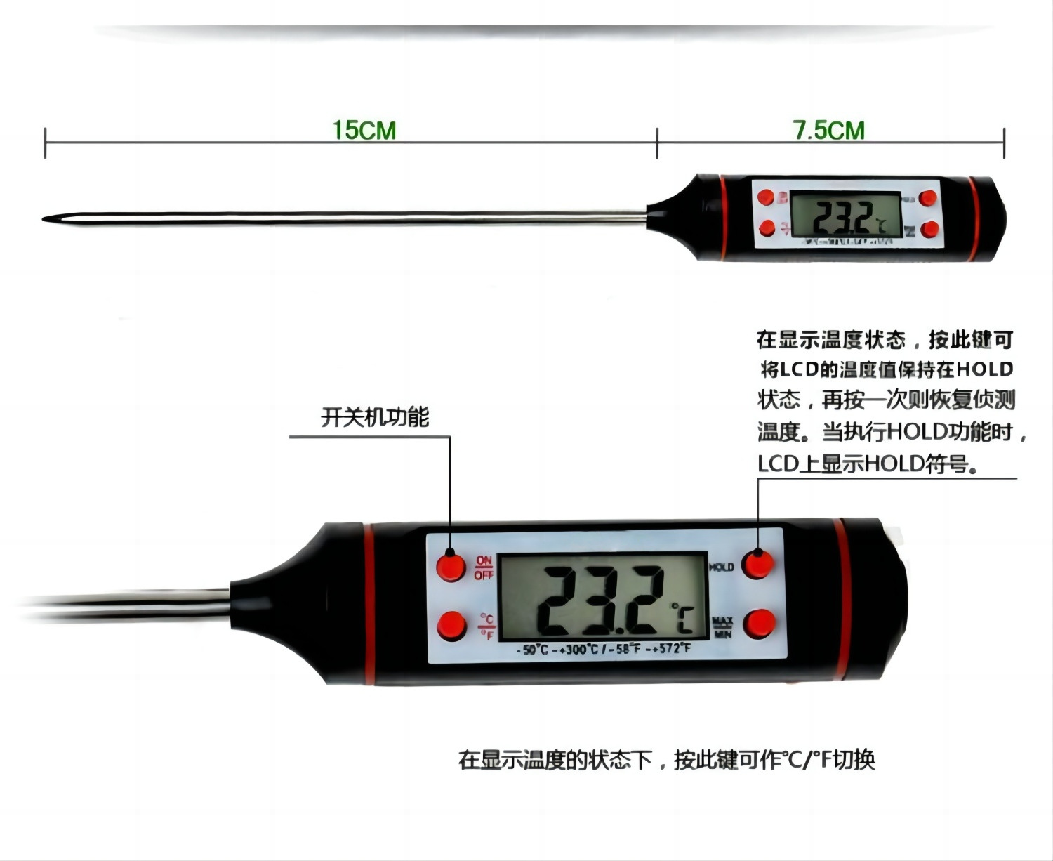 笔型结构,全不锈钢探针,准确度高,可快速测温
