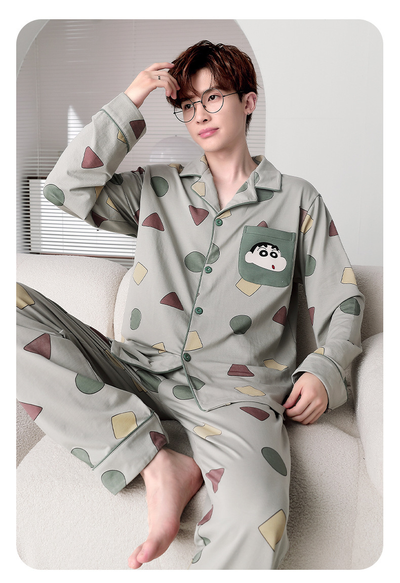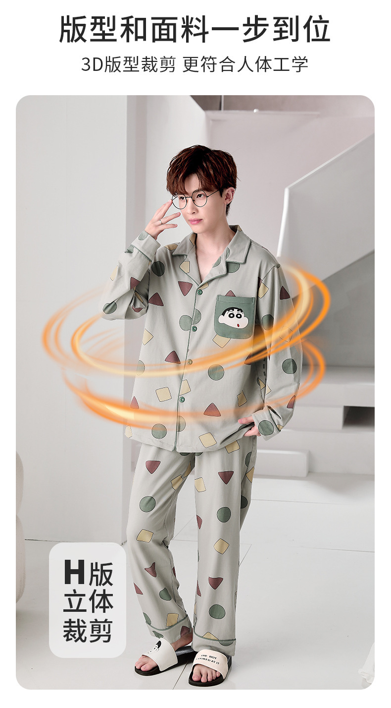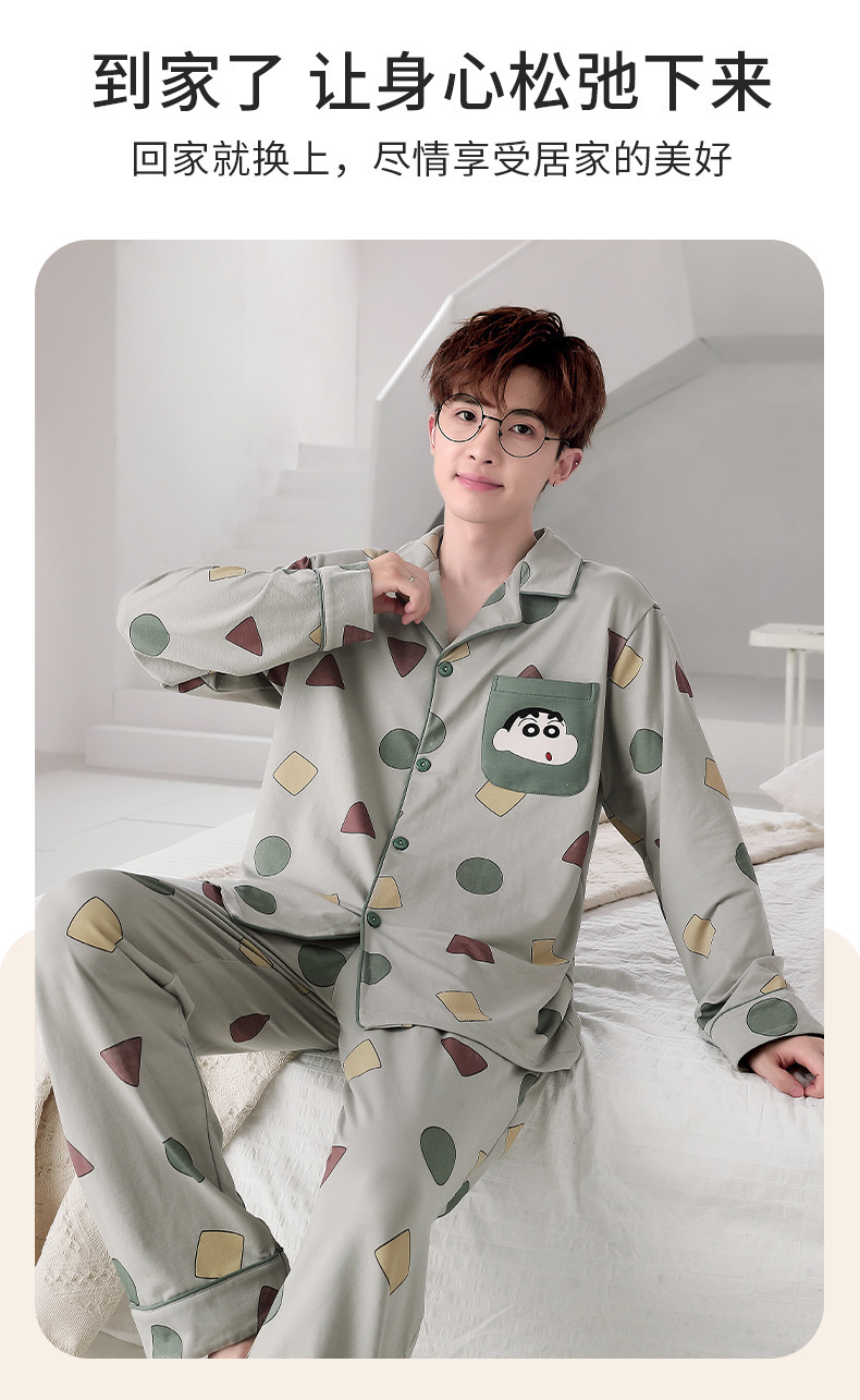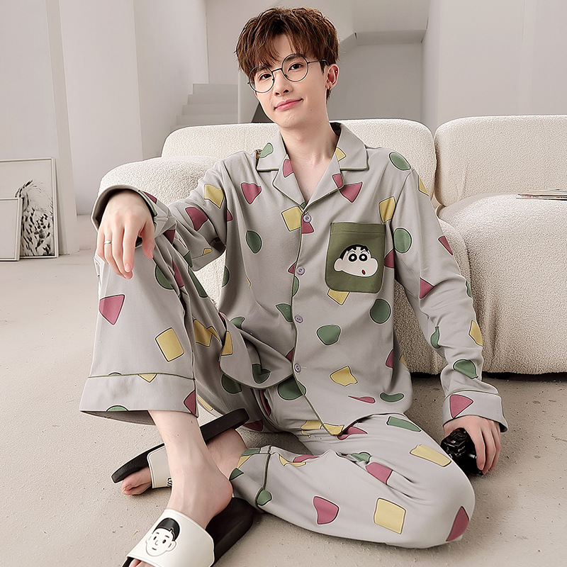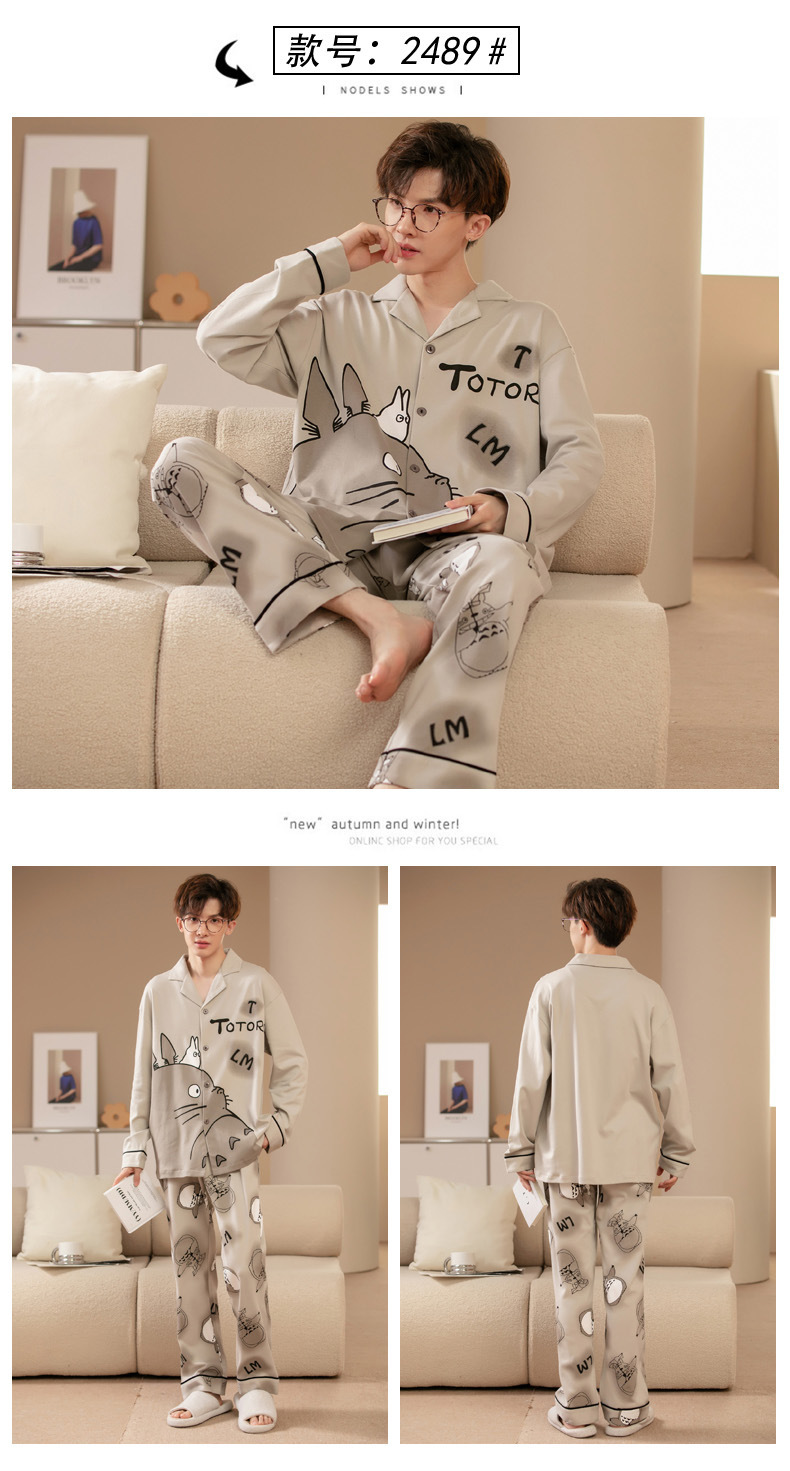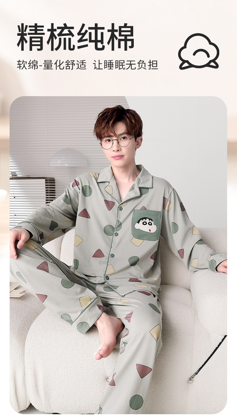 하이 엔드 퓨어 코튼 파자마 남자 봄과 가을 한국 스타일 긴팔 카디건 트렌디 브랜드 십대 겉옷 홈 세트