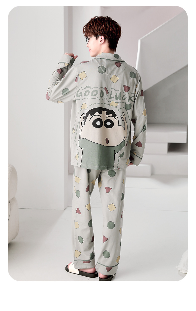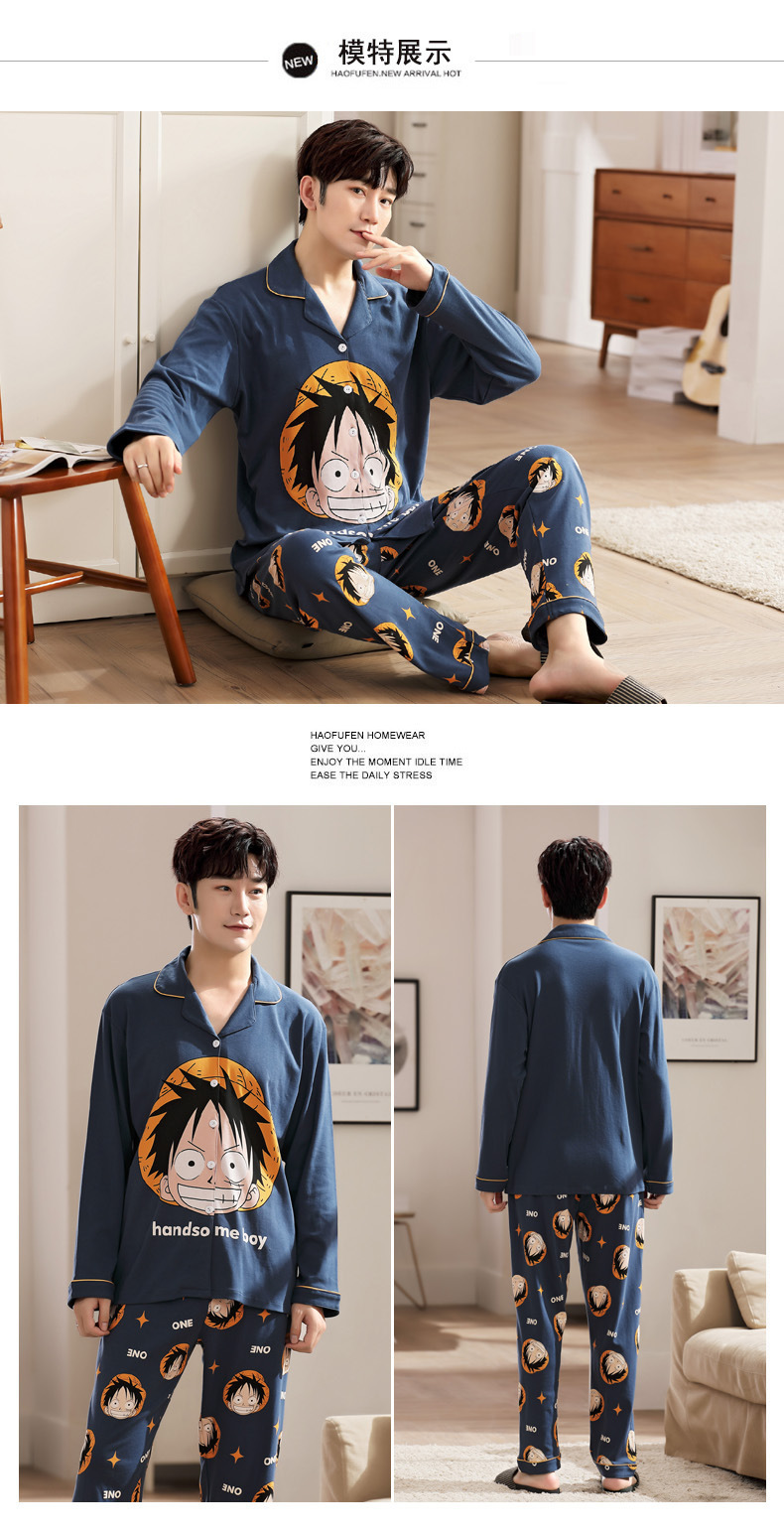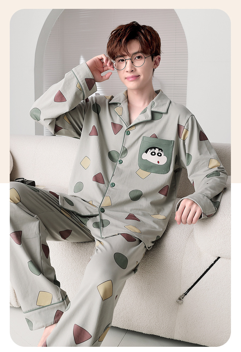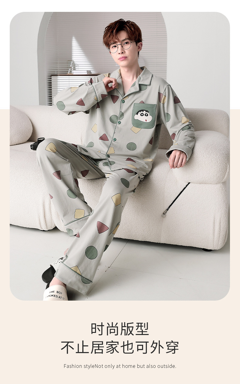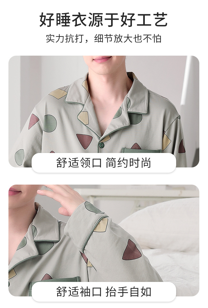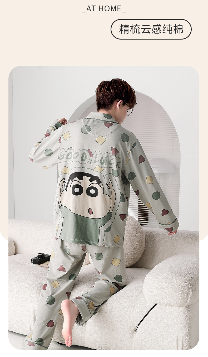 하이 엔드 퓨어 코튼 파자마 남자 봄과 가을 한국 스타일 긴팔 카디건 트렌디 브랜드 십대 겉옷 홈 세트