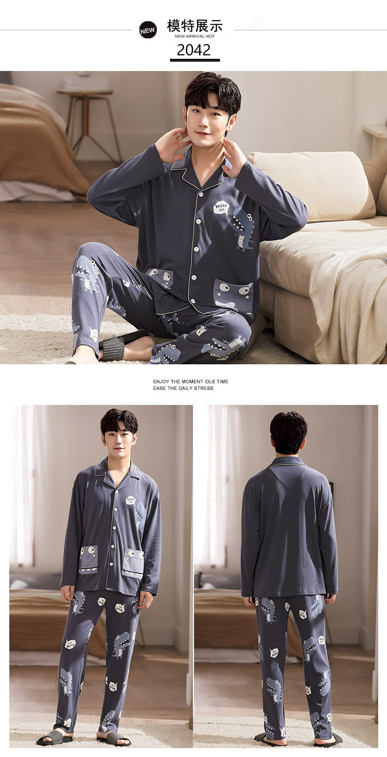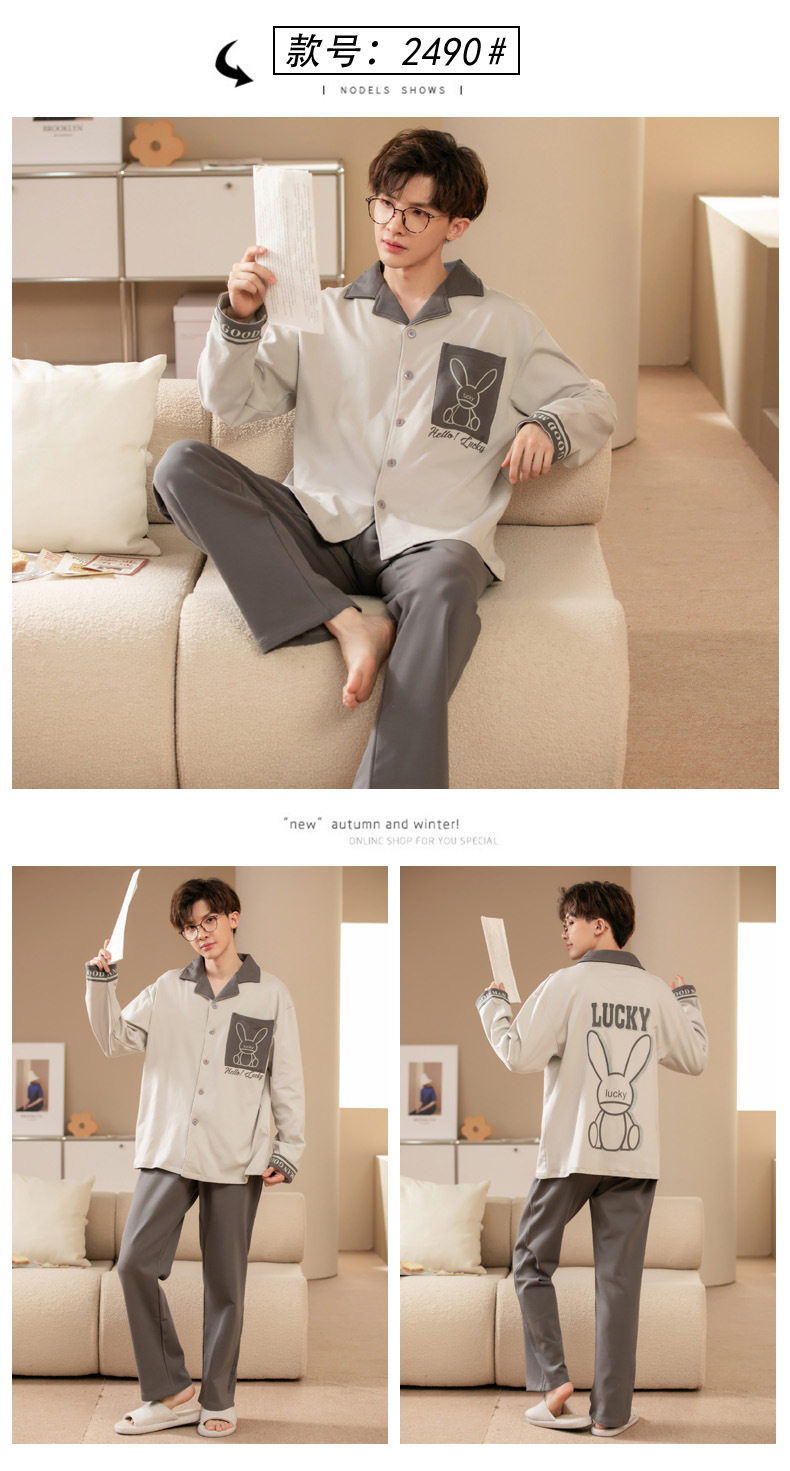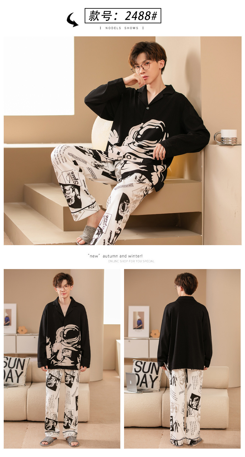 하이 엔드 퓨어 코튼 파자마 남자 봄과 가을 한국 스타일 긴팔 카디건 트렌디 브랜드 십대 겉옷 홈 세트스토어 가기