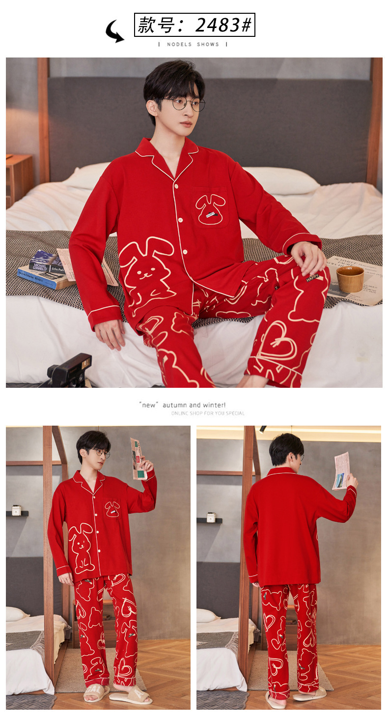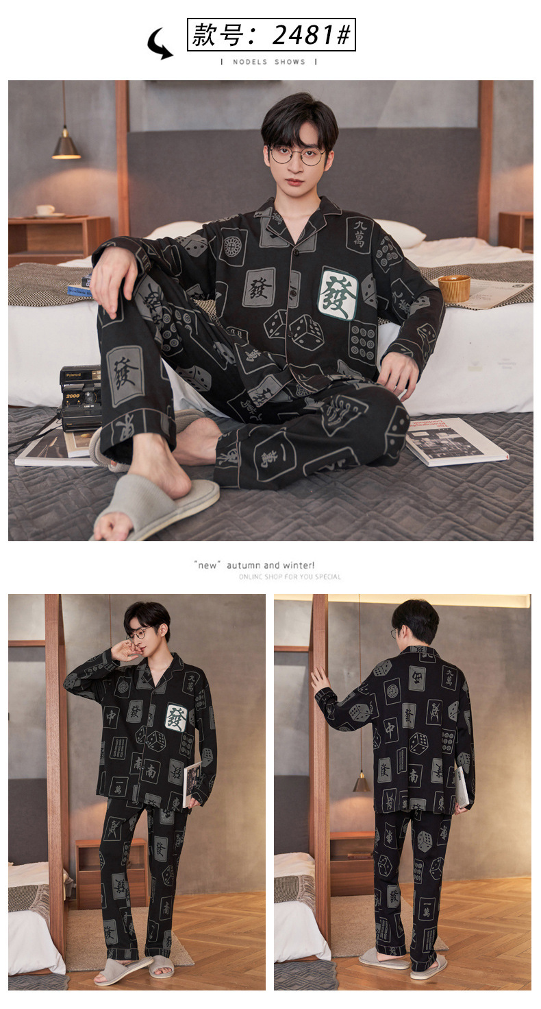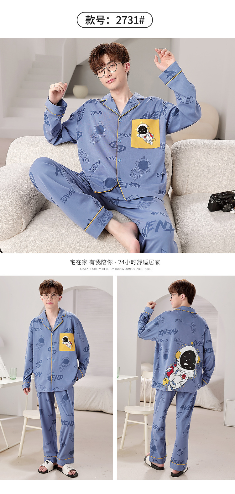 하이 엔드 퓨어 코튼 파자마 남자 봄과 가을 한국 스타일 긴팔 카디건 트렌디 브랜드 십대 겉옷 홈 세트스토어 가기