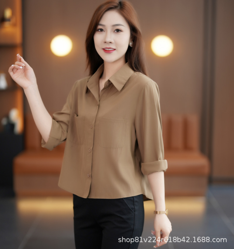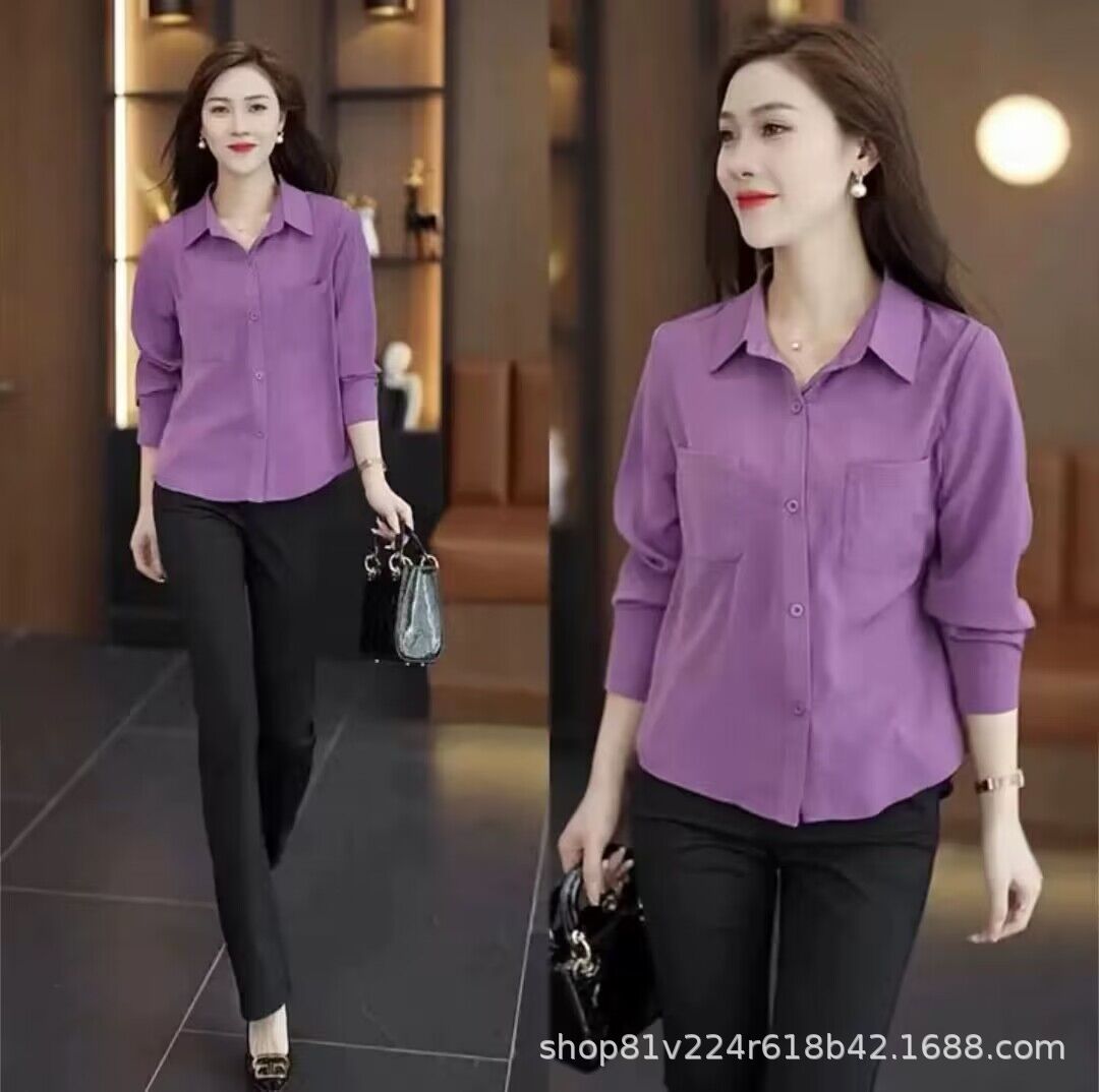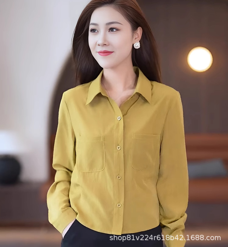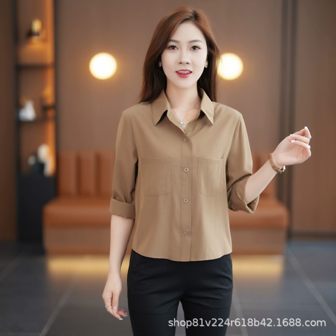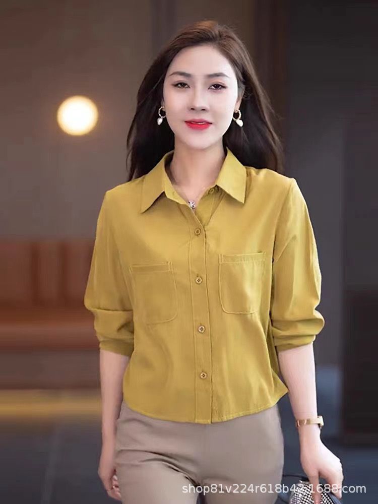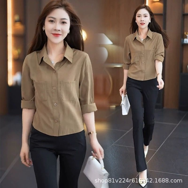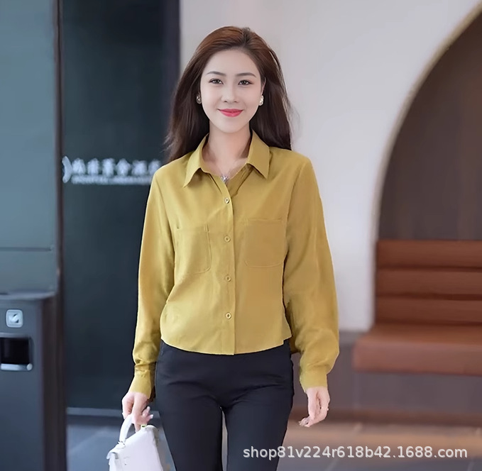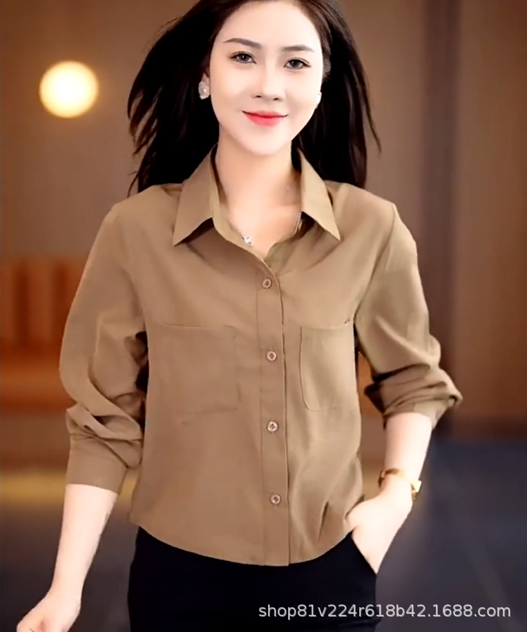 긴 소매 셔츠 여성의 2024 봄 새로운 패션 웨스턴 스타일 느슨한 작은 슬림 폴로 칼라 셔츠 탑