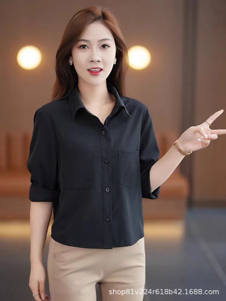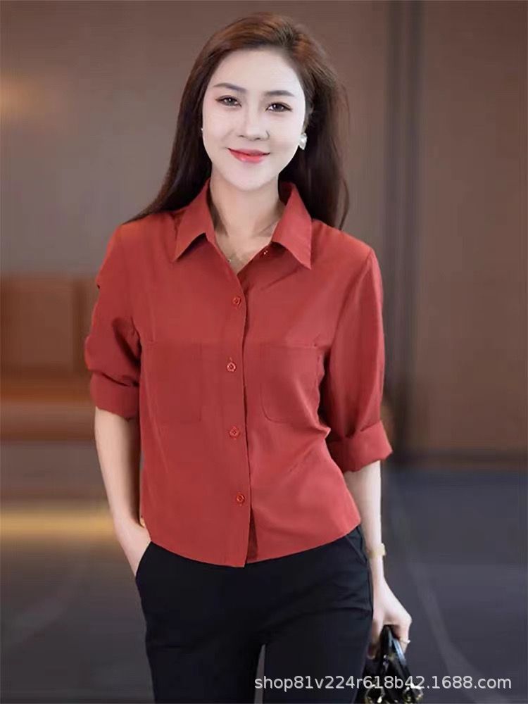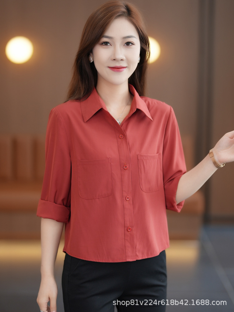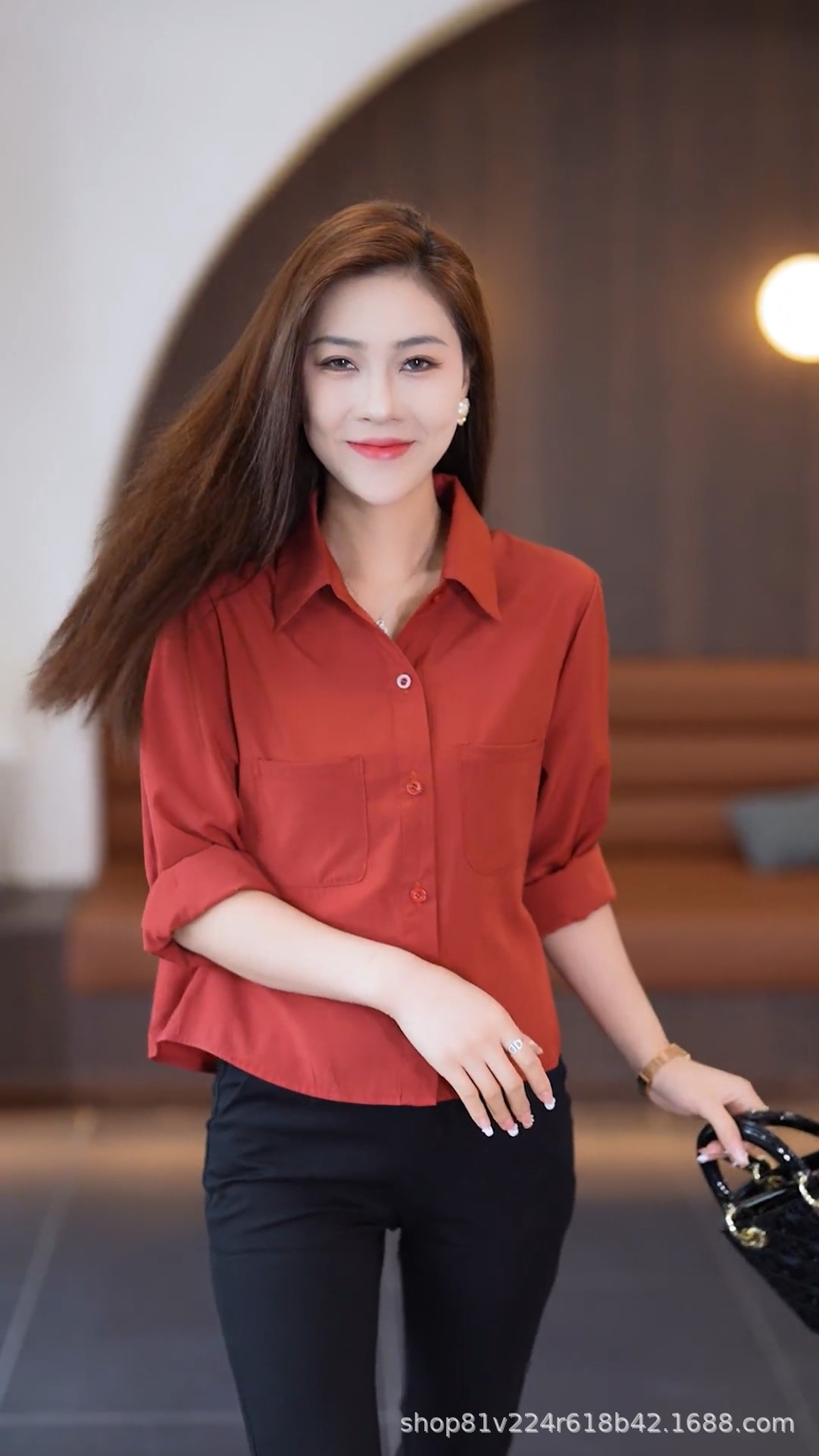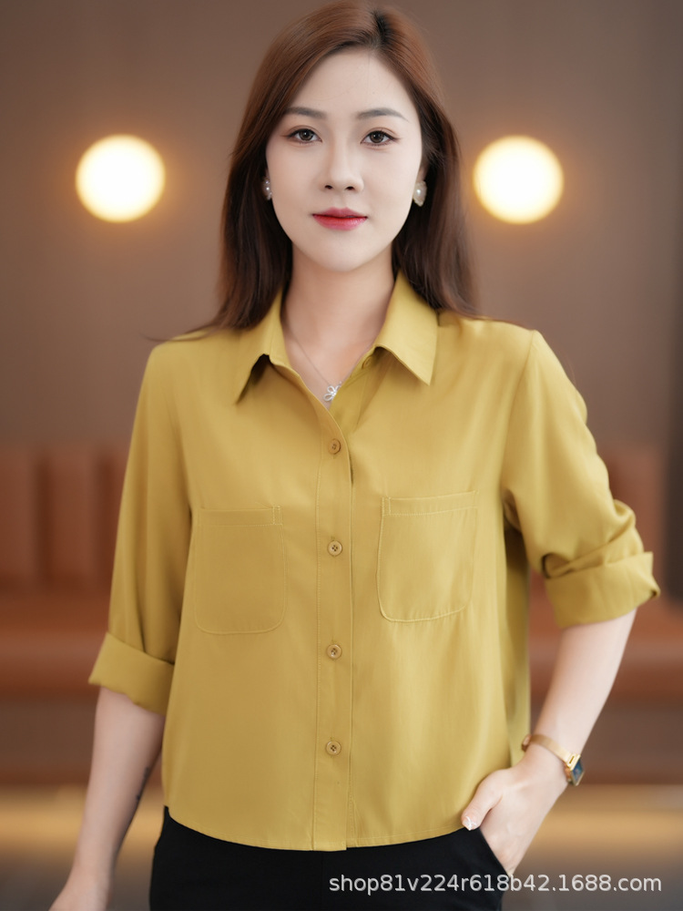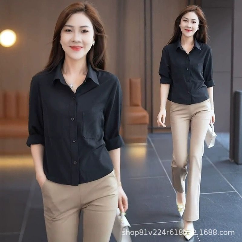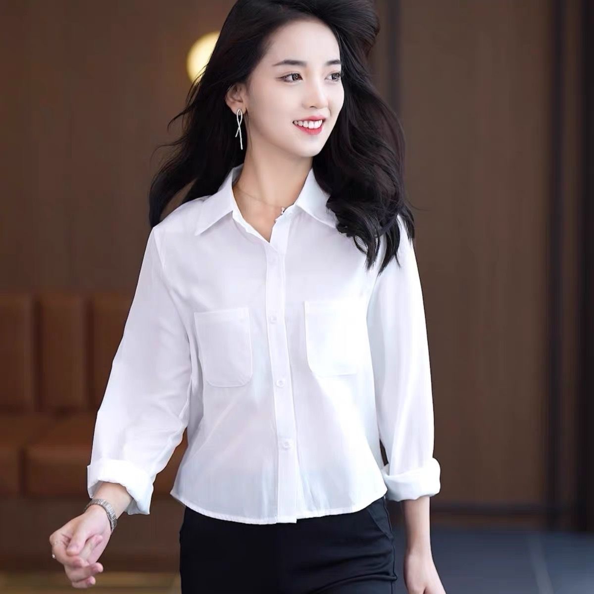 긴 소매 셔츠 여성의 2024 봄 새로운 패션 웨스턴 스타일 느슨한 작은 슬림 폴로 칼라 셔츠 탑
