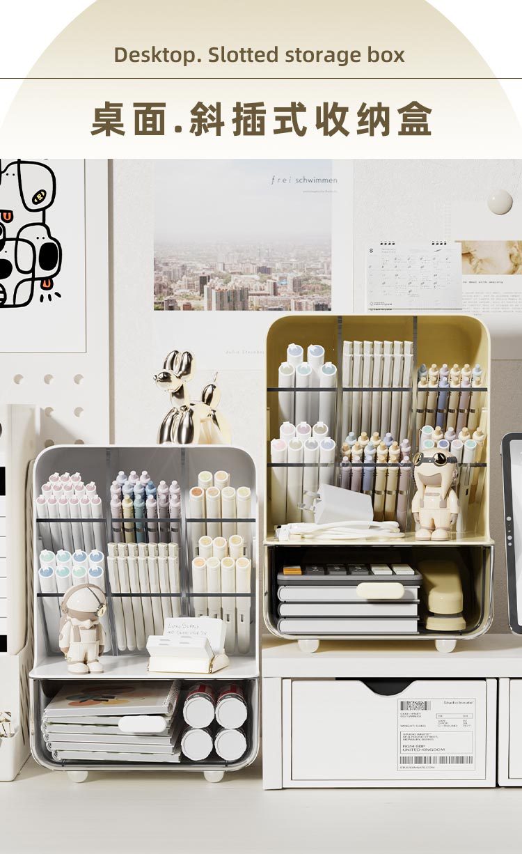 비스듬한 펜 홀더 학생 쓰기 책상 문구 보관 상자 대용량 사무실 데스크탑 잡화 보관 랙스토어 가기
