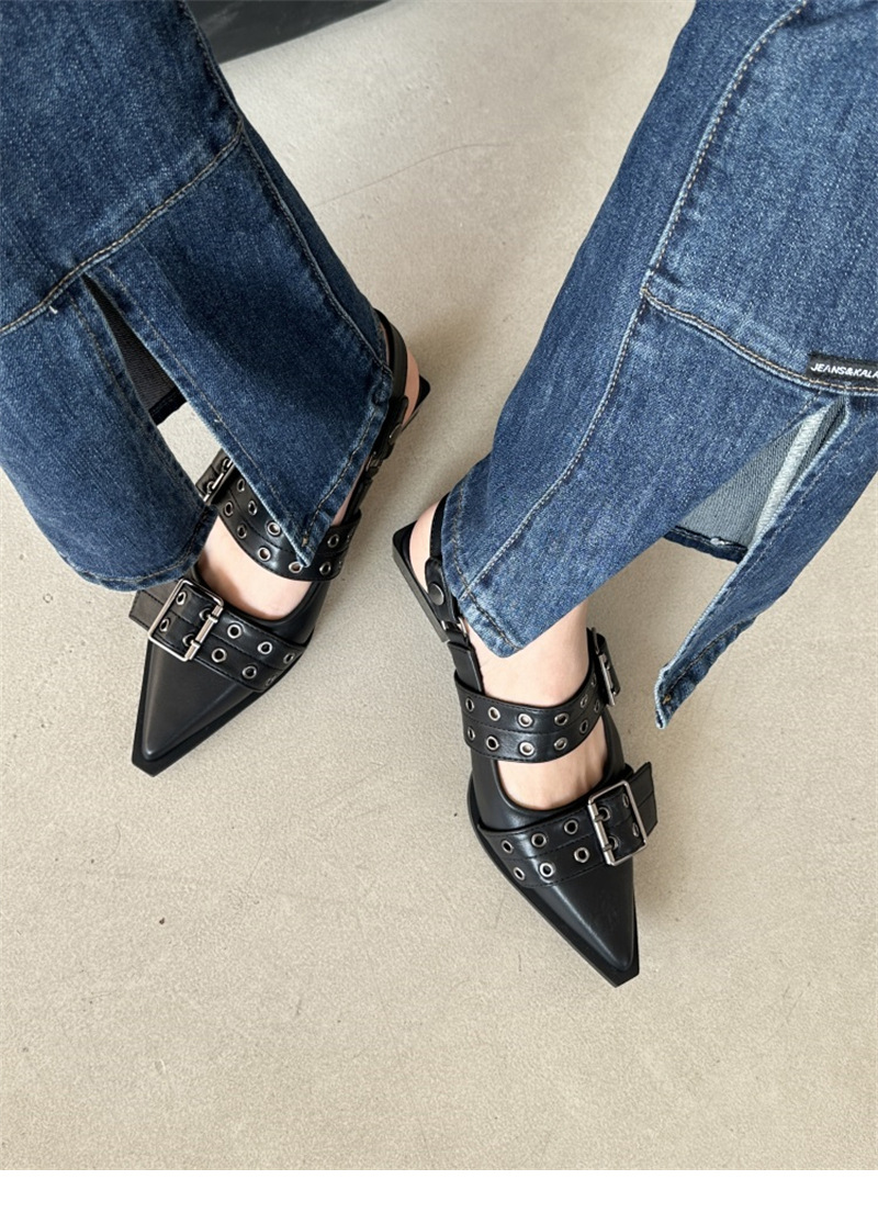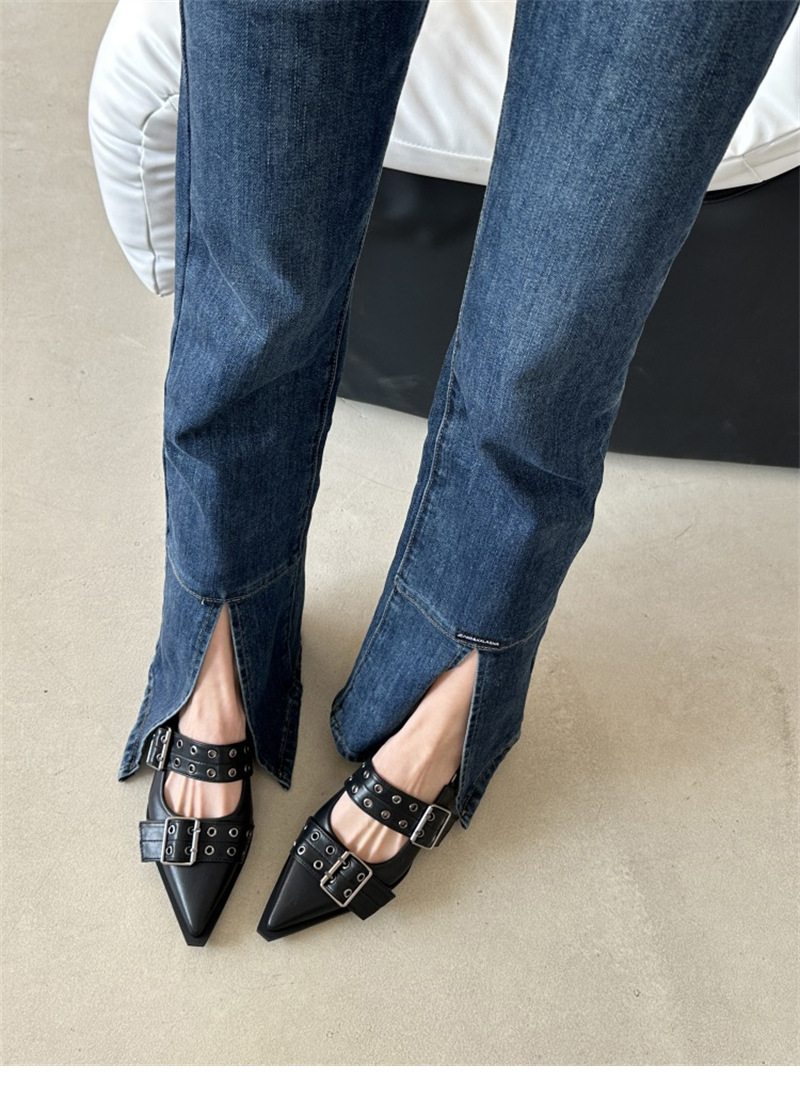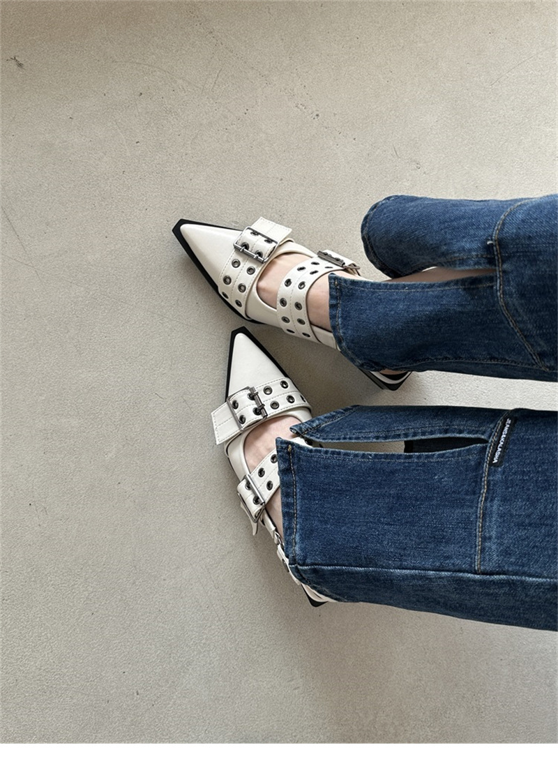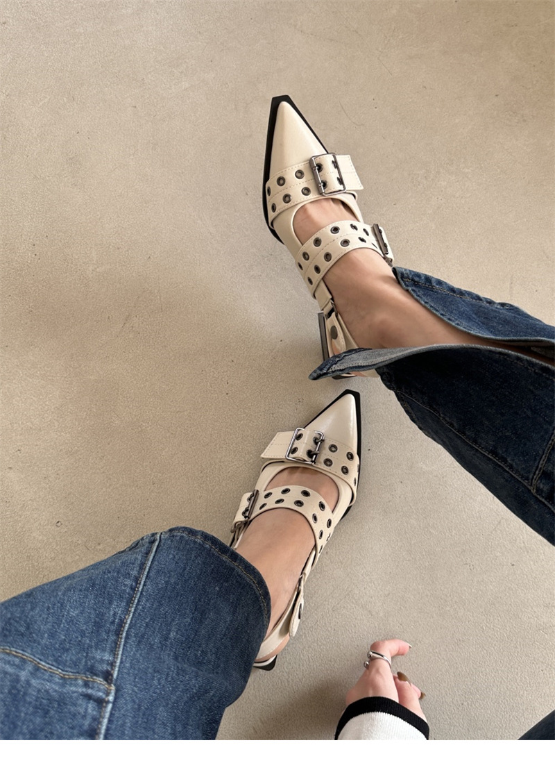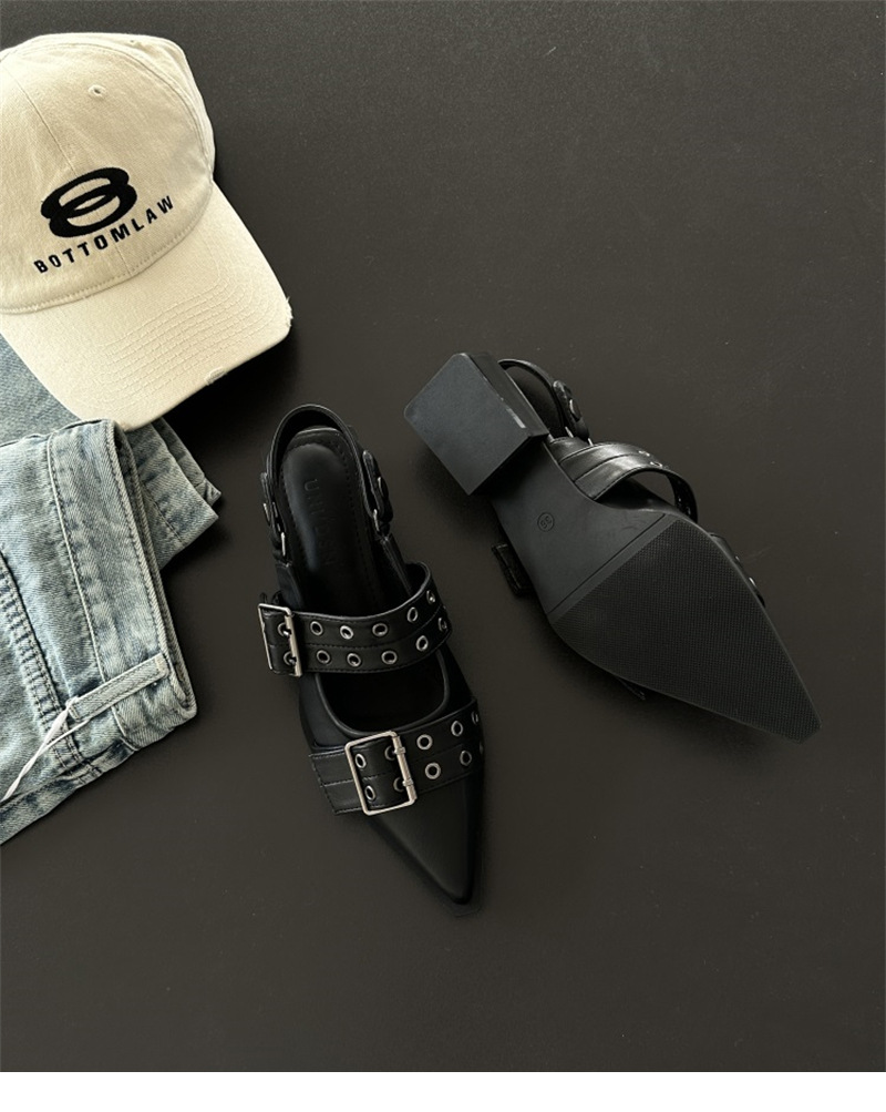 프랑스 스타일 뾰족한 메리 제인 신발 레트로 미디엄 두꺼운 힐 신발 여성의 봄 2024 스커트 신발스토어 가기