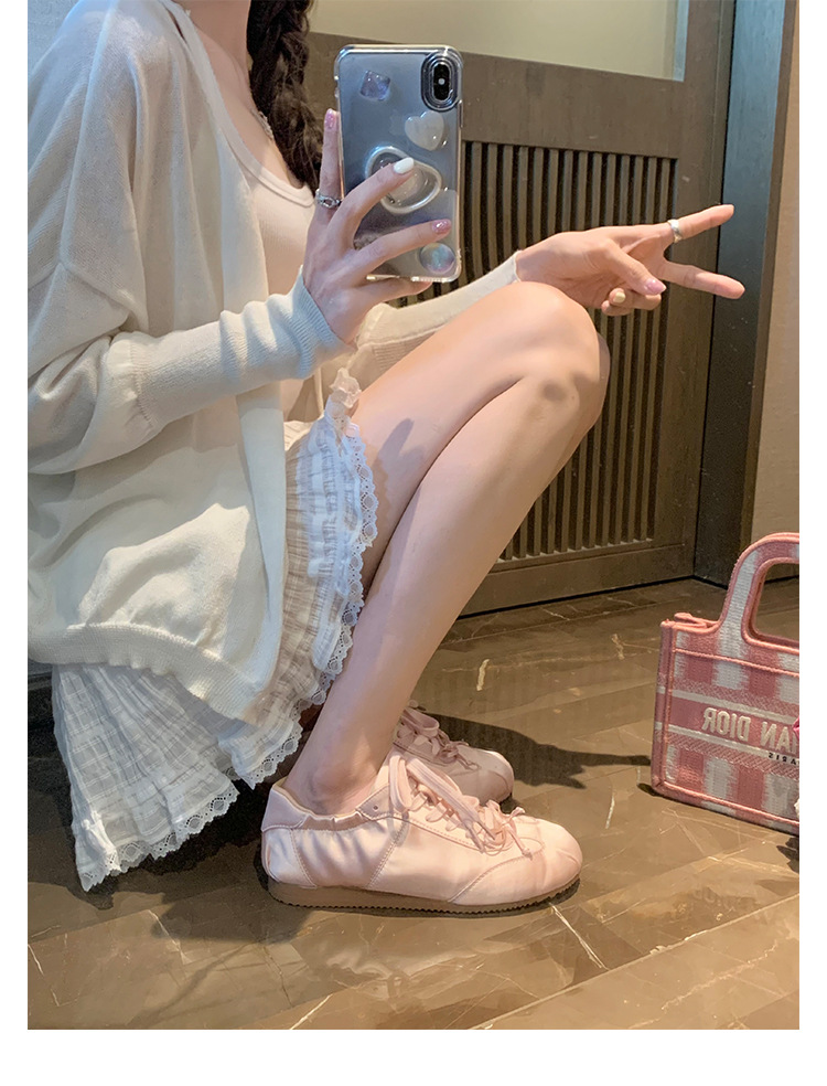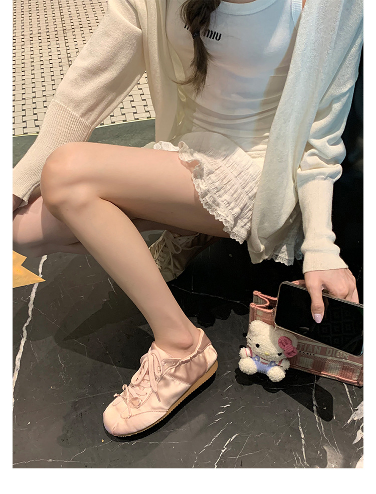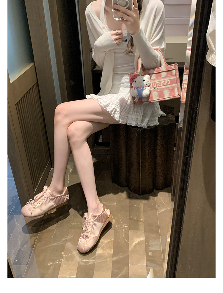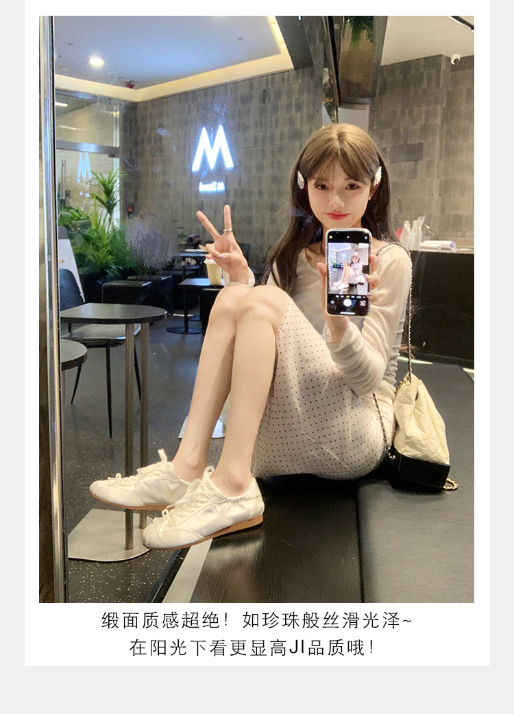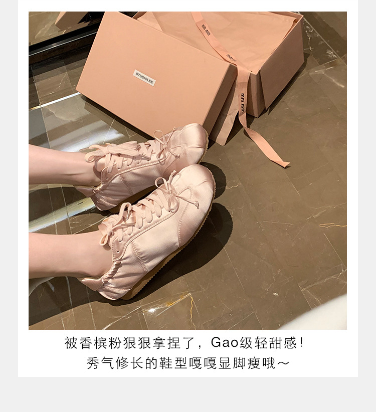 포도엄마와 같은 스타일의 바로 배송 가능한 발레 스타일 달콤한 소녀 라운드 토 새틴 스니커즈 리본 캐주얼 트레이닝화 여성용