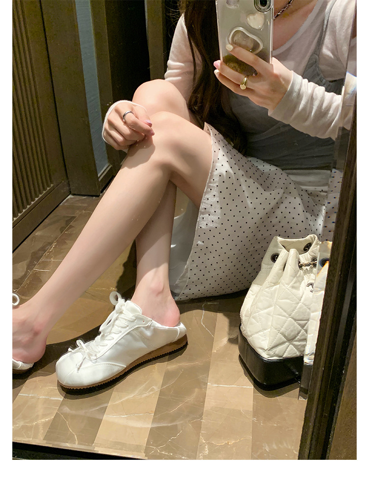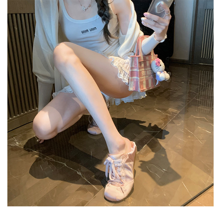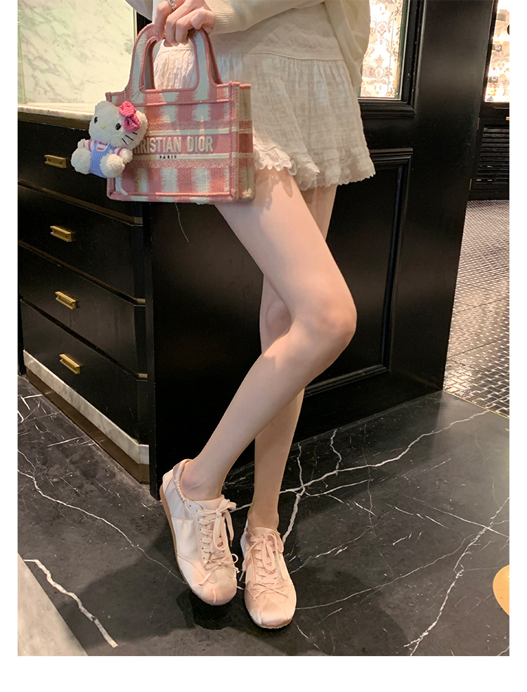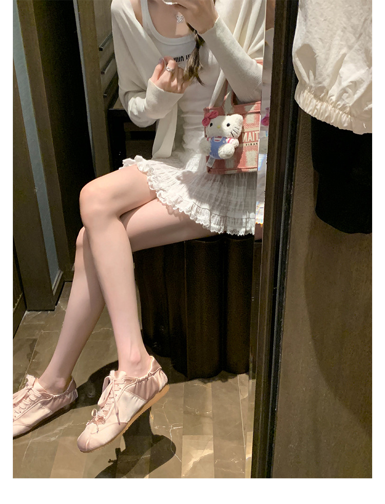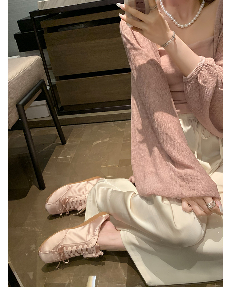 포도엄마와 같은 스타일의 바로 배송 가능한 발레 스타일 달콤한 소녀 라운드 토 새틴 스니커즈 리본 캐주얼 트레이닝화 여성용