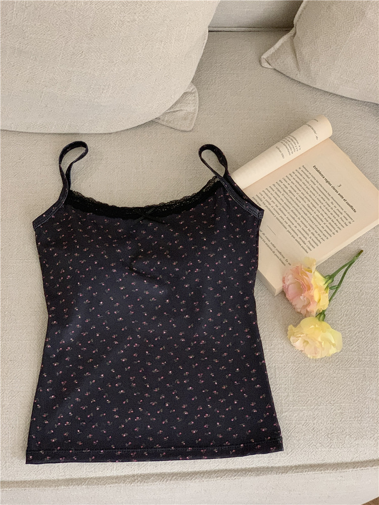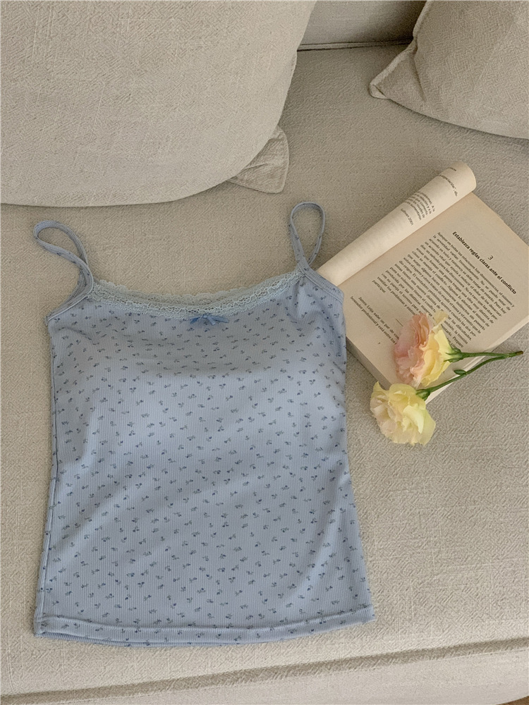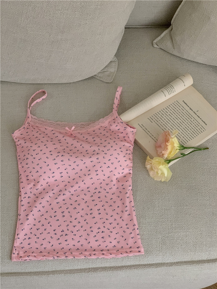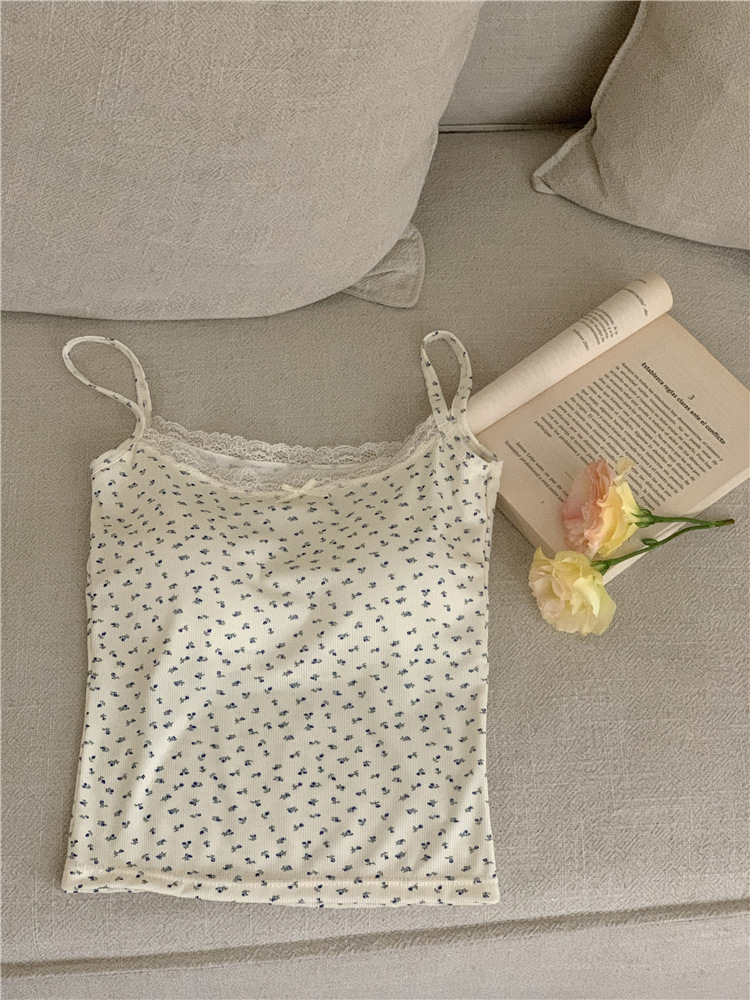 Ins Super Hot Girl 레이스 작은 꽃 슬링 아름다운 백 조끼 원피스 가슴 패드 포장 가슴 외부 착용베이스 탑스토어 가기