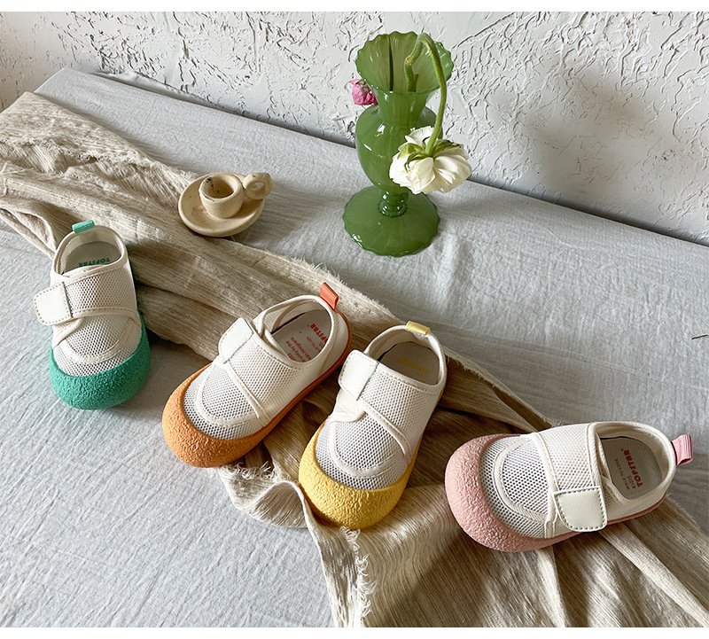 2024 여름 새로운 어린이 그물 신발 한국 버전의 부드러운 바닥 여자 운동화 유치원 실내 신발 머리카락스토어 가기