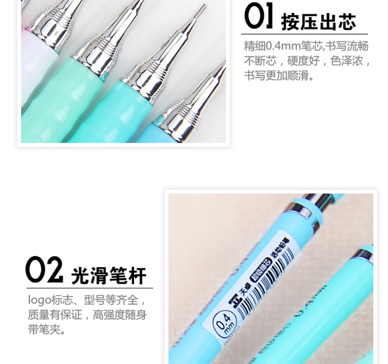 Tianzhuo 01710 활동 연필 리필 초등 및 중등 학교 학생 프레스 0.4mm 자동 연필 학생 아트 토글 라인