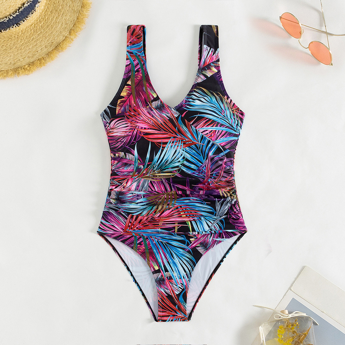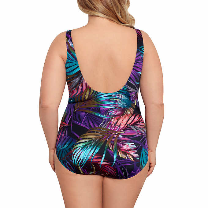 대외 무역 유럽과 미국의 원피스 수영복 아마존 인쇄 뚱뚱한 여자 플러스 사이즈 벨리를 덮는 슬리밍 백리스 민소매 원피스 수영복스토어 가기