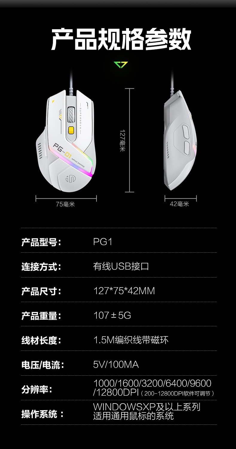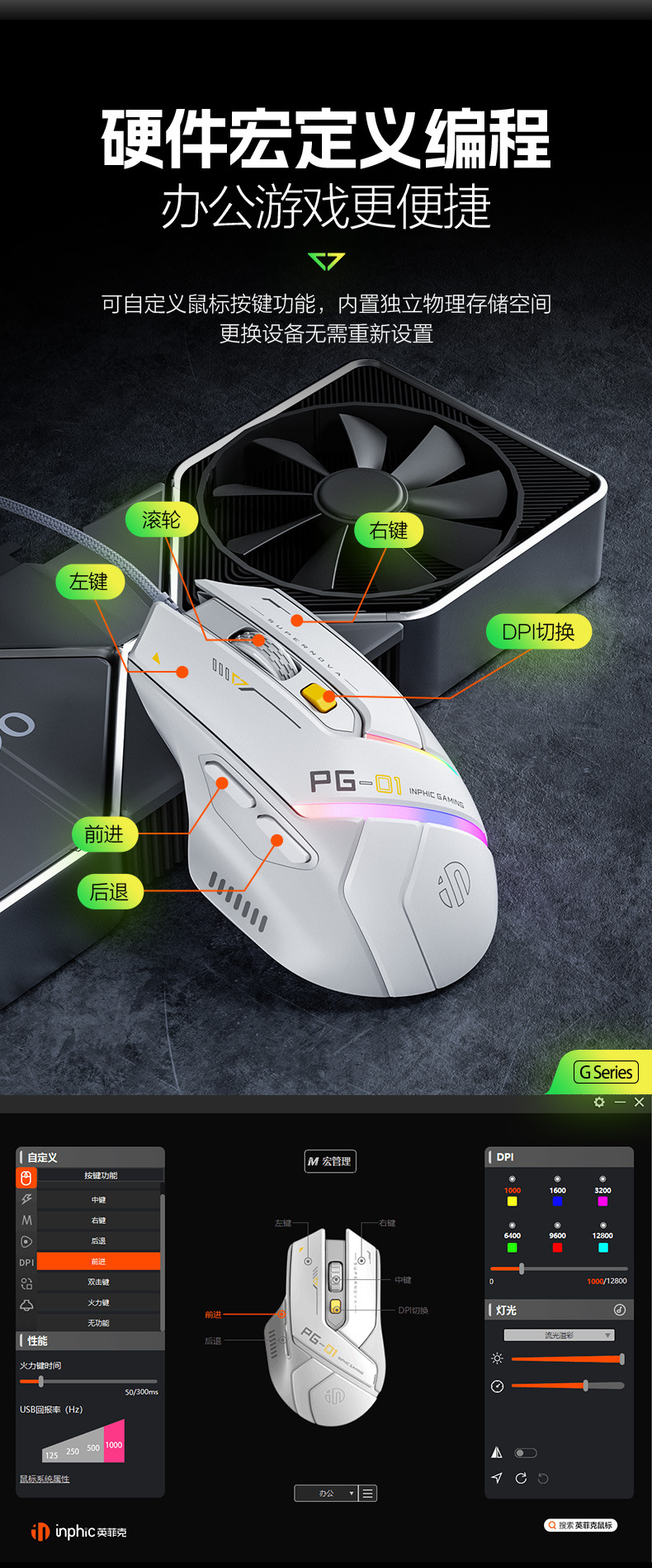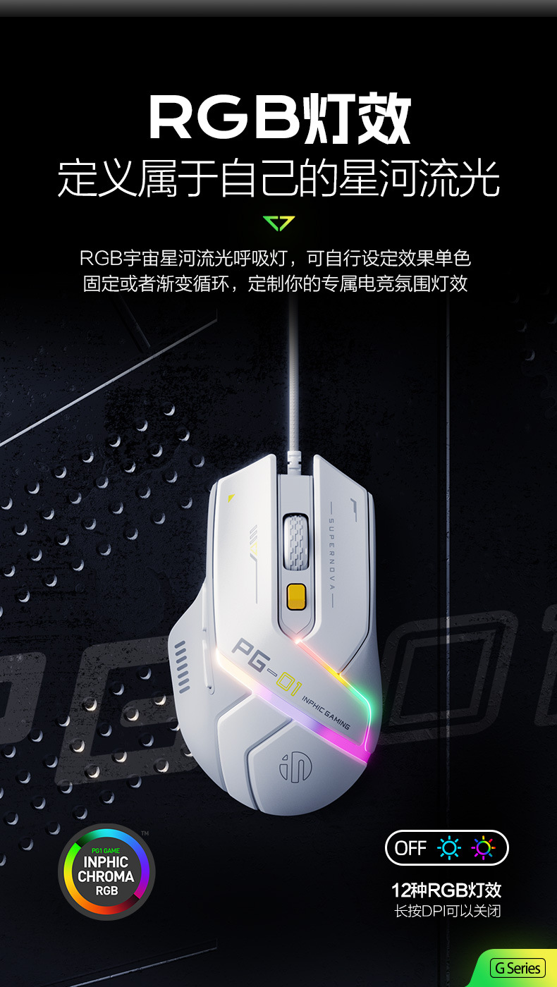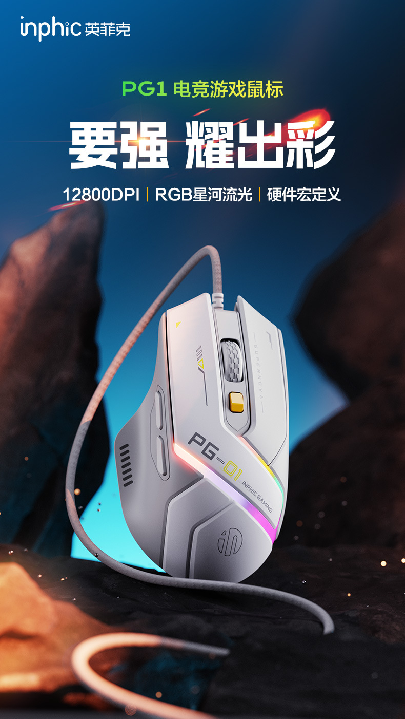 INPHIC PG1 유선 마우스 e-스포츠 게임 전용 RGB 발광 하드웨어 매크로 PG9 오피스 홈