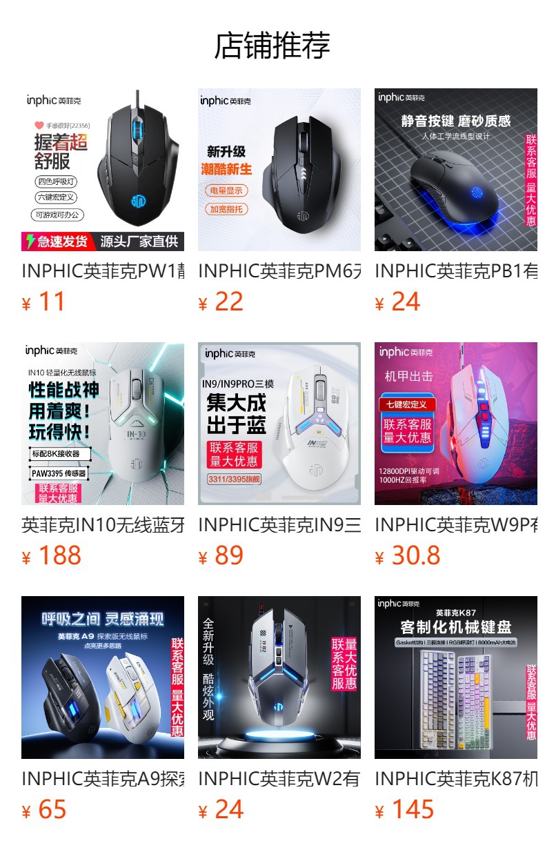 INPHIC PG1 유선 마우스 e-스포츠 게임 전용 RGB 발광 하드웨어 매크로 PG9 오피스 홈스토어 가기
