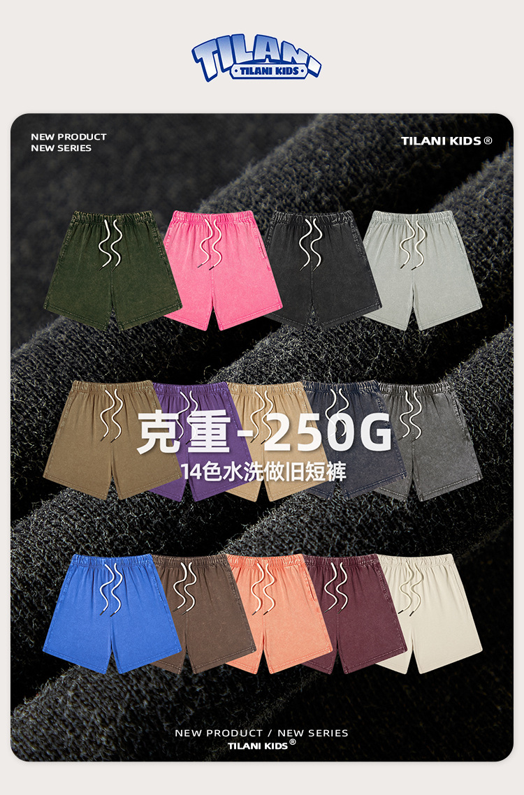 TILANI 아동복 유럽과 미국 패션 브랜드 250G 오래 된 느슨한 어린이 여름 바지 소년 여름 반바지 아이들스토어 가기