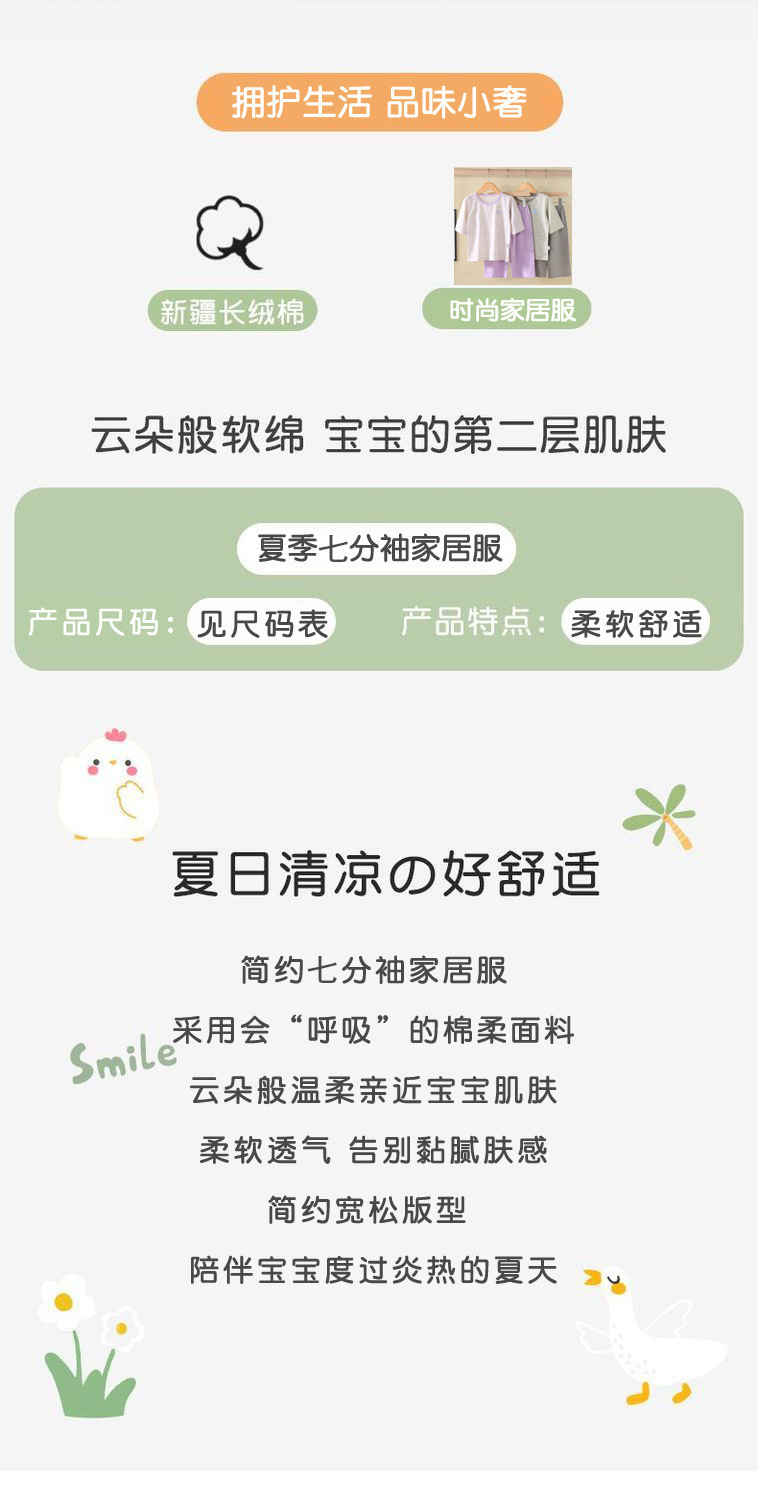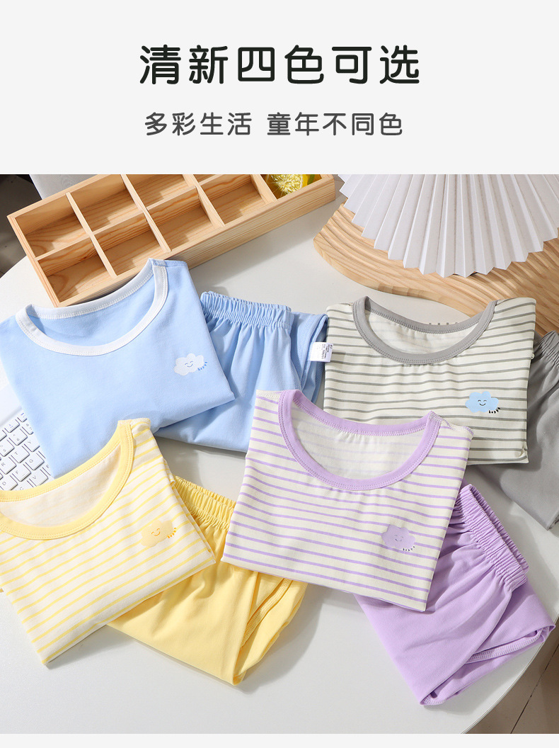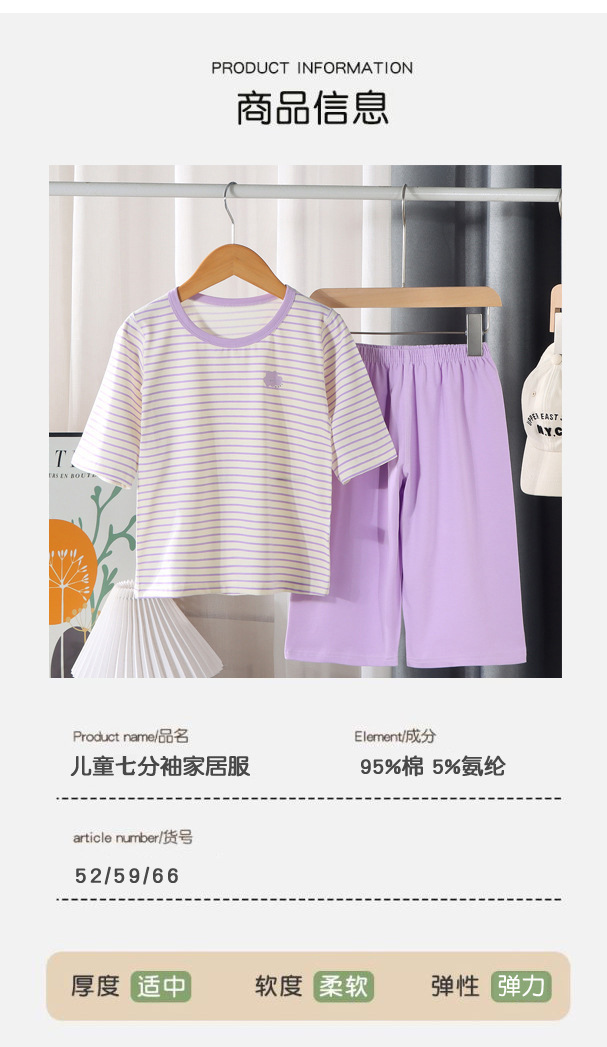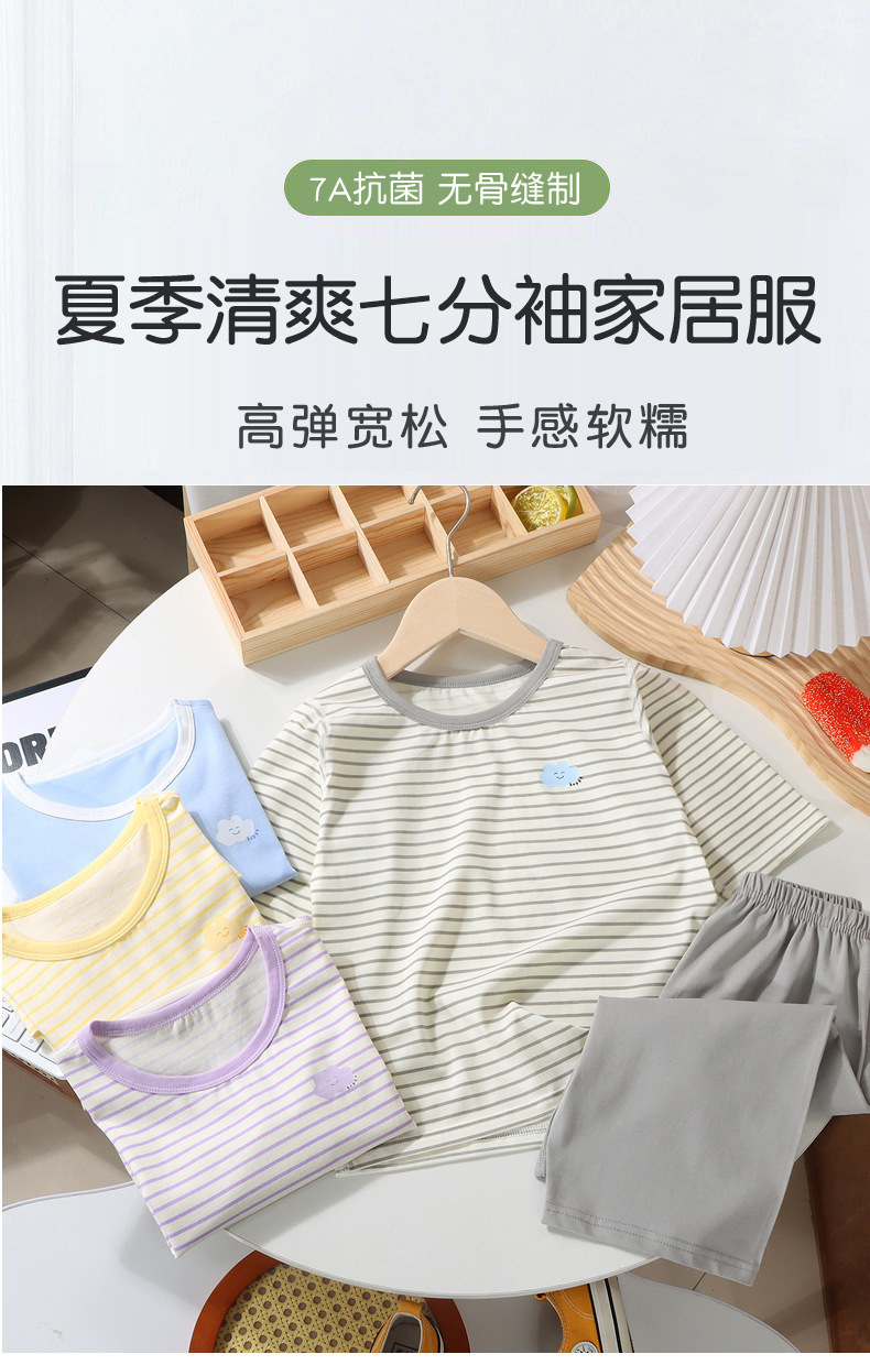 어린이 잠옷 반팔 투피스 세트 소년 봄, 여름 얇은 7부 소매 부모-자식 홈웨어 세트 소녀스토어 가기