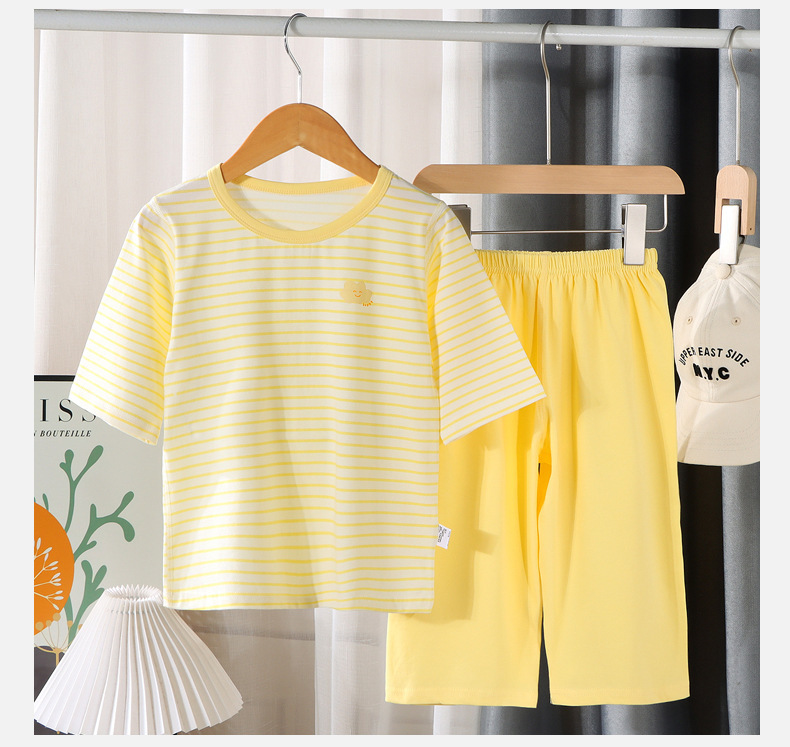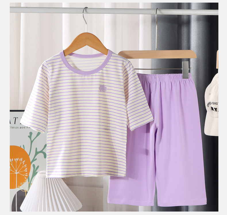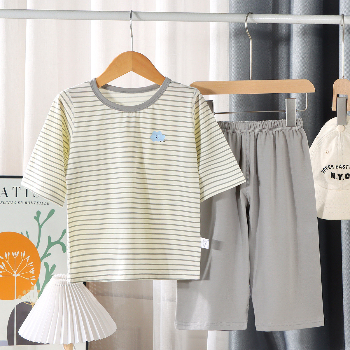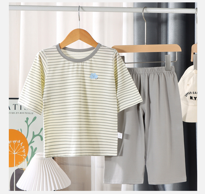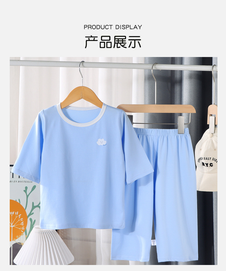 어린이 잠옷 반팔 투피스 세트 소년 봄, 여름 얇은 7부 소매 부모-자식 홈웨어 세트 소녀
