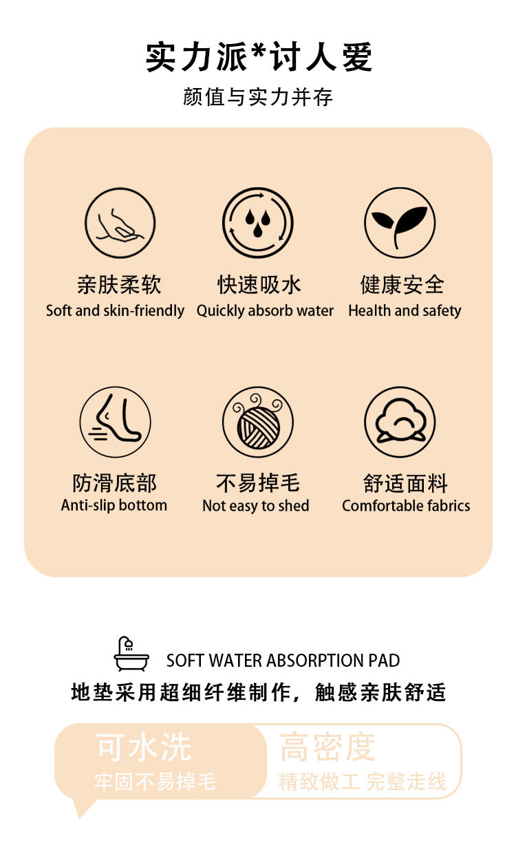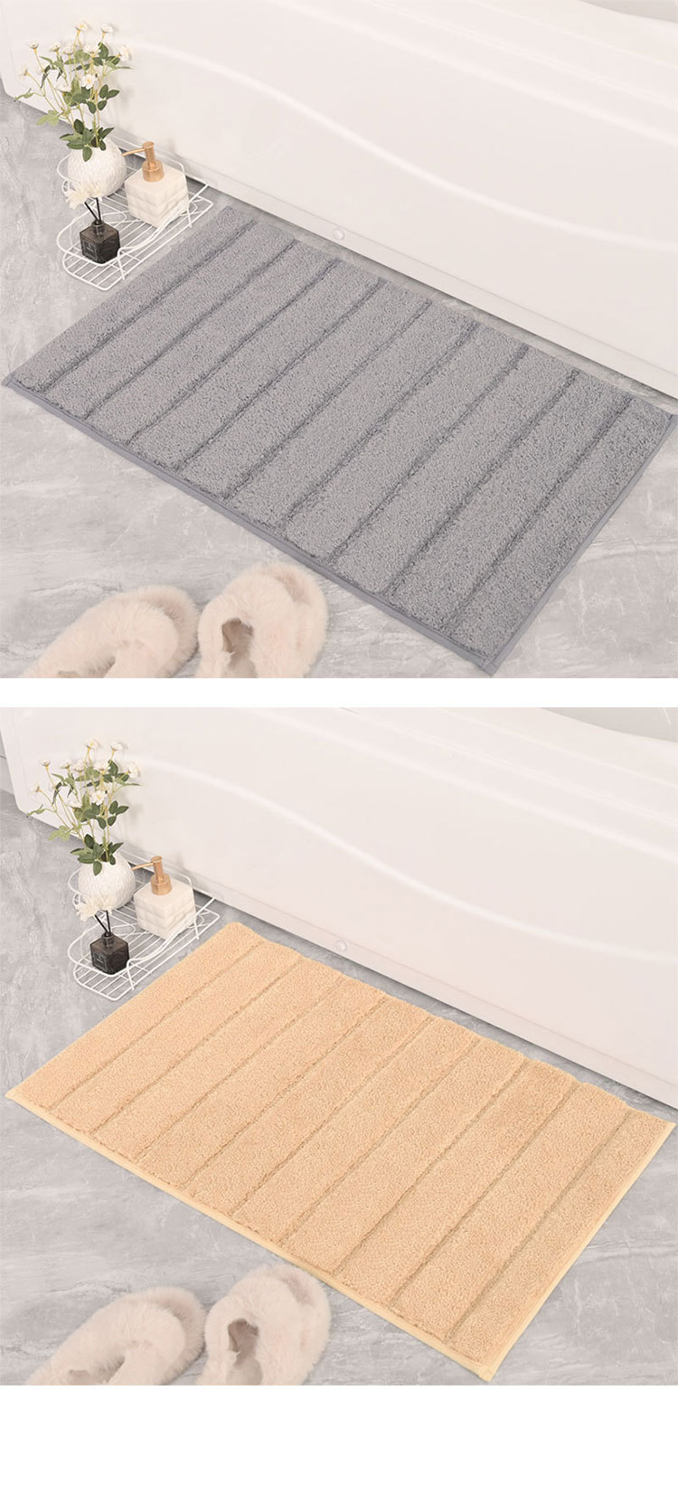 국경 간 새로운 잠금 욕실 미끄럼 방지 매트 솔리드 컬러 화장실 스트레이트 스트립 흡수 매트 하이 컷 로우 서클 화장실 매트스토어 가기