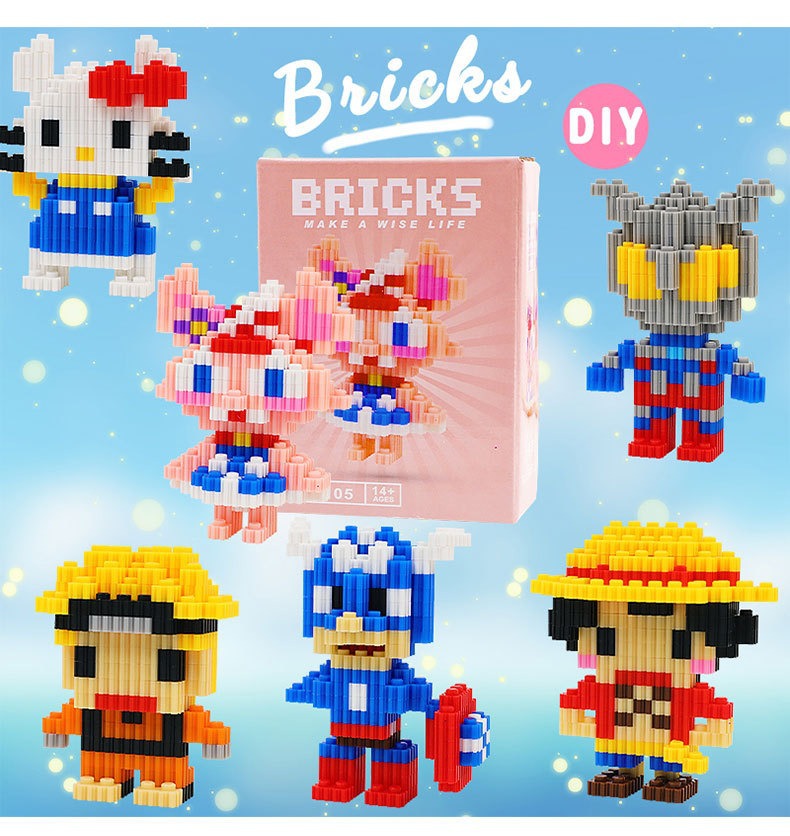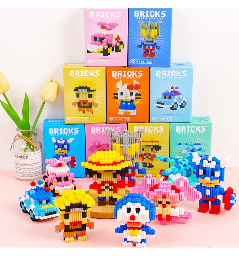 어린이용 작은 입자 블록, 남아 및 여아 선물, 레고와 호환 가능, 교육용 조립 장난감, 만화 미니