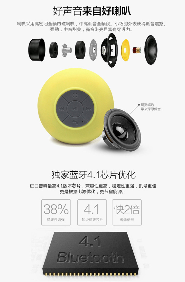 라벨링 및 로고가 가능한 흡입 컵 스피커, 욕실 및 자동차에 사용 가능, 크로스 경계 판매 준비 IPX4 방수 블루투스 스피커스토어 가기