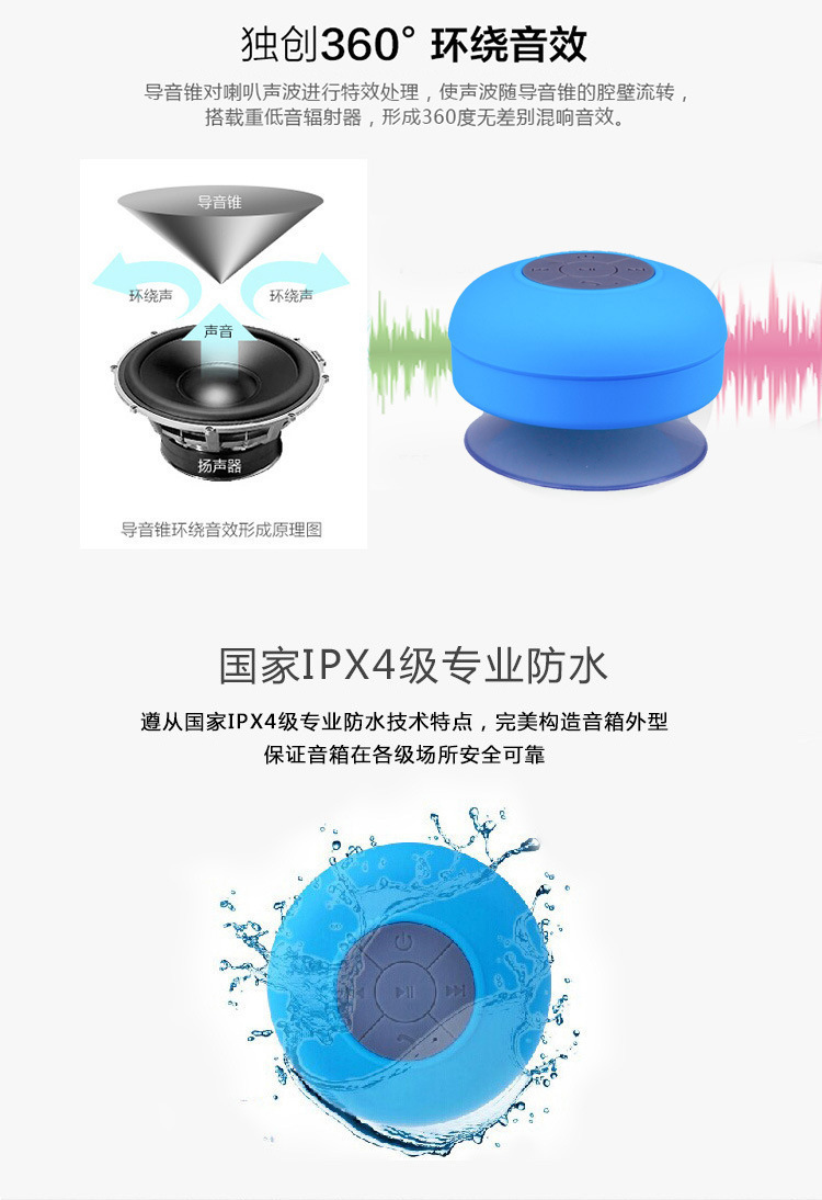 라벨링 및 로고가 가능한 흡입 컵 스피커, 욕실 및 자동차에 사용 가능, 크로스 경계 판매 준비 IPX4 방수 블루투스 스피커