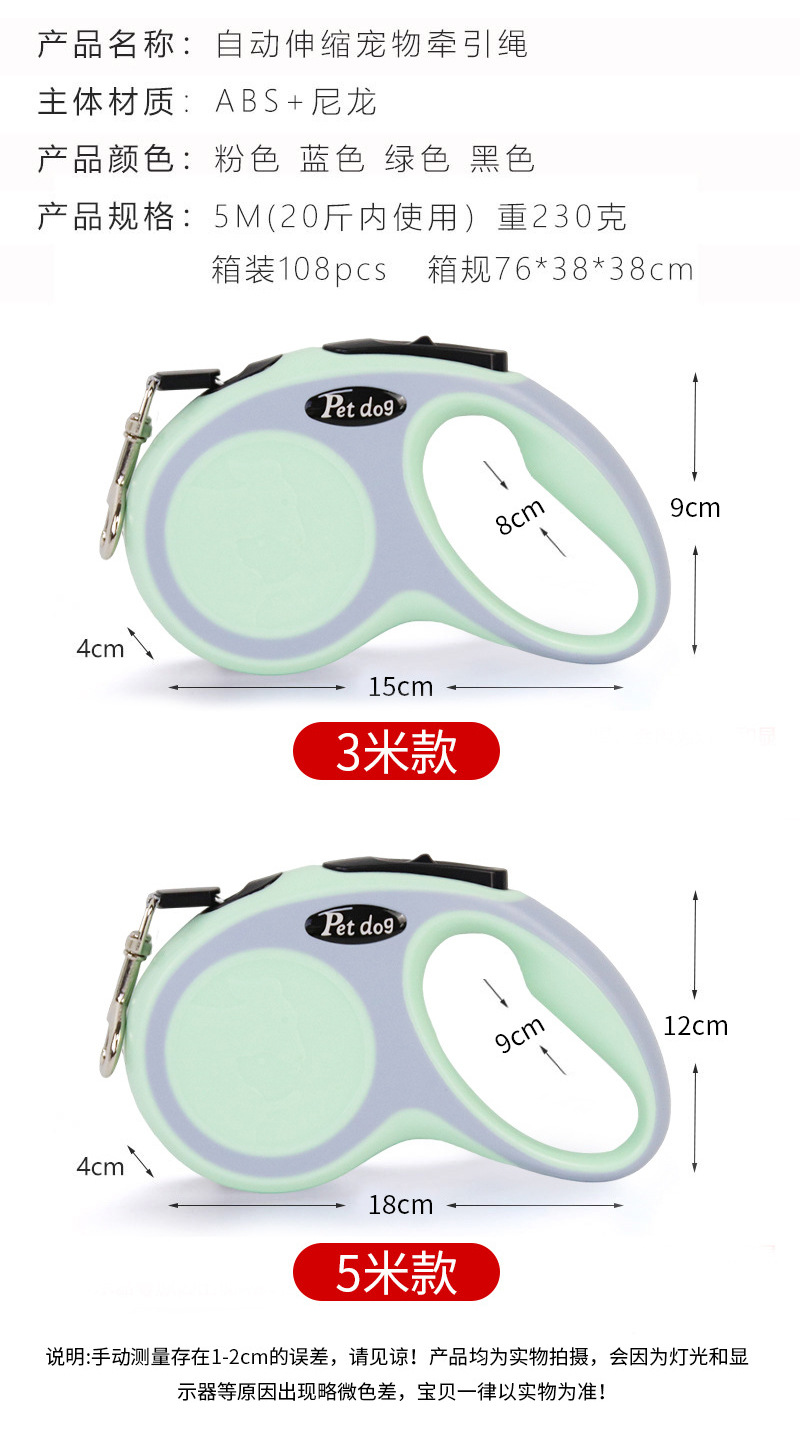 애완 동물 견인 로프 자동 개폐식 원 버튼 브레이크 개 견인 로프 고양이 개 밧줄로 휴대용 소형 및 중형 개스토어 가기