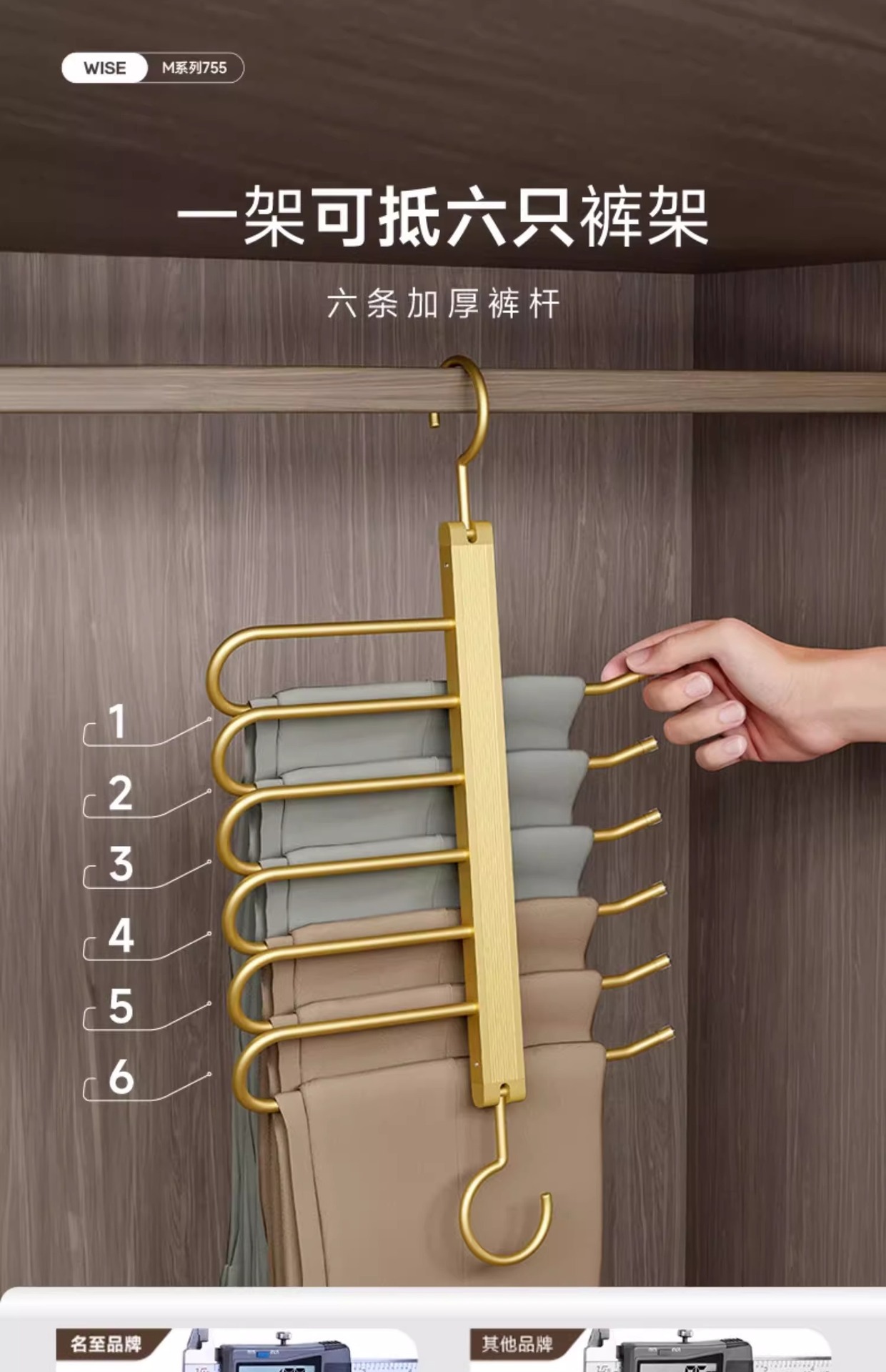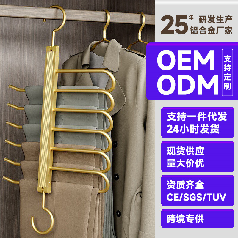 Made of high-quality aluminum alloy, and the u-shaped rod and crossbar of the trouser rack are made of thickened material, the hook part is made of solid metal, sturdy and durable, with a weight capacity of 80 pounds,can store men's and women's pants.