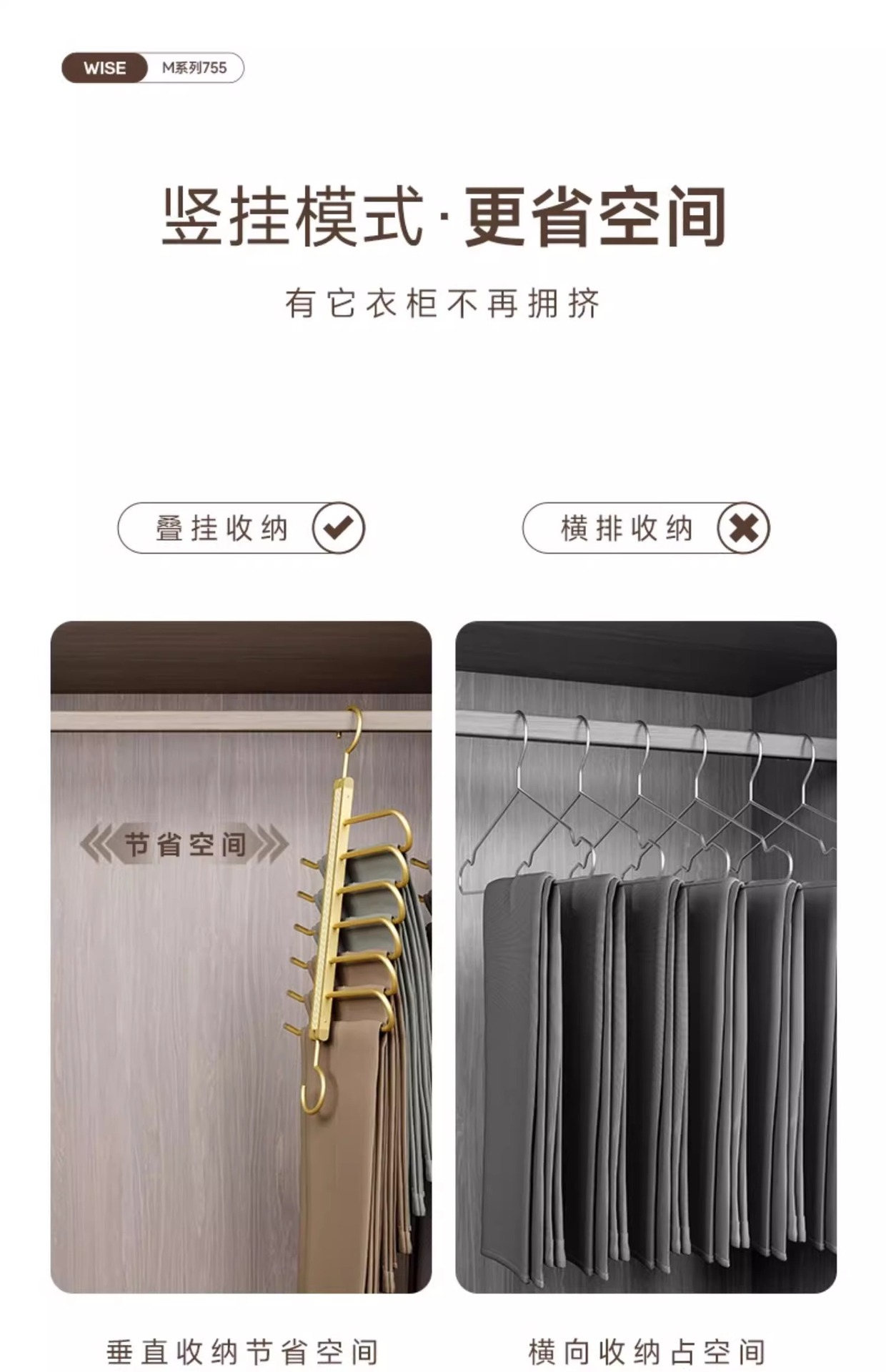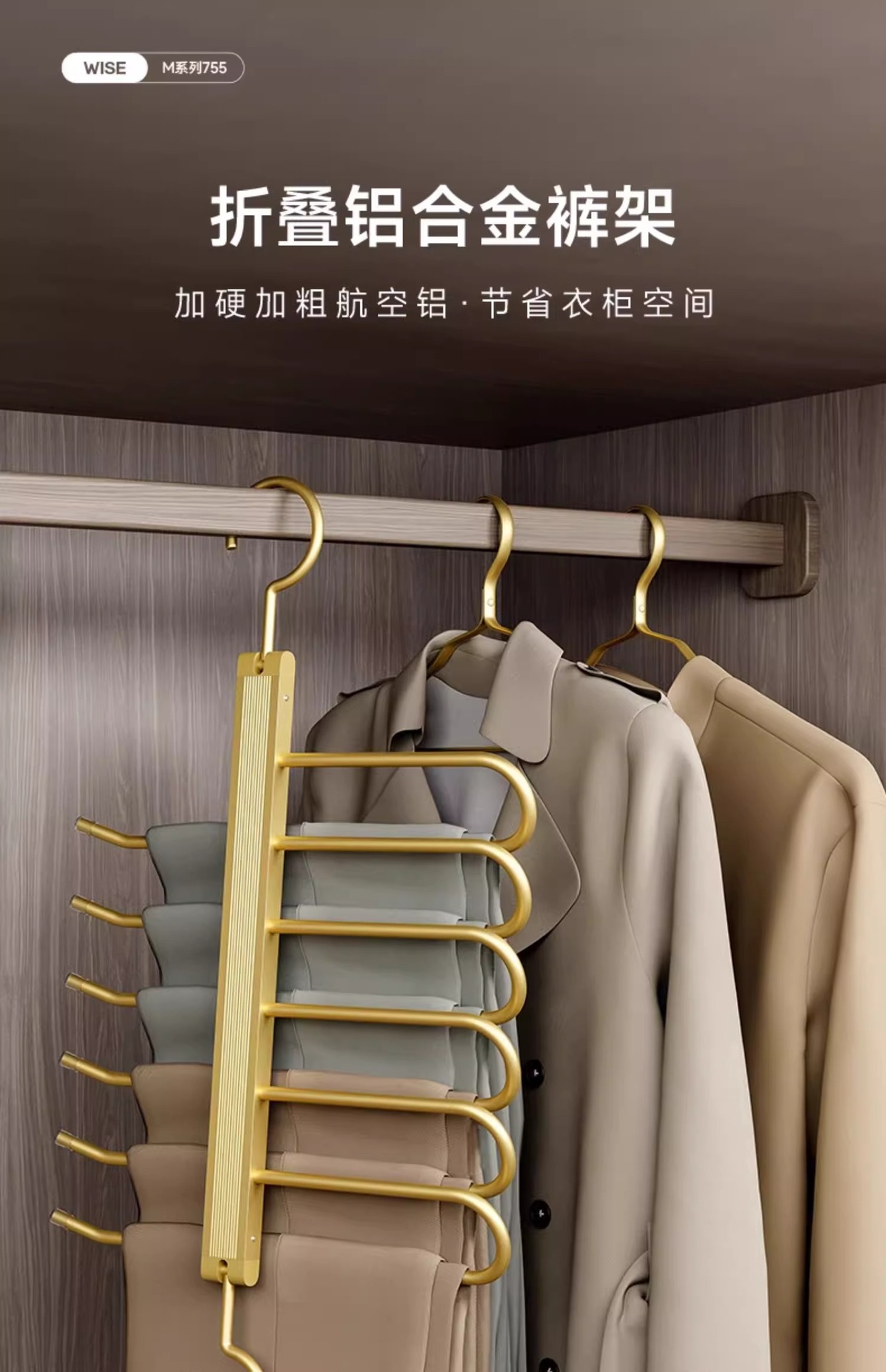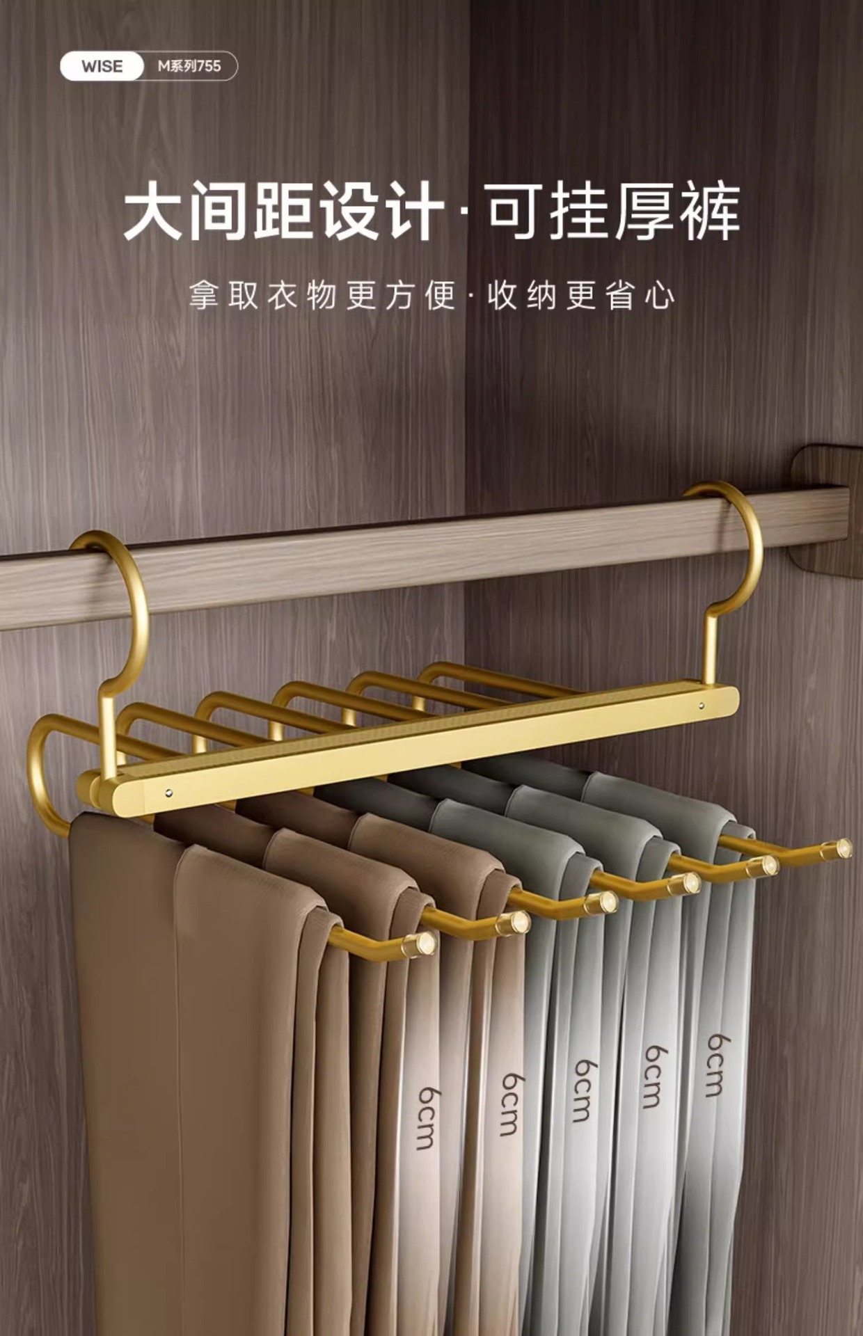 This trouser rack is easy to use with its simple, efficient and beautiful design. the U-shaped rod with slightly curved end and anti-slip cap design can effectively prevent the pants from slipping down.