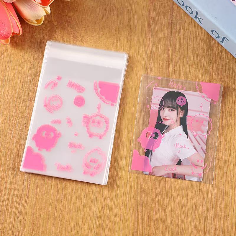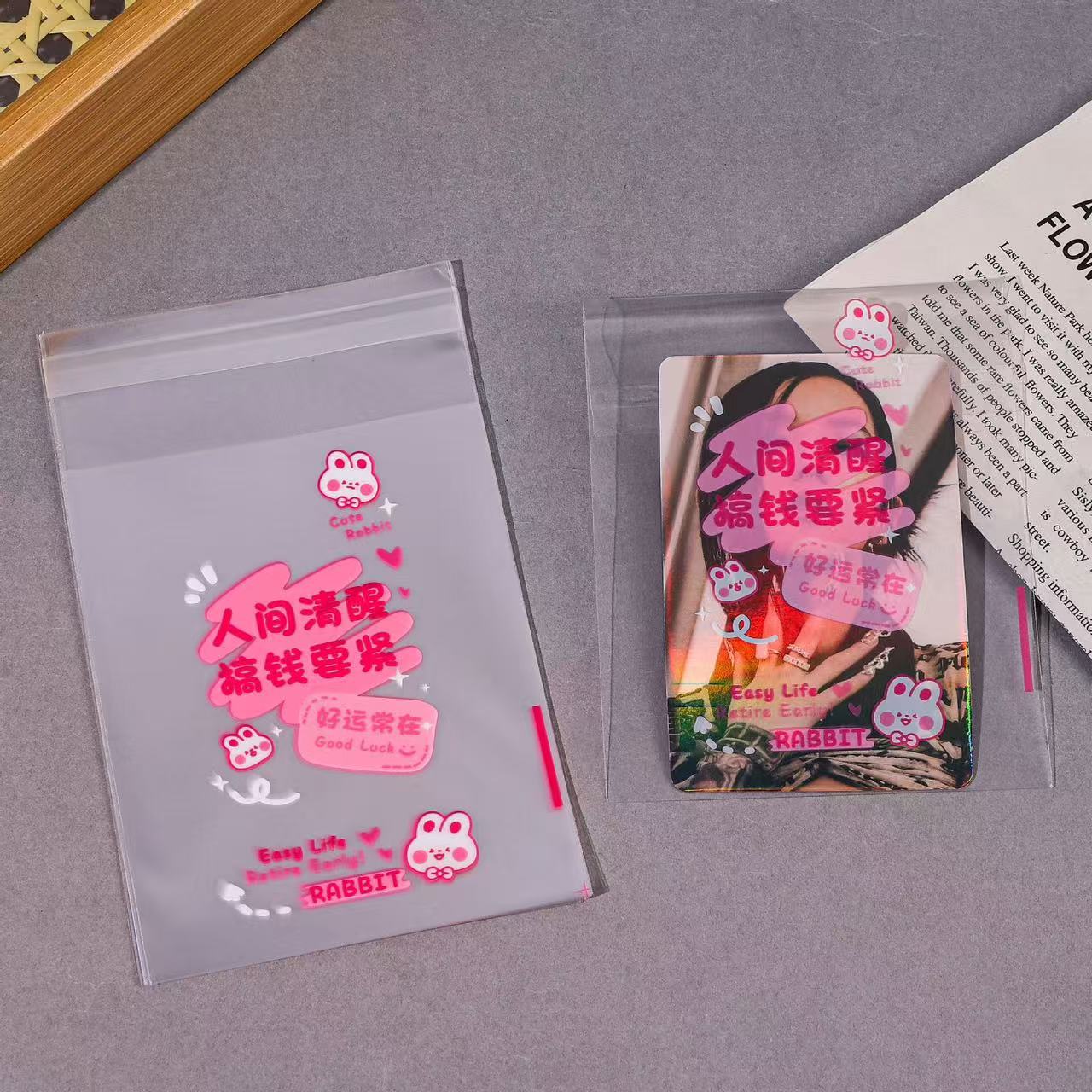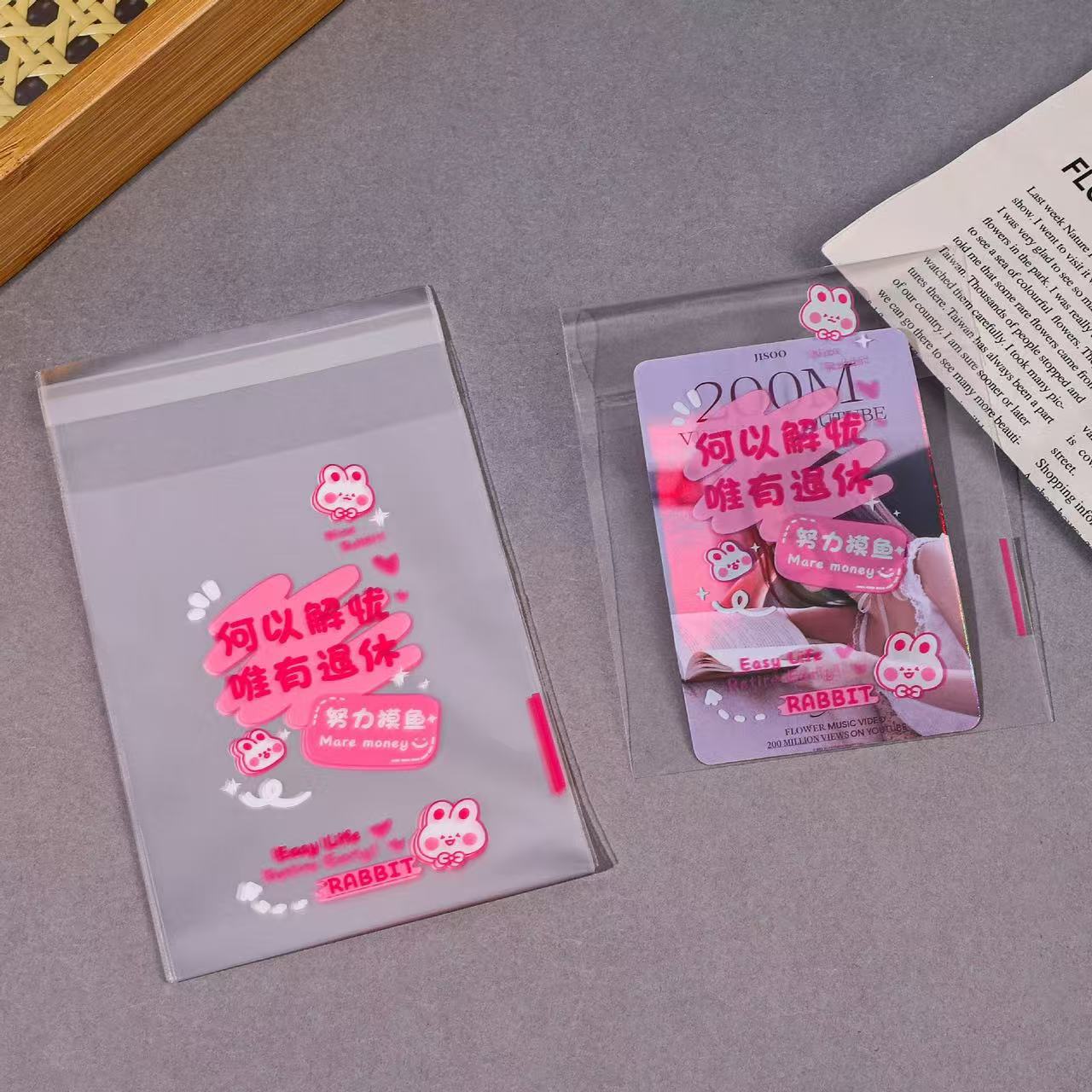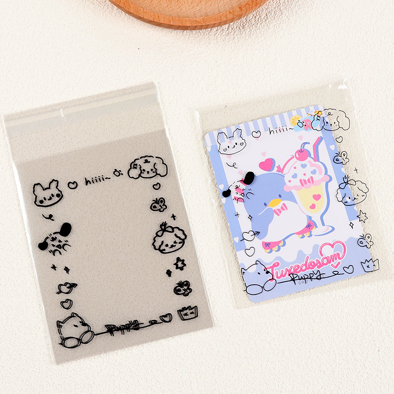 Ins 스타일 새끼 고양이 동그라미 인쇄 자체 접착 가방 작은 카드 opp 포장 가방 간단한 투명 선물 포장 자체 밀봉 가방스토어 가기