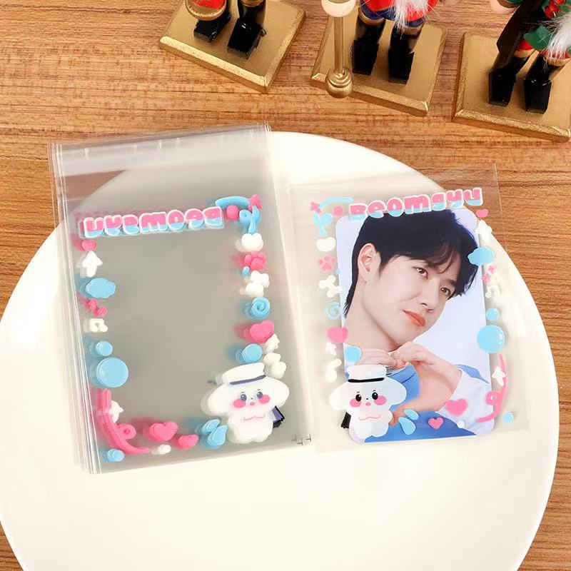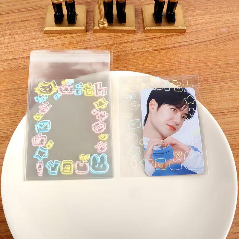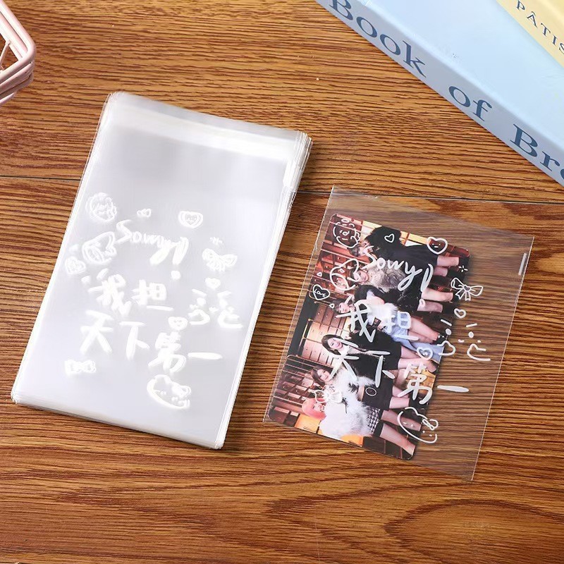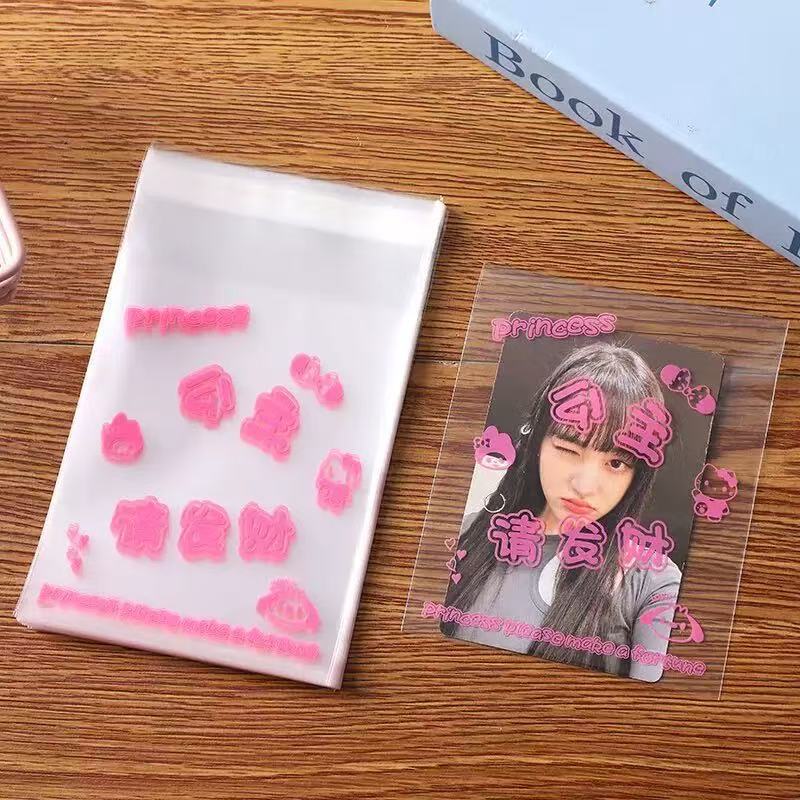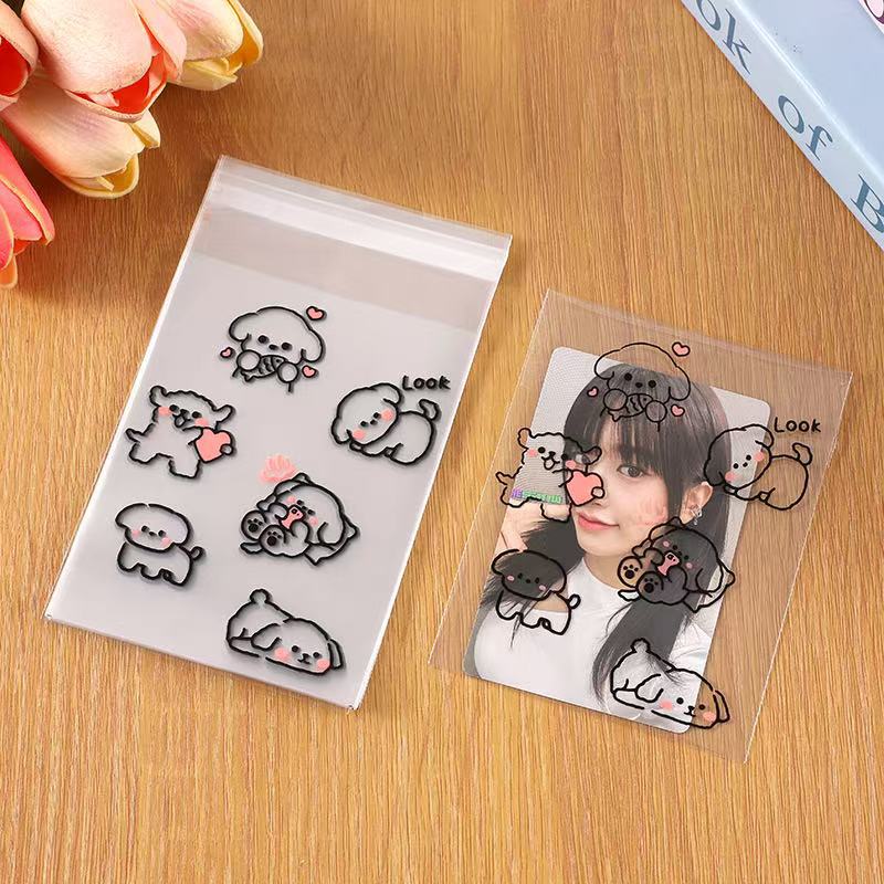 Ins 스타일 새끼 고양이 동그라미 인쇄 자체 접착 가방 작은 카드 opp 포장 가방 간단한 투명 선물 포장 자체 밀봉 가방스토어 가기