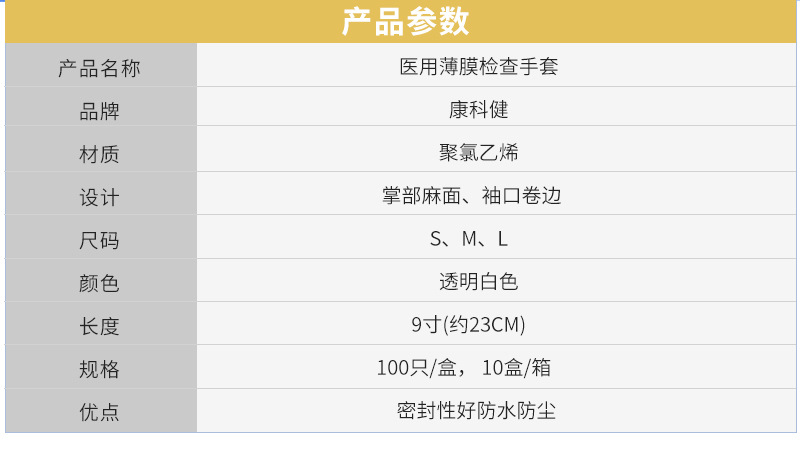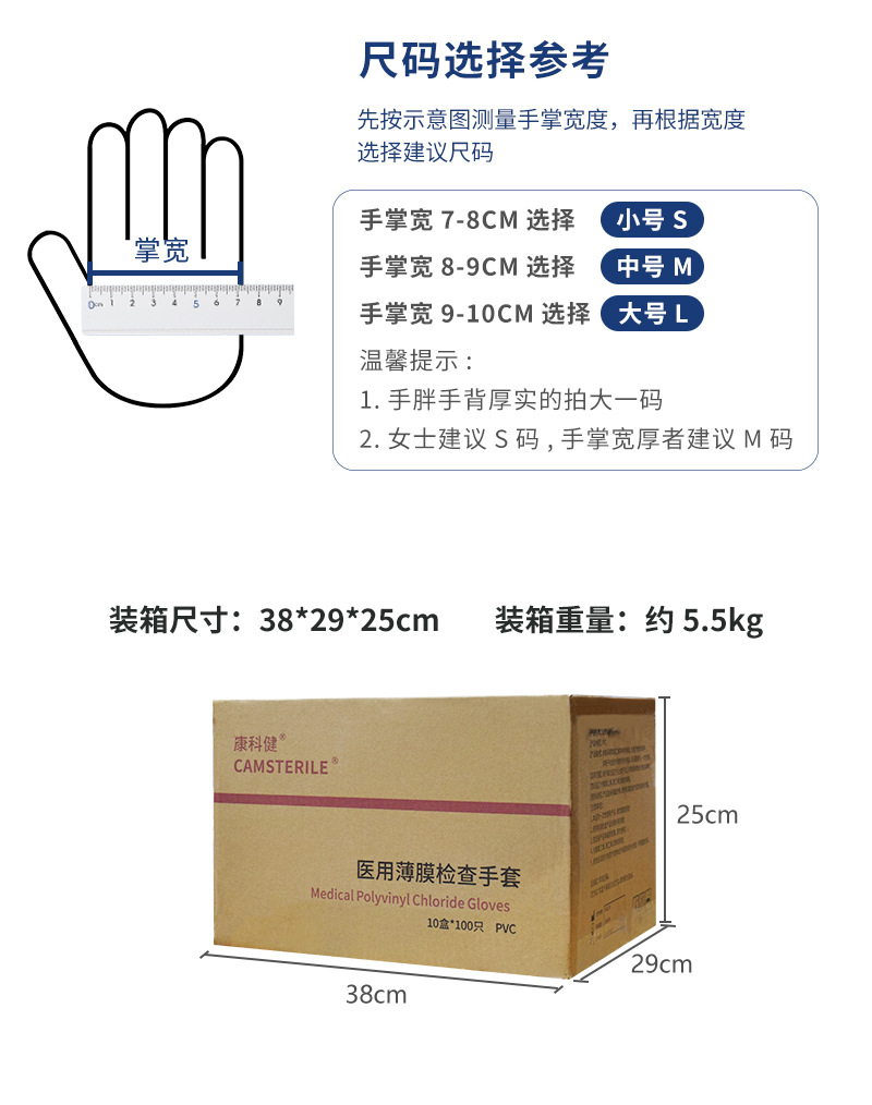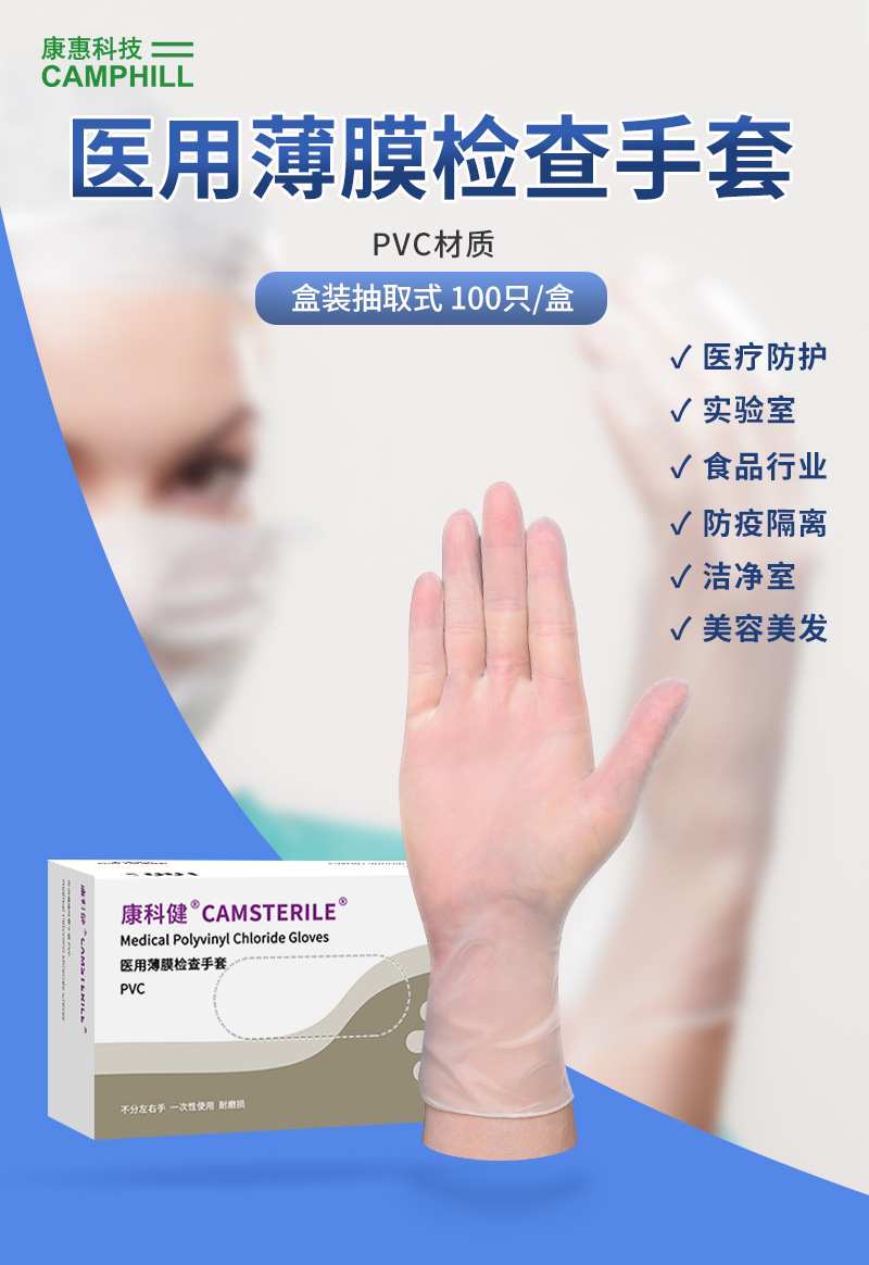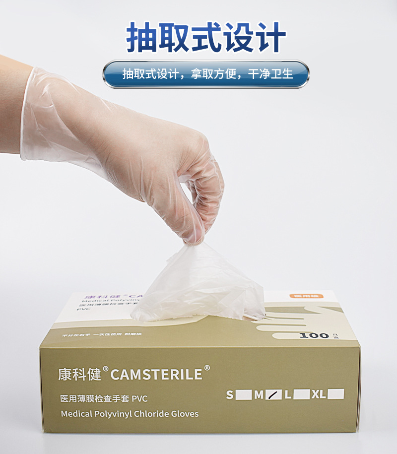 Kangkejian 의료 등급 두꺼운 분말이 없는 PVC 장갑 구강 진료소 실험실 검사 일회용 보호 장갑스토어 가기