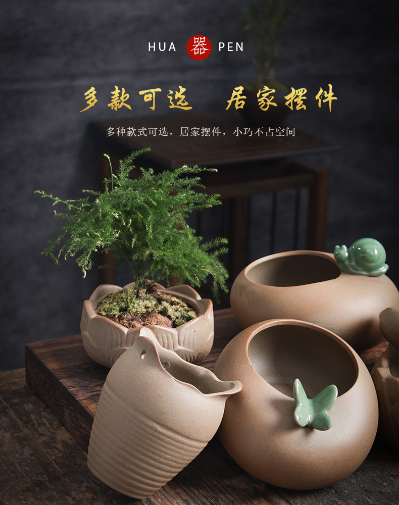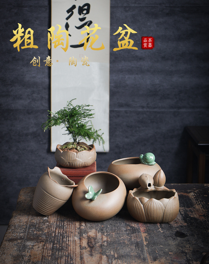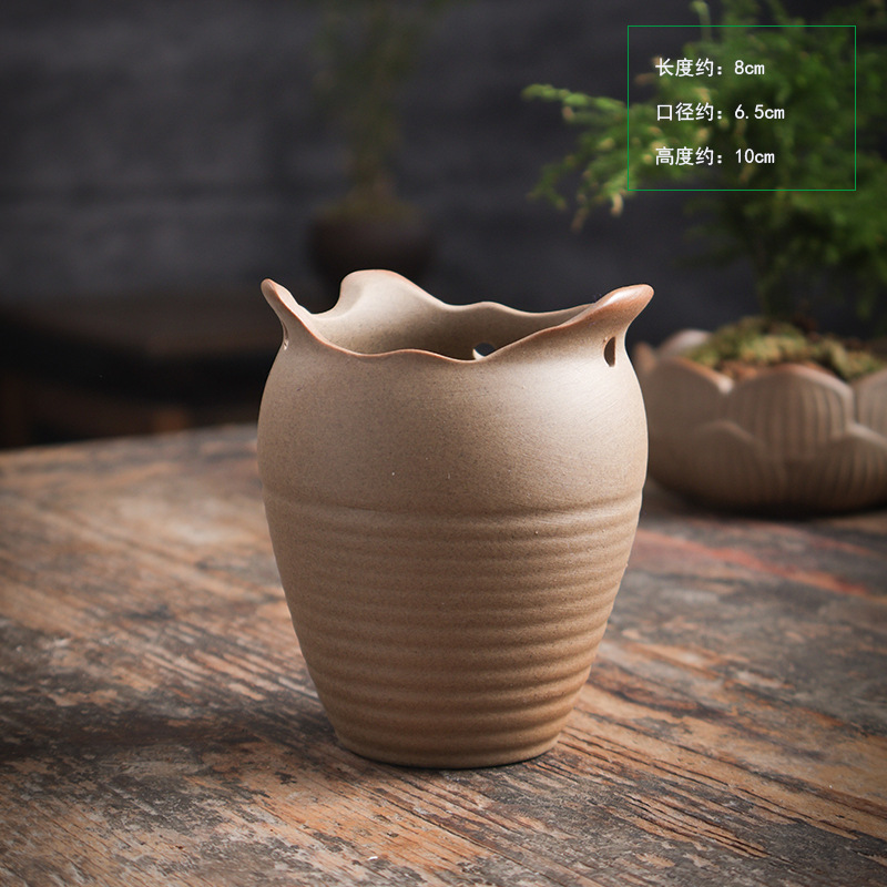석기 유약없는 원시 토양 발사 다육 화분 통기성 일반 연소 고전적인 간단한 화분에 신선한 통기성 다육 식물스토어 가기
