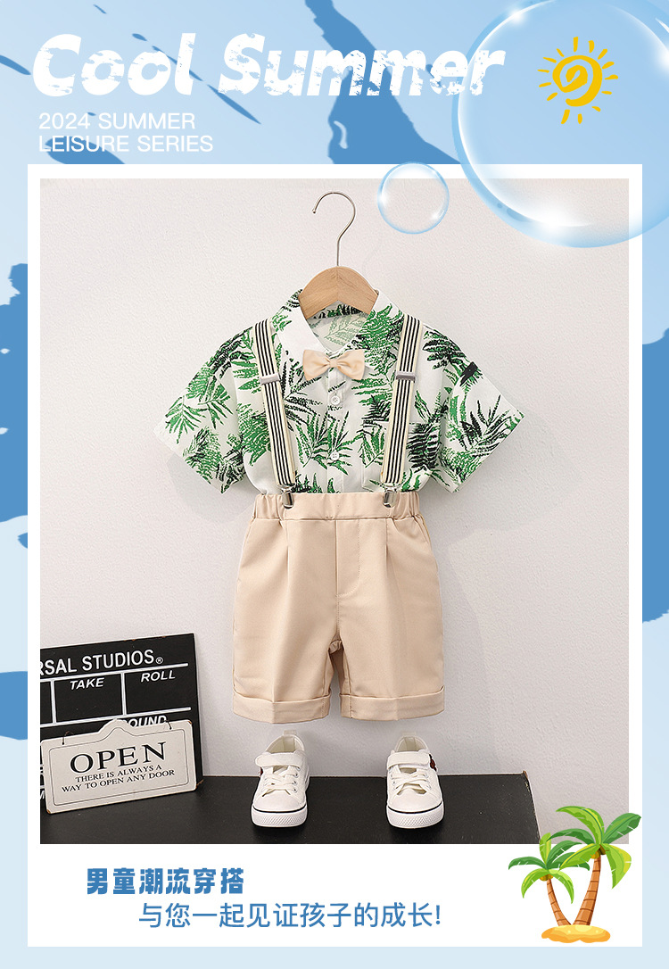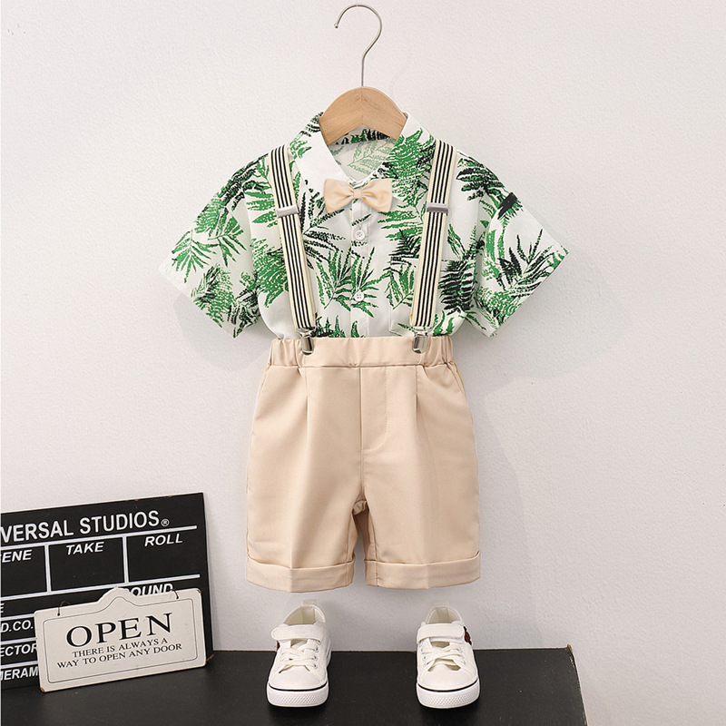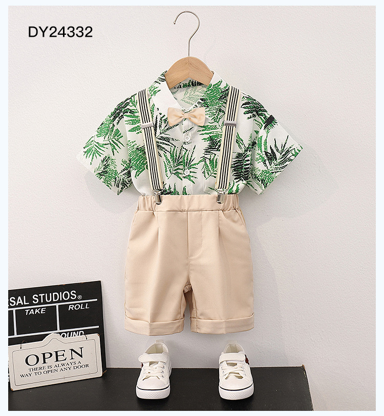 • 녹색 잎 셔츠 카키 반바지 4 피스 세트 [DY24332]