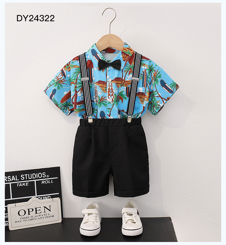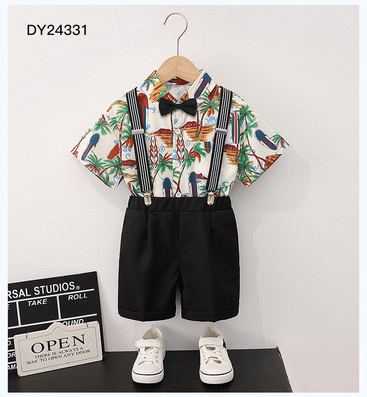 소년 캐주얼 셔츠 여름 새로운 어린이 파이 슈아이 홍콩 스타일 꽃 셔츠 하와이 휴가 스타일 세트 벨트 바지스토어 가기