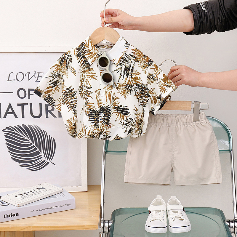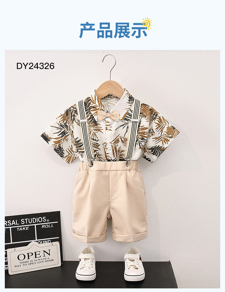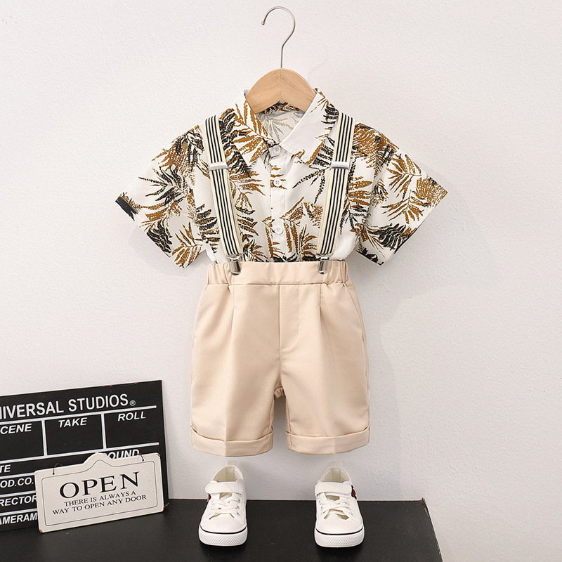 • 노란 잎 셔츠 카키 반바지 3 피스 세트 [DY24326]