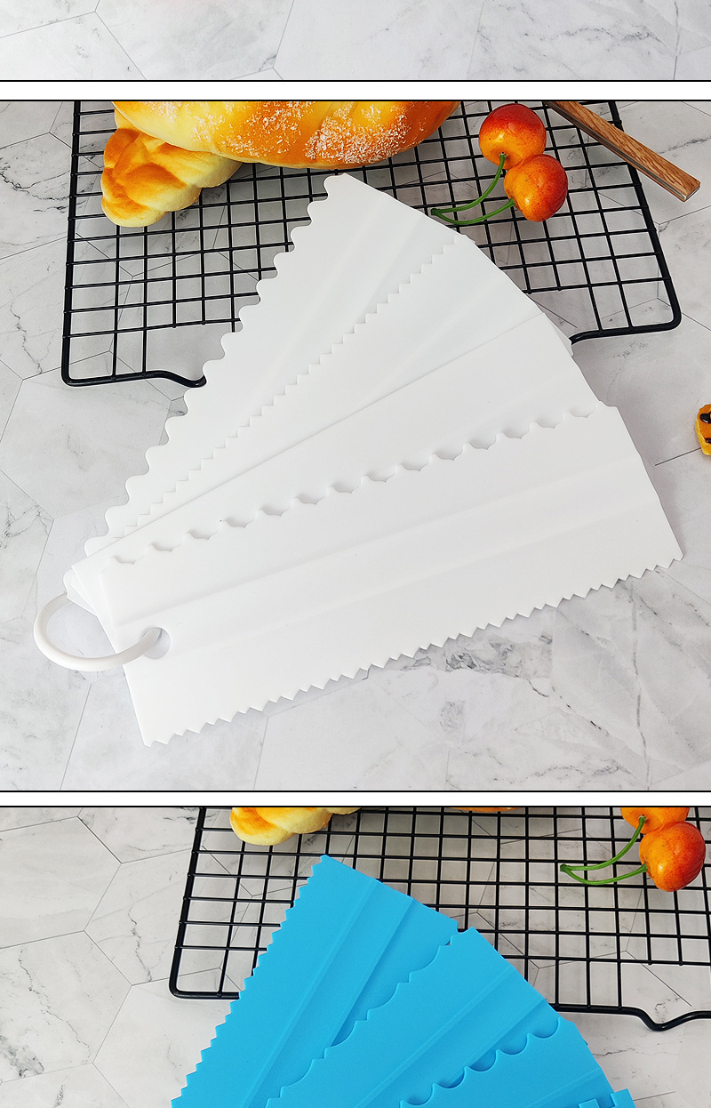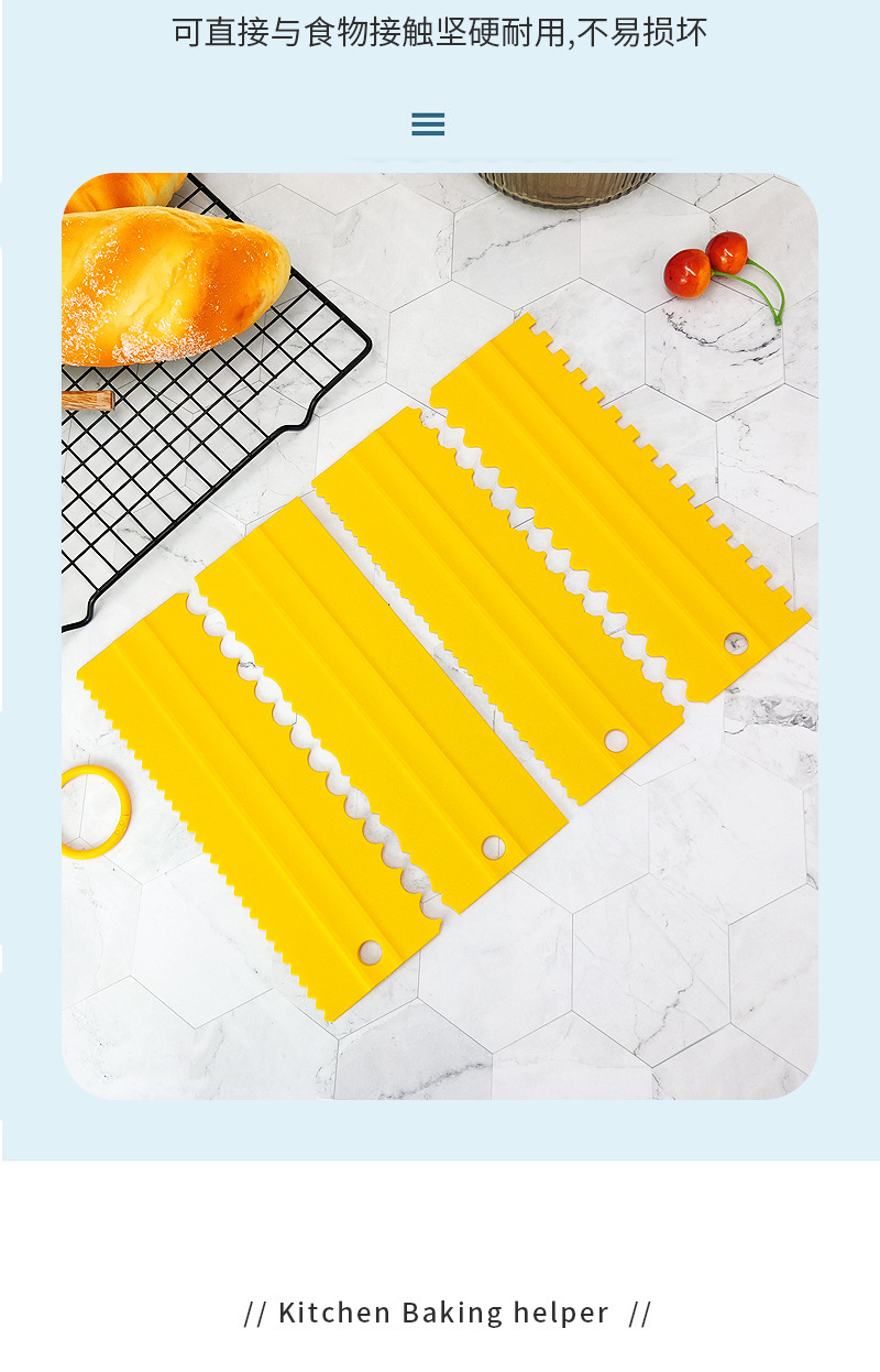플라스틱 스크레이퍼 4 조각 세트 케이크 윤곽 빗 스크래핑 설탕 케이크 장식 광장 레벨 컨투어 스크레이퍼
