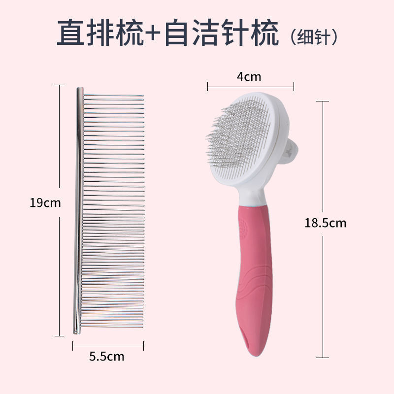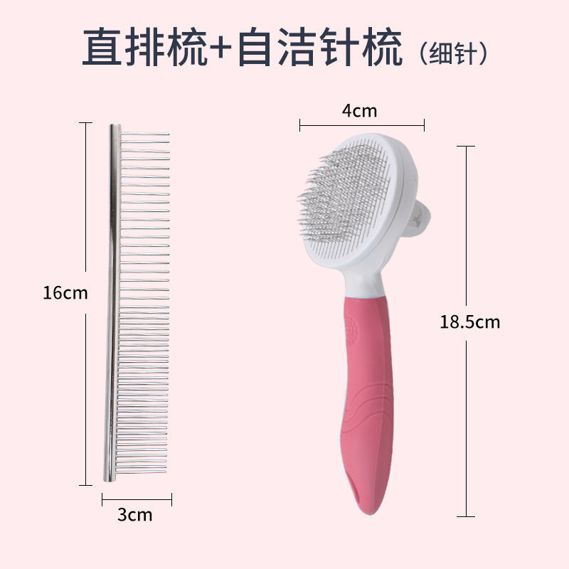 • 대형 빗 + 핑크색 셀프클리닝 바늘 빗 [가는 바늘]