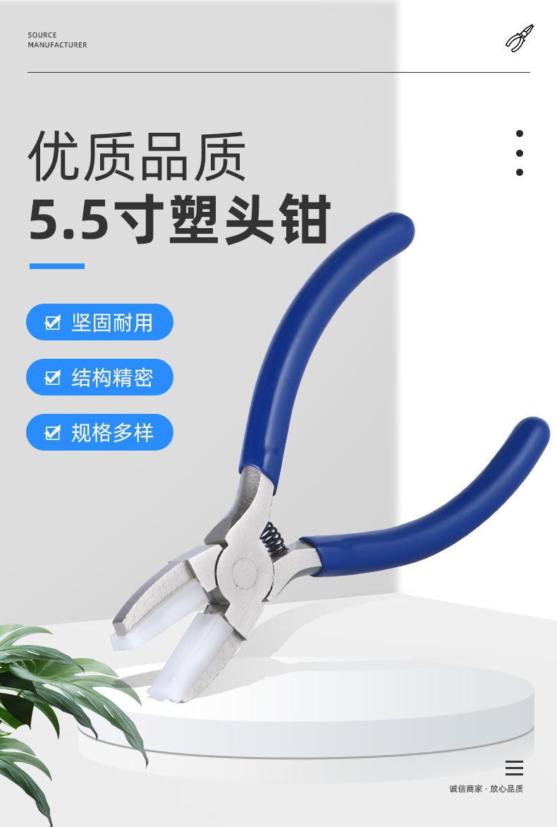 도매 플라스틱 헤드 플라이어 DIY 수동 케이블 펜치 컴팩트하고 가벼운 플라스틱 헤드 펜치 카본 스틸 나일론 입 플랫 코 펜치