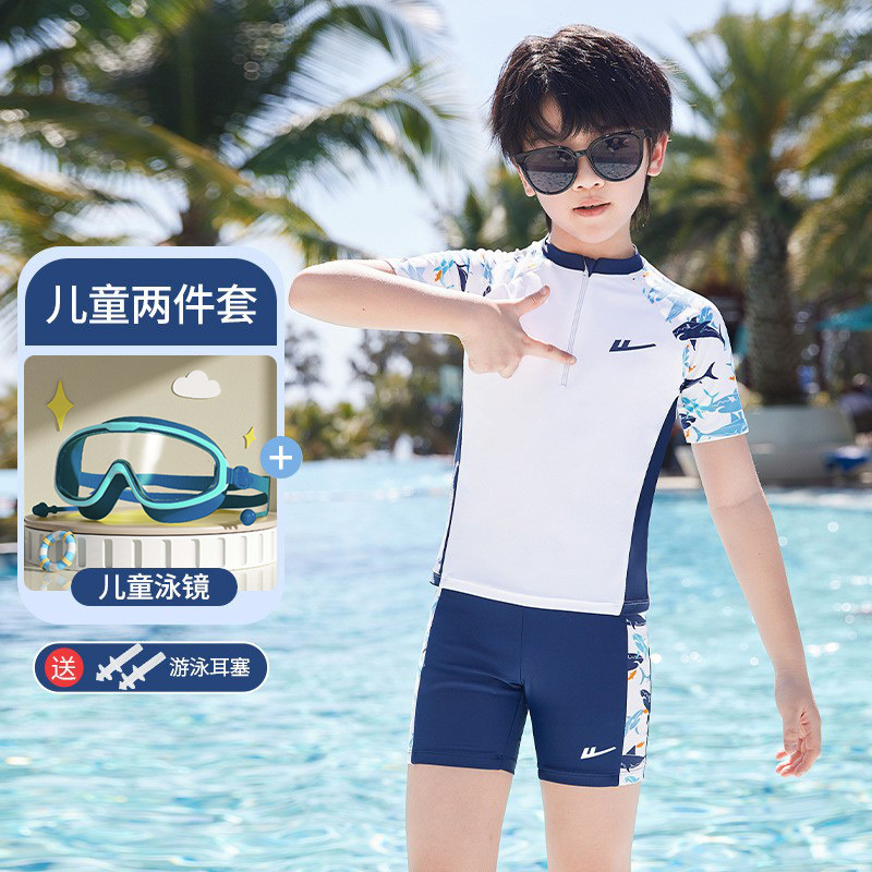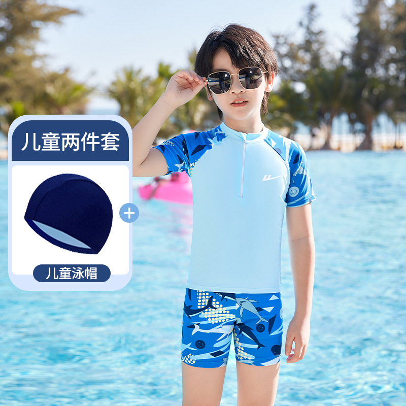 Huili 어린이 수영복 소년 2025 여름 새 소년 분할 수영복 십대 훈련 수영 트렁크 세트