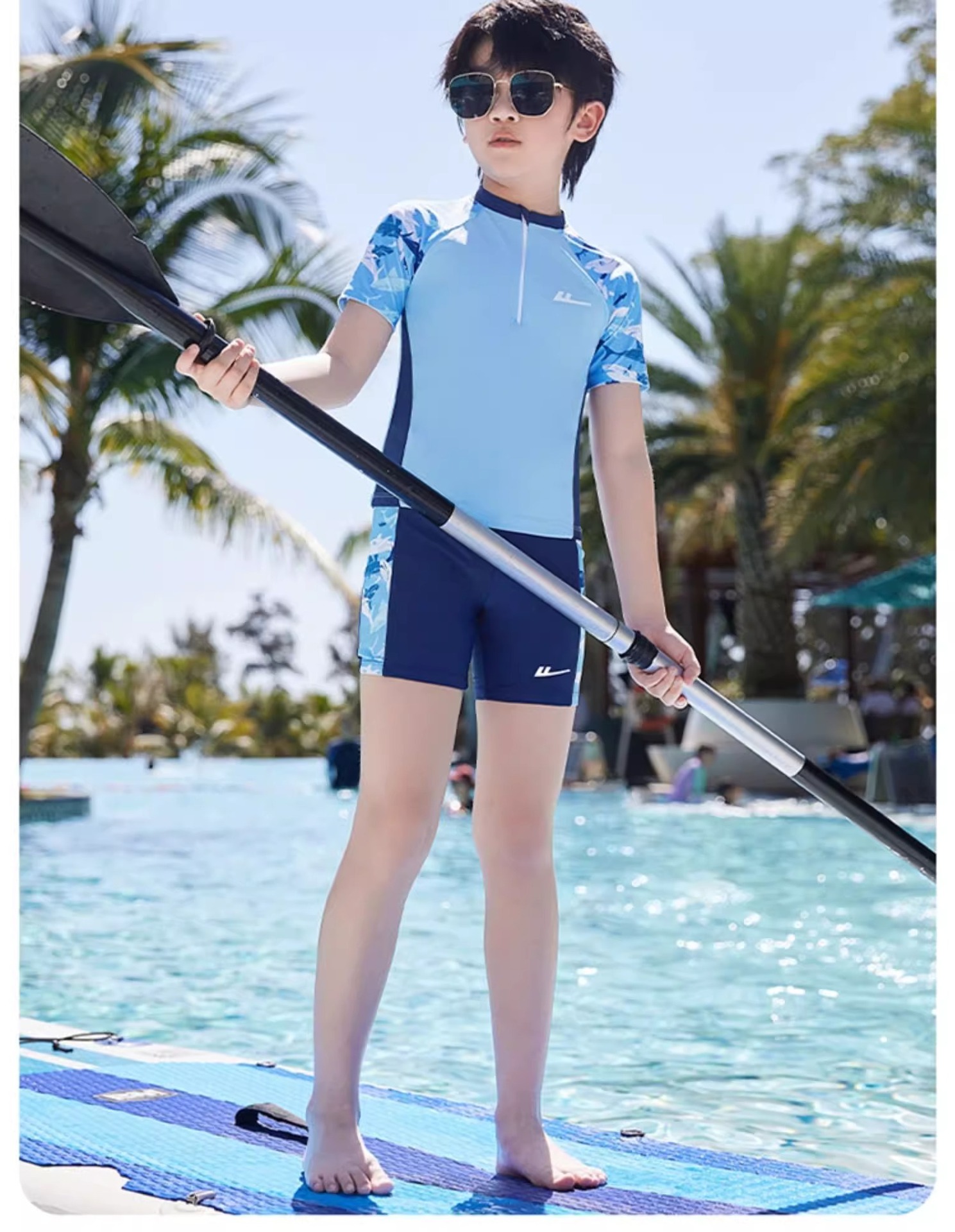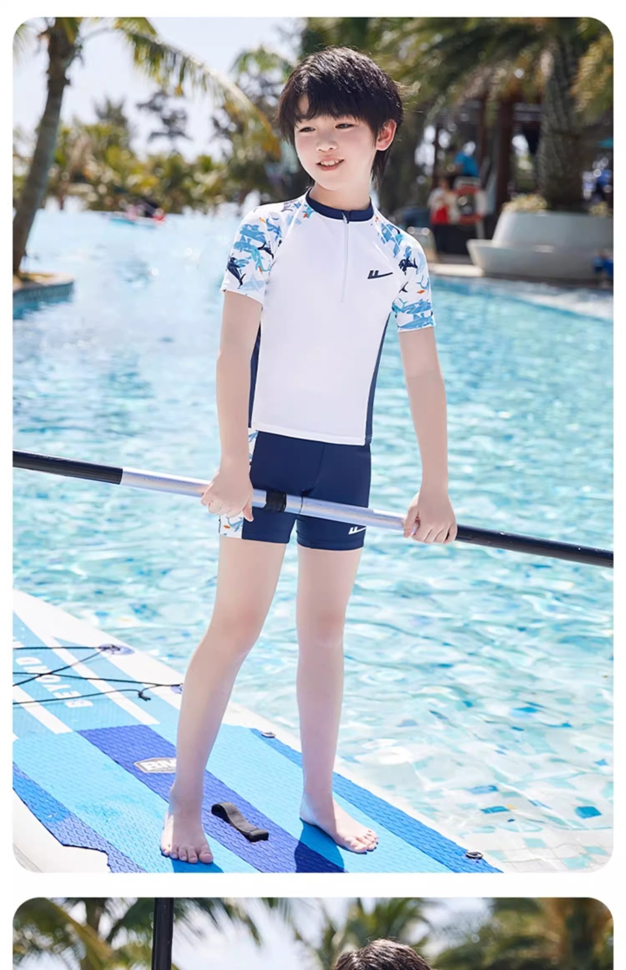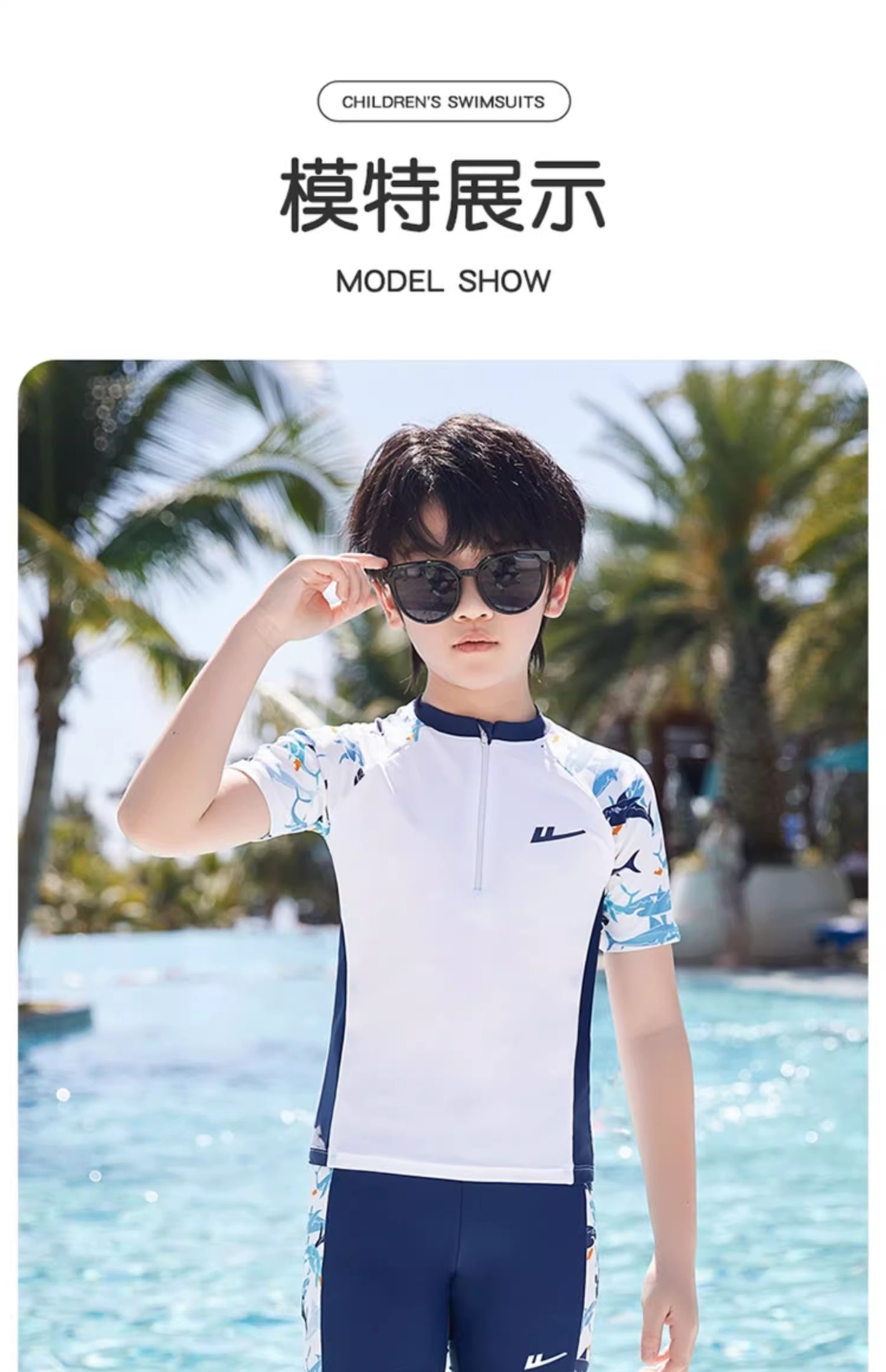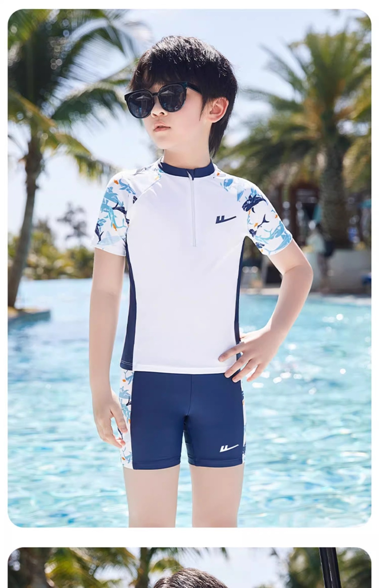Huili 어린이 수영복 소년 2025 여름 새 소년 분할 수영복 십대 훈련 수영 트렁크 세트스토어 가기